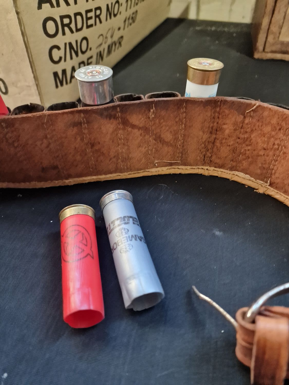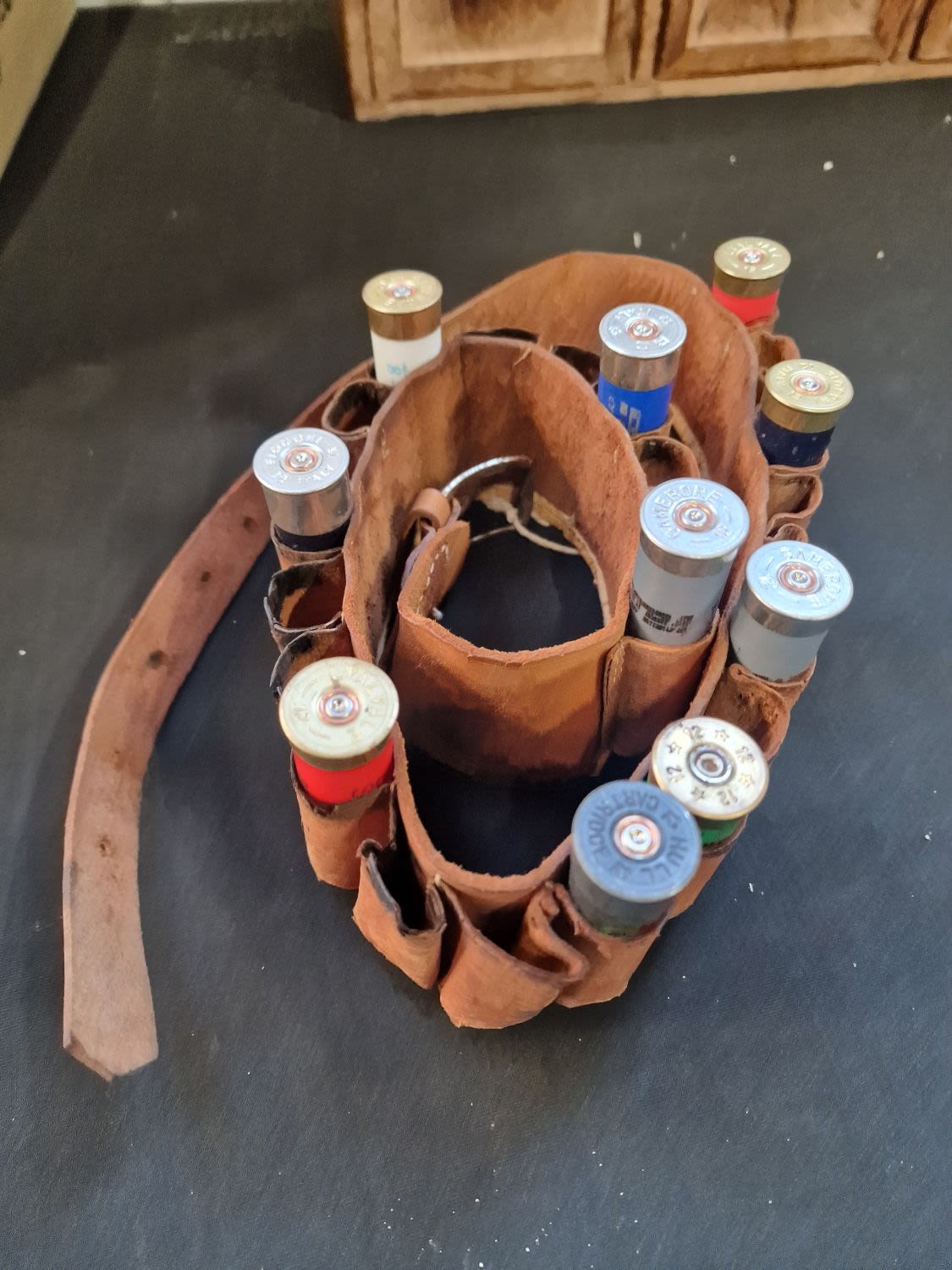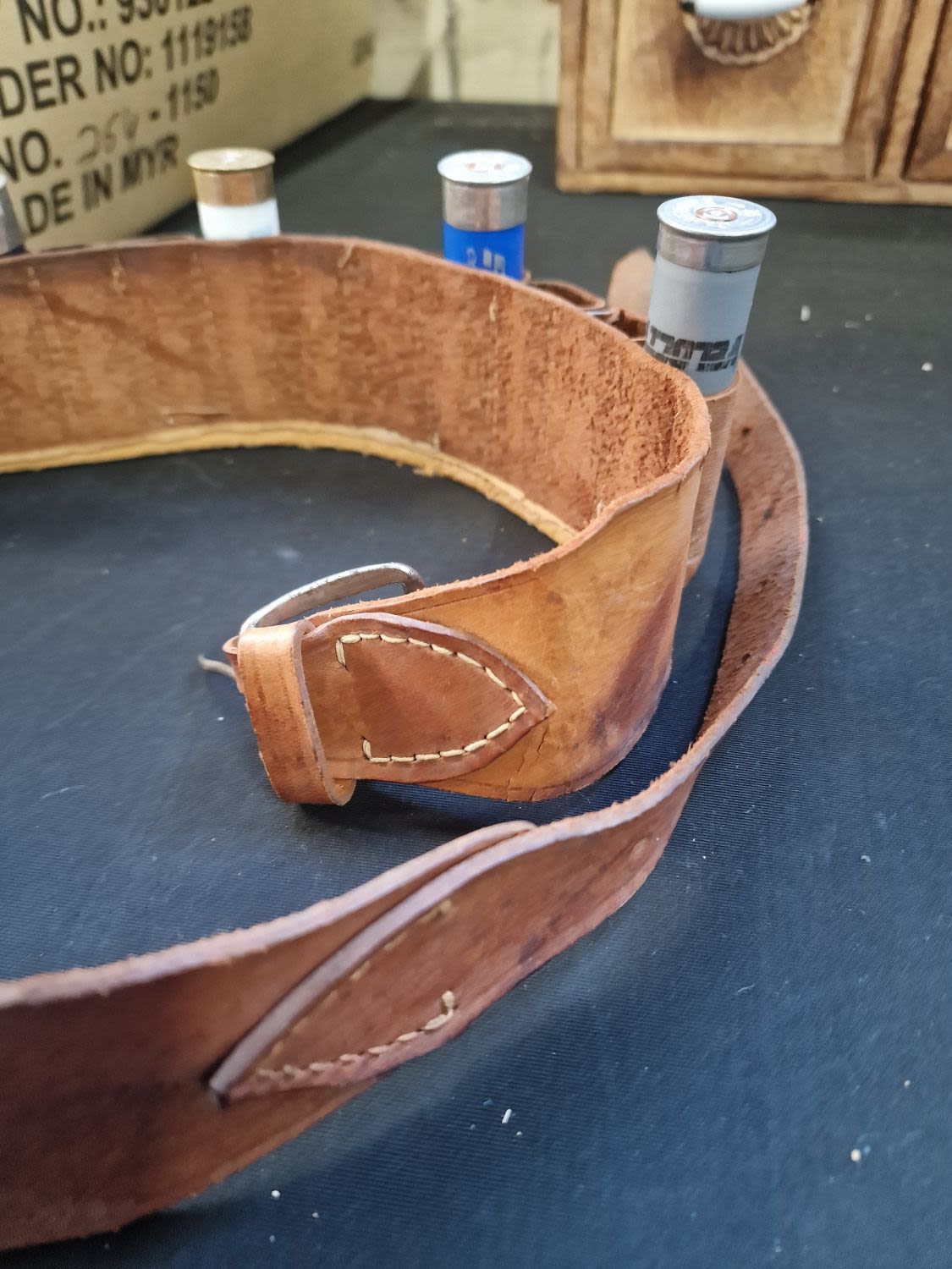 Vintage Shot gun leather belt with empty cartridges