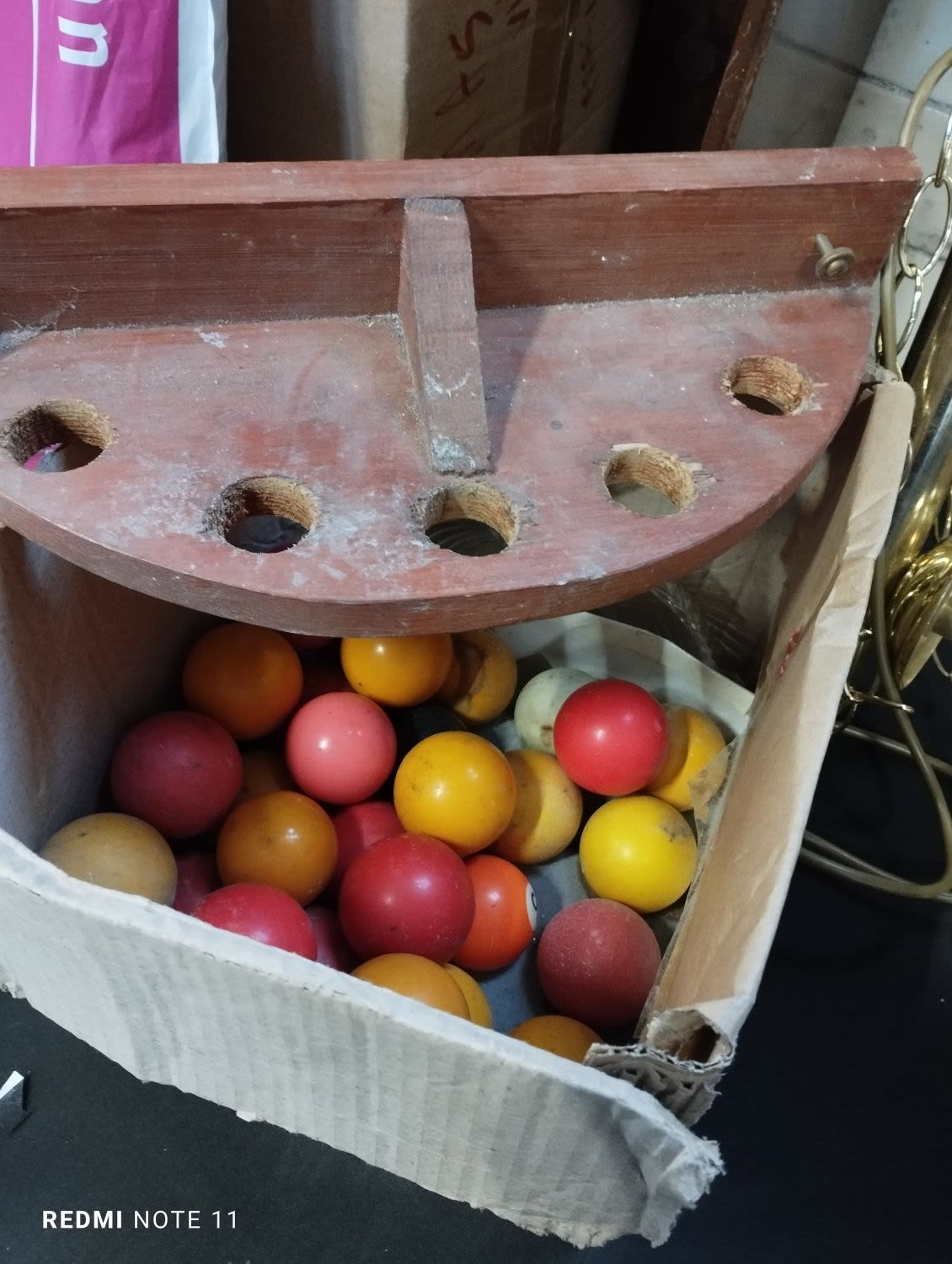 Snooker Related Items inc Table Light Fitting, Balls and Cue Rack