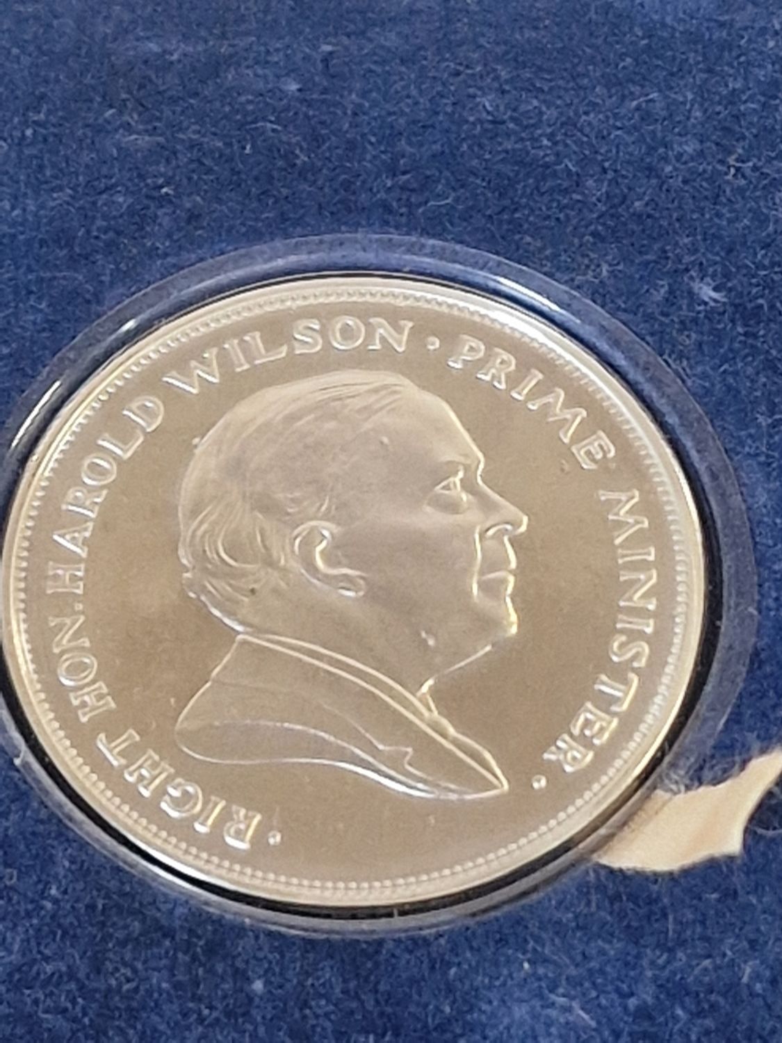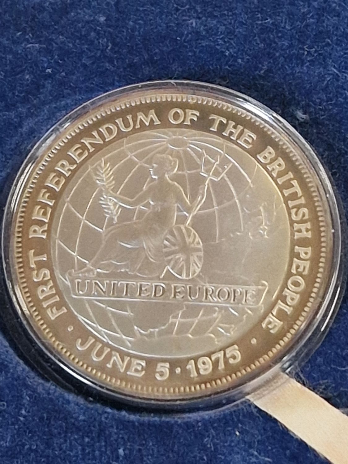 A solid silver Pobjoy Mint Limited Right Hon. Harold Wilson Prime Minister Firts Referendum of the British People June 5th 1975 coin. Weight approximately 30g