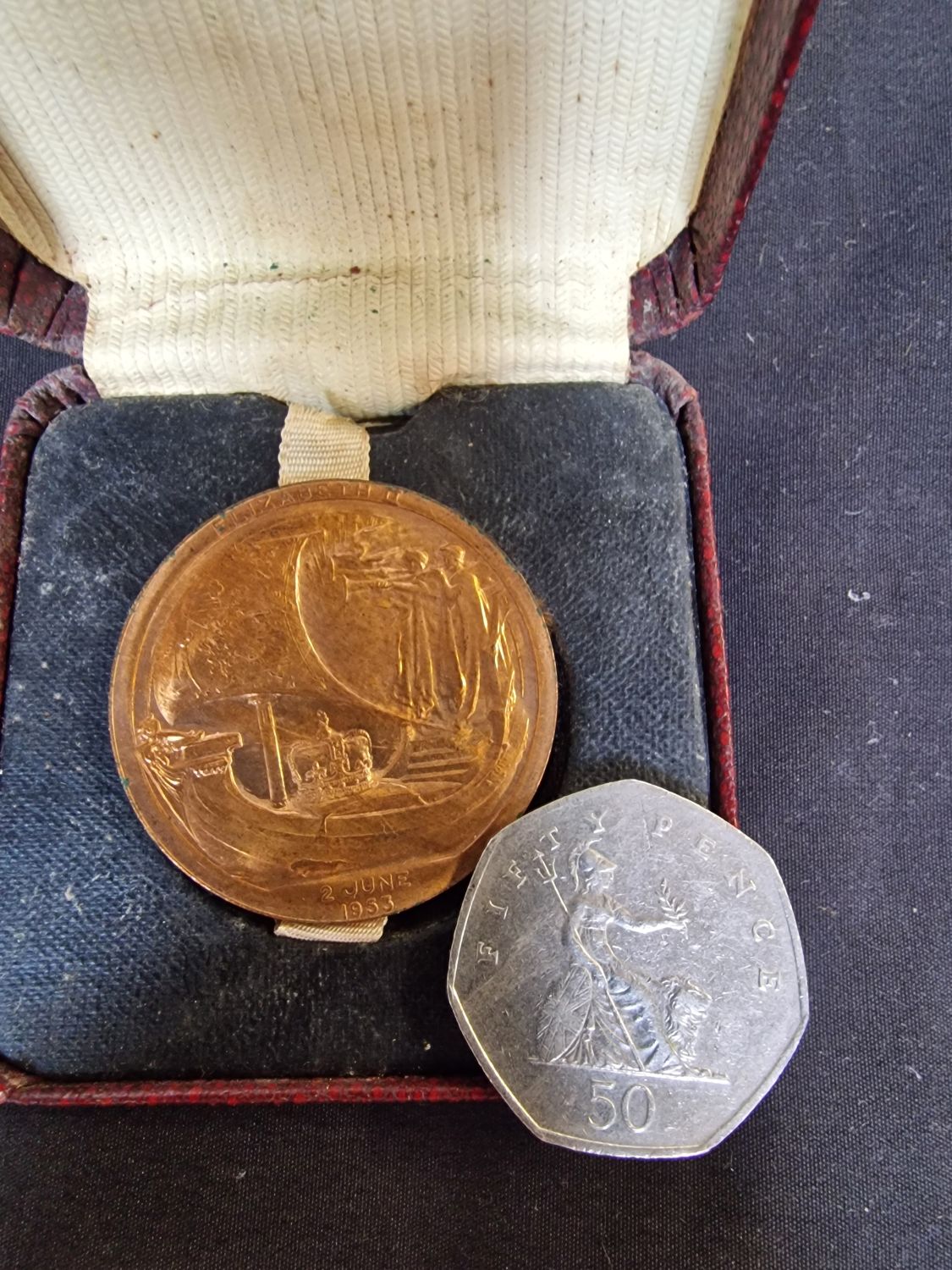 An Elizabeth II copper commerative coin dated 2nd June 1953