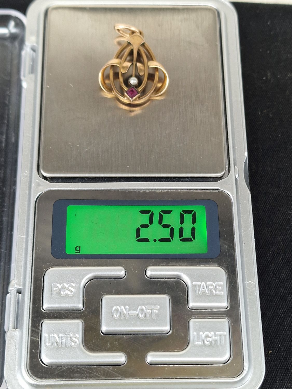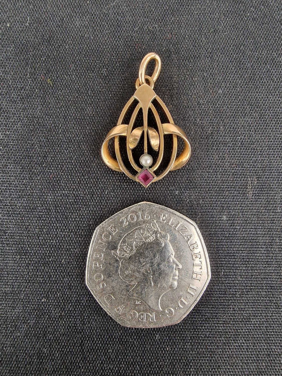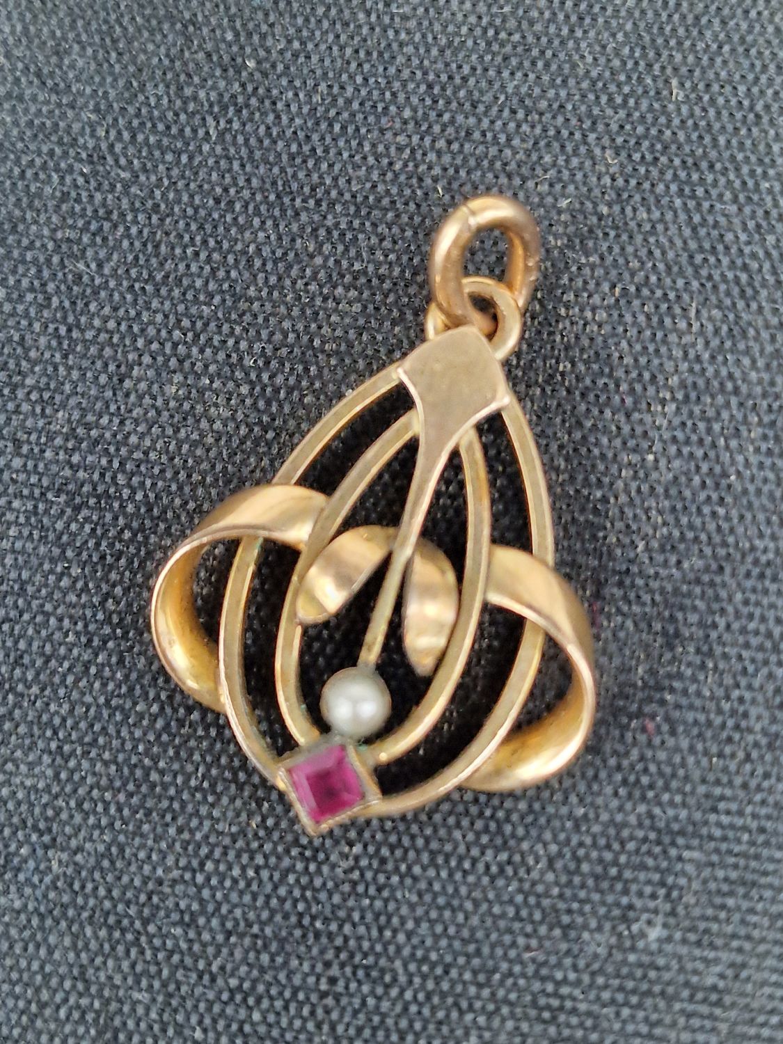 A stunning art deco pedant with red garnet and pearl. Weight approximately 2.50g