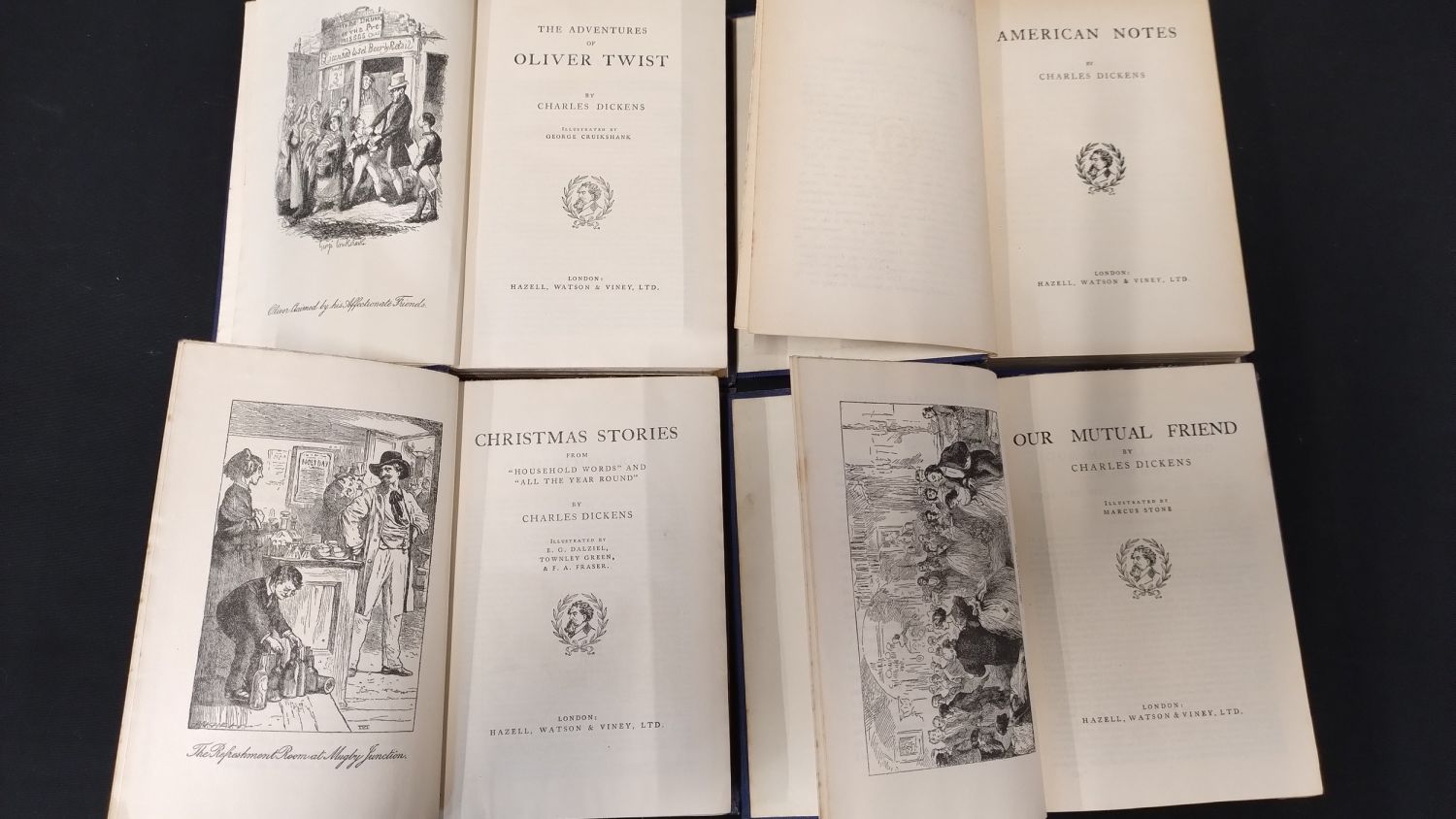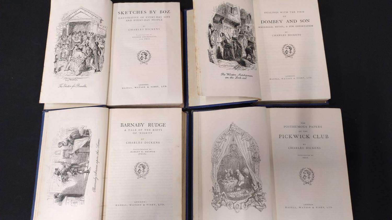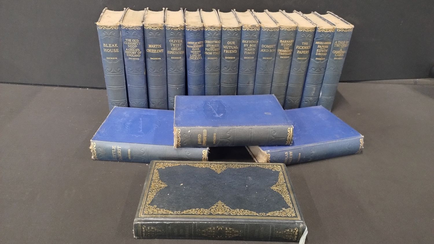 Collection of 16 Dickens books, and one Jane Austen pride and prejudice. In dusty condition