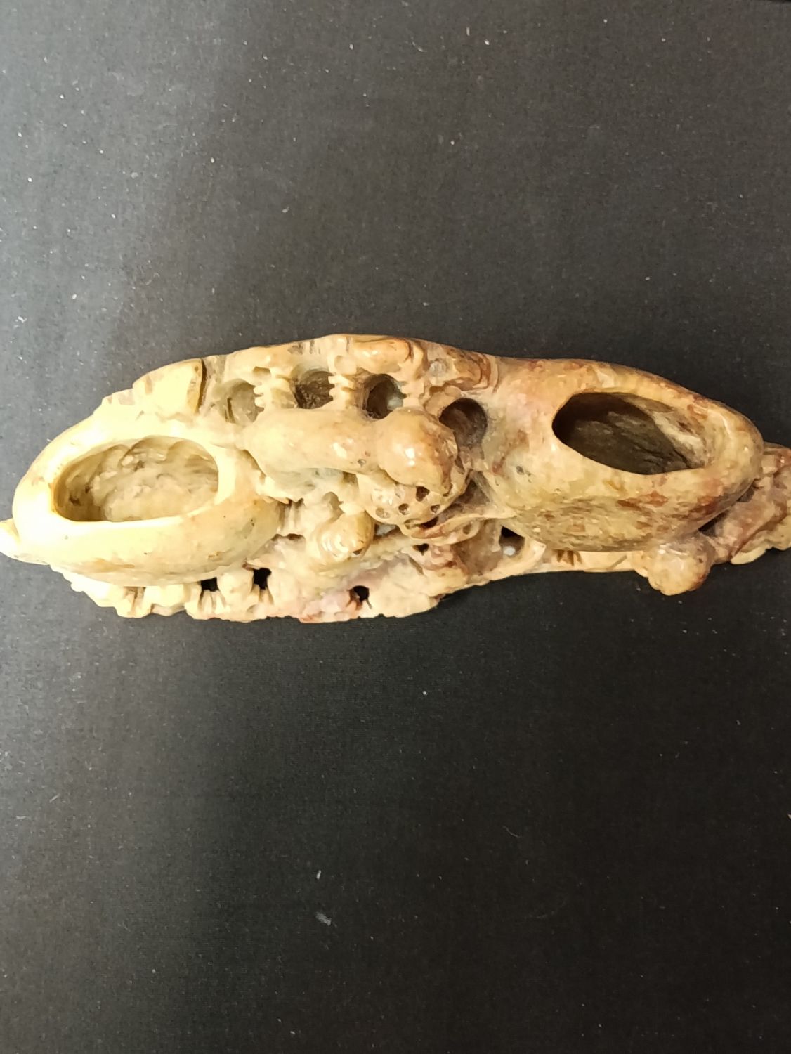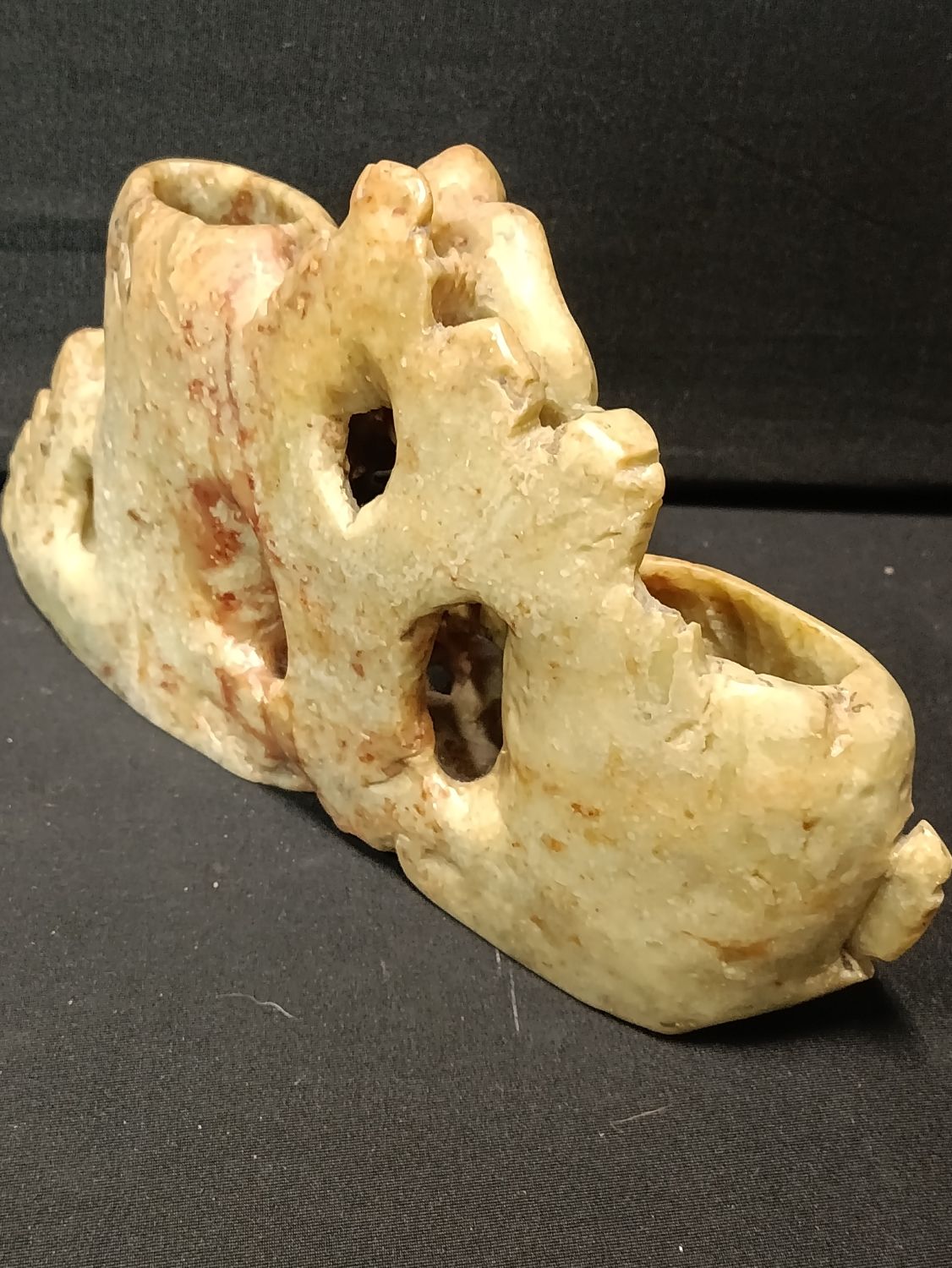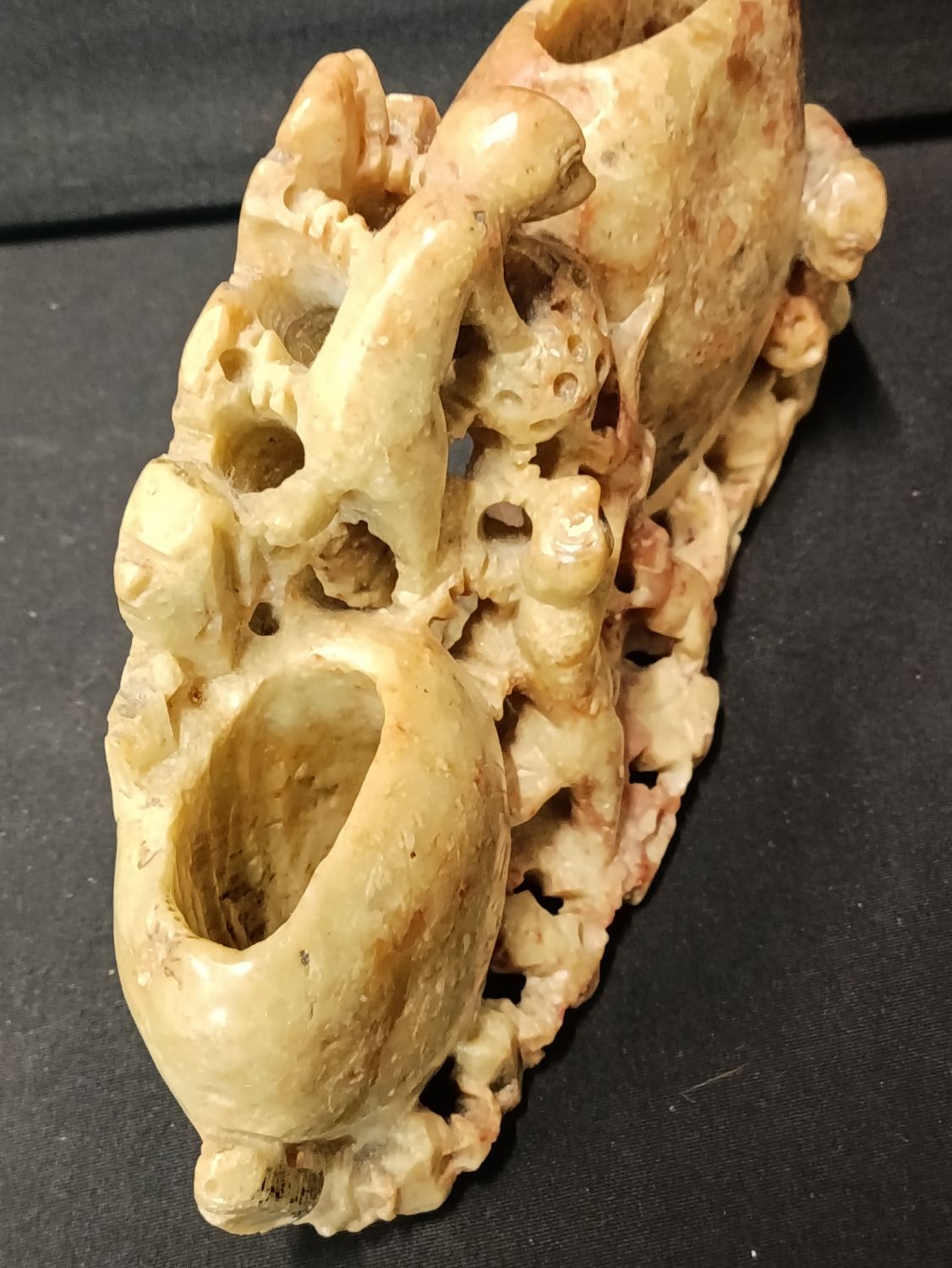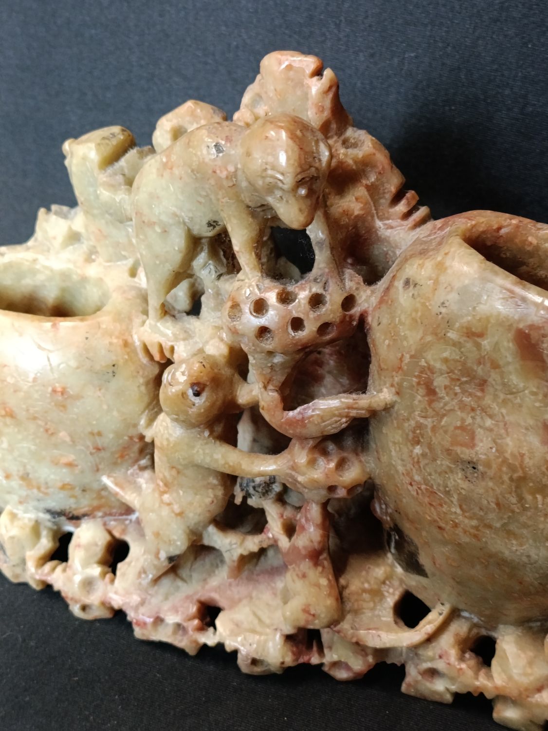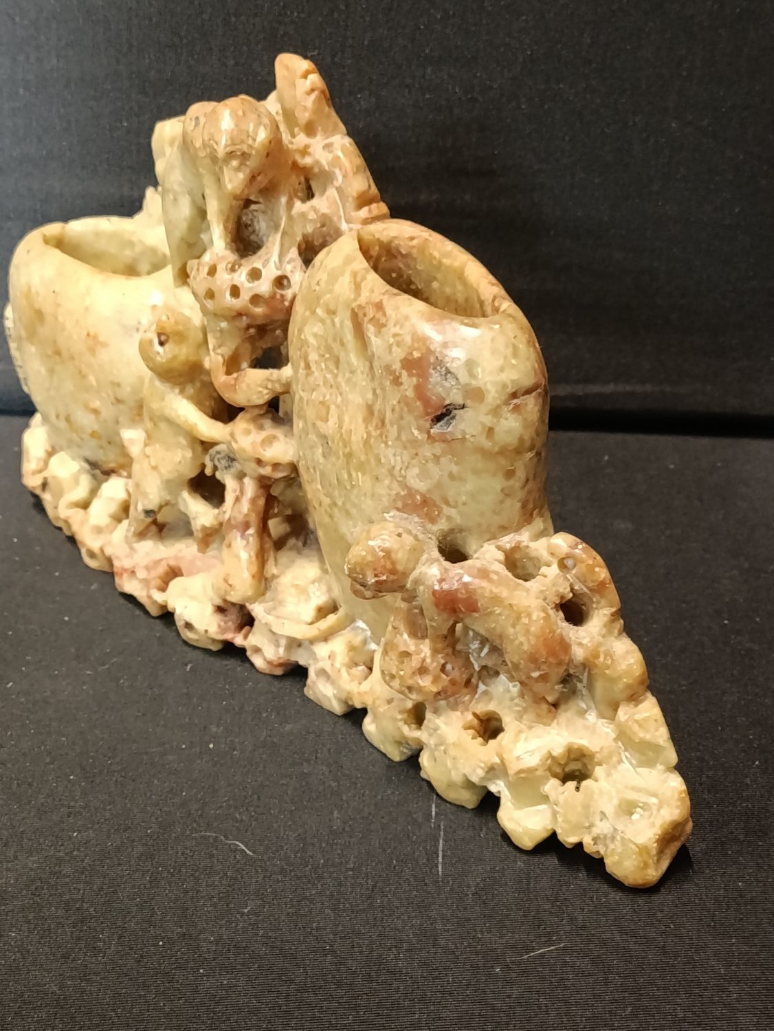 Vintage chinese Soapstone carving of monkeys around 2 bowls