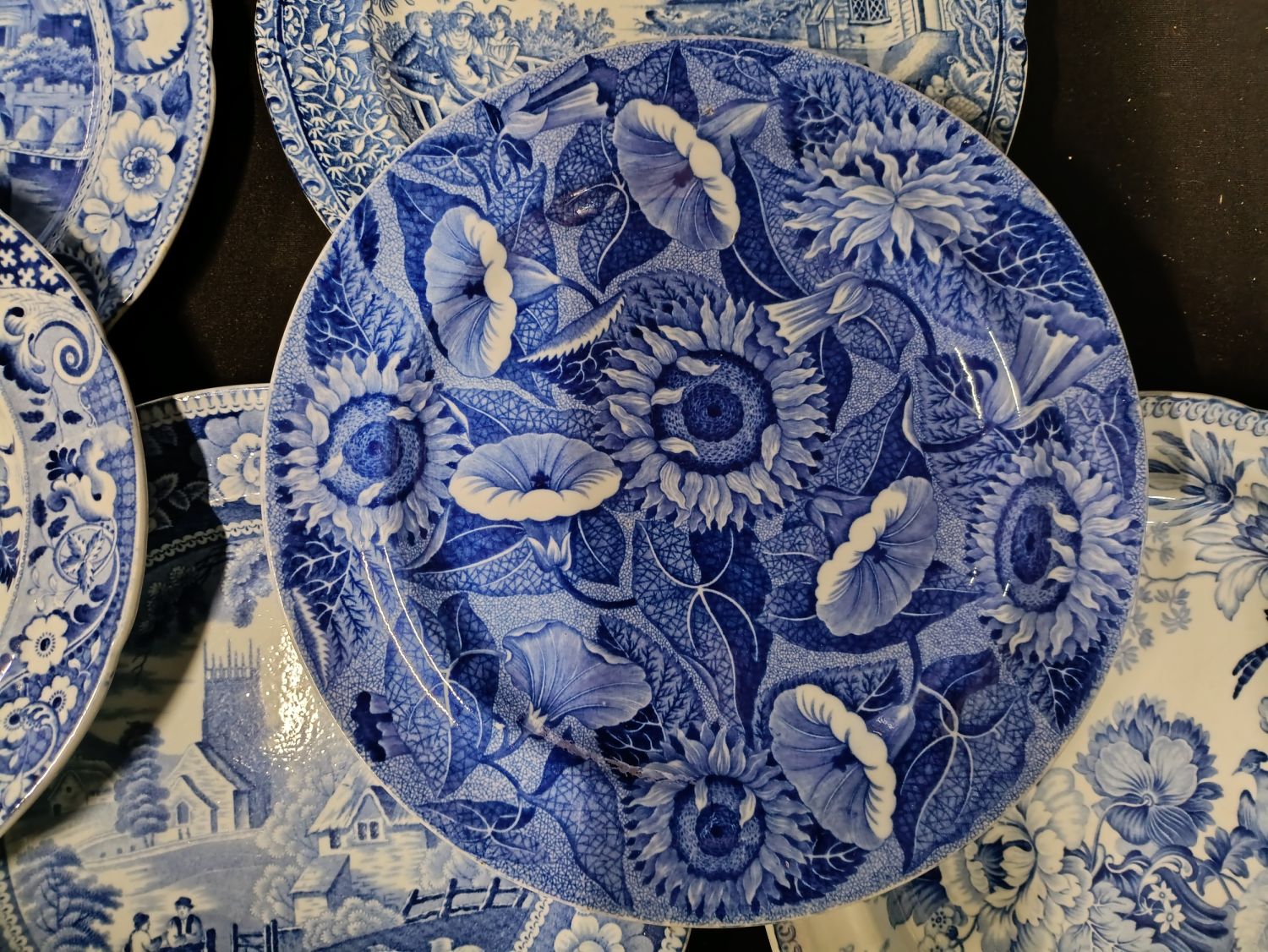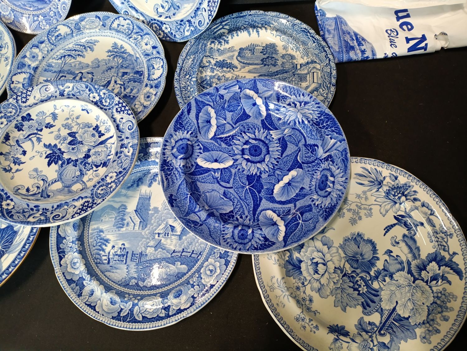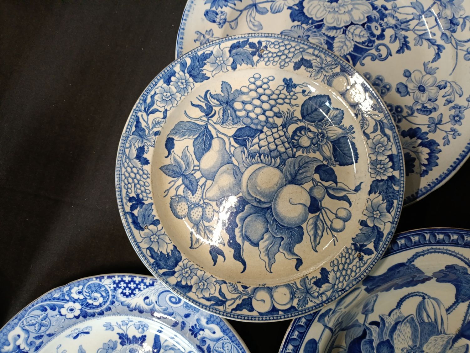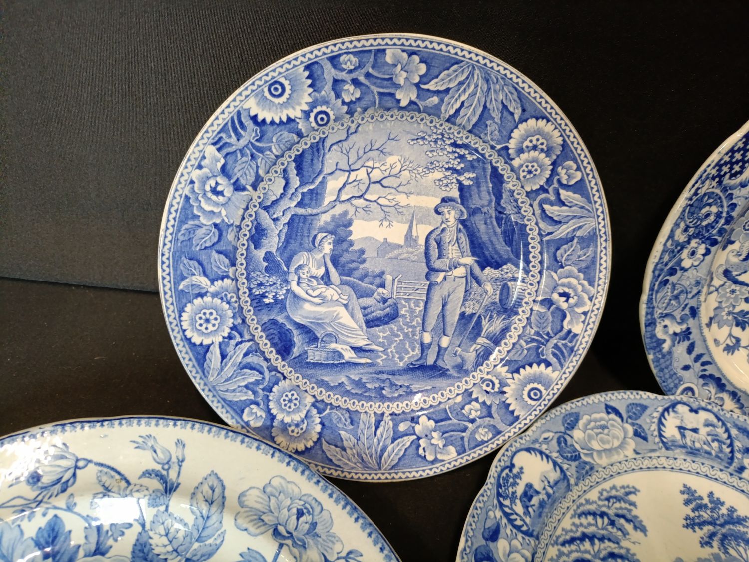 Collection of antique blue and white plates including Spode and Wedgwood. Some dated from the early 1800s