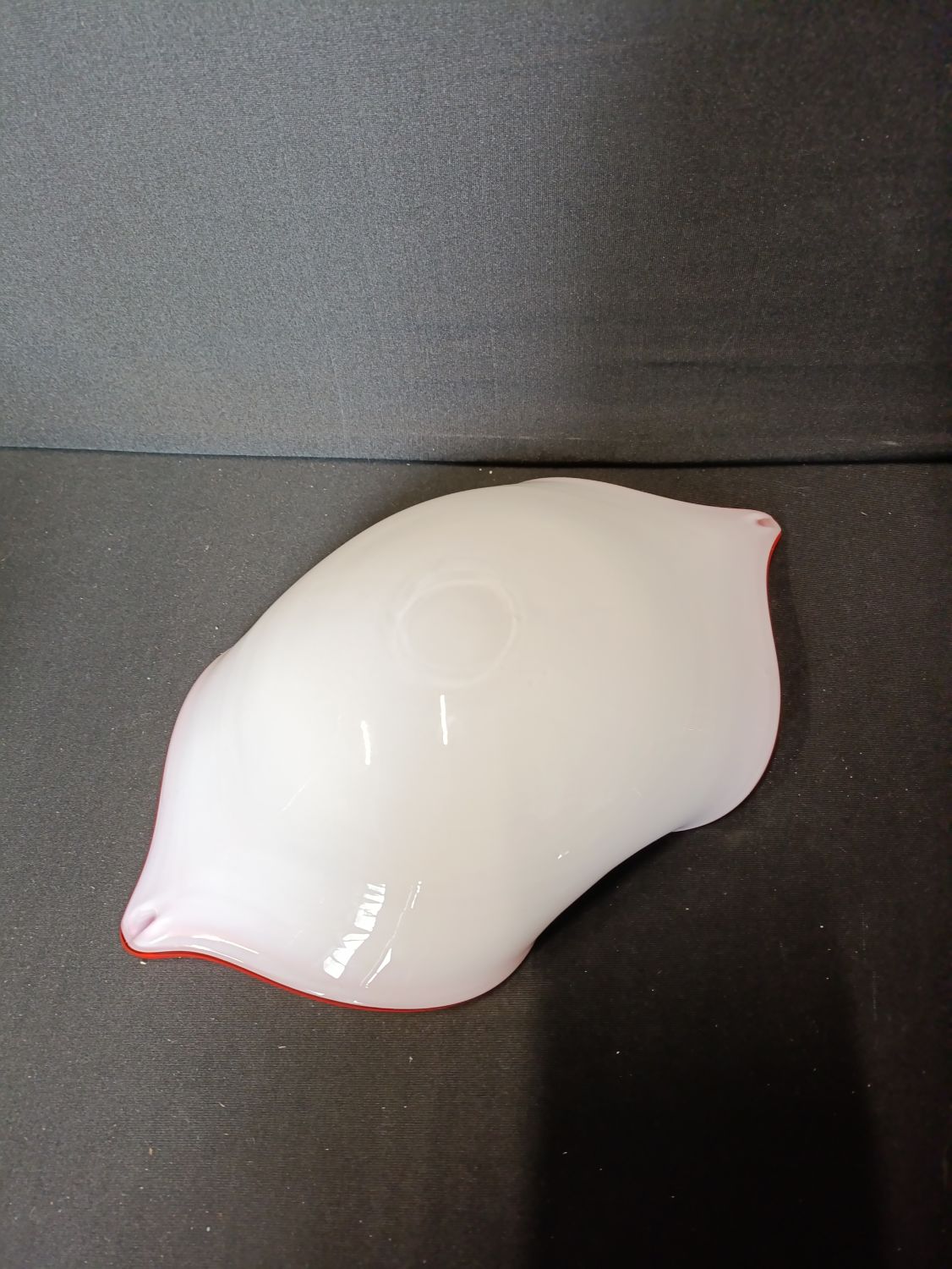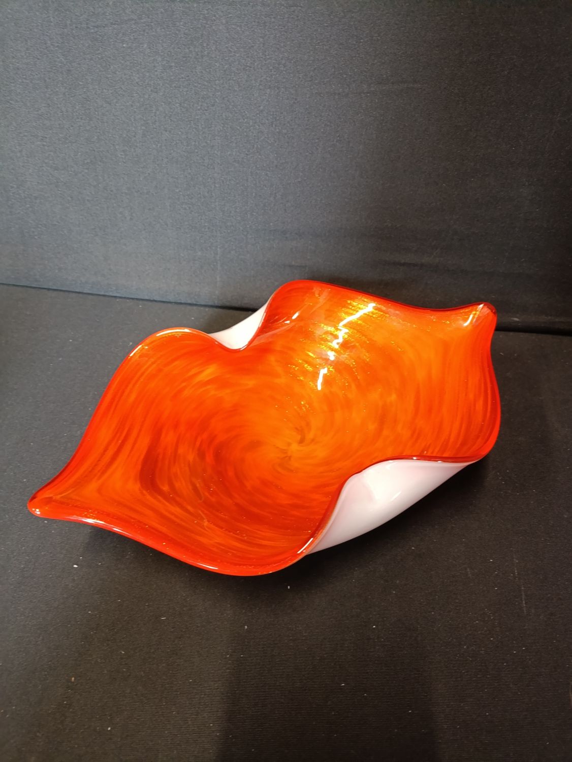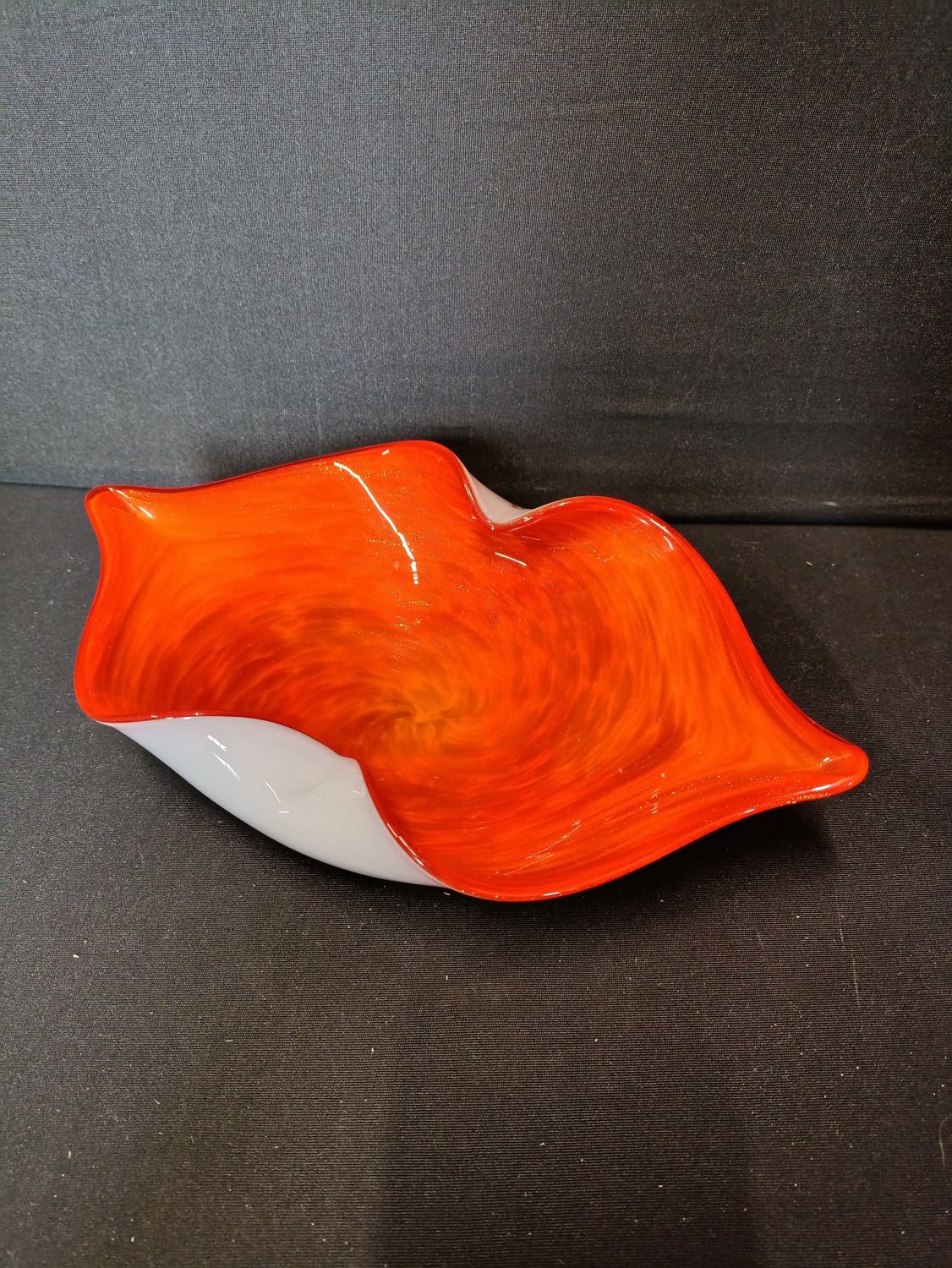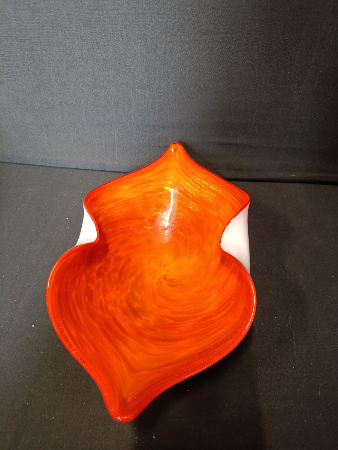 French hand made decorative orange glass bowl with glitter flashes throughout