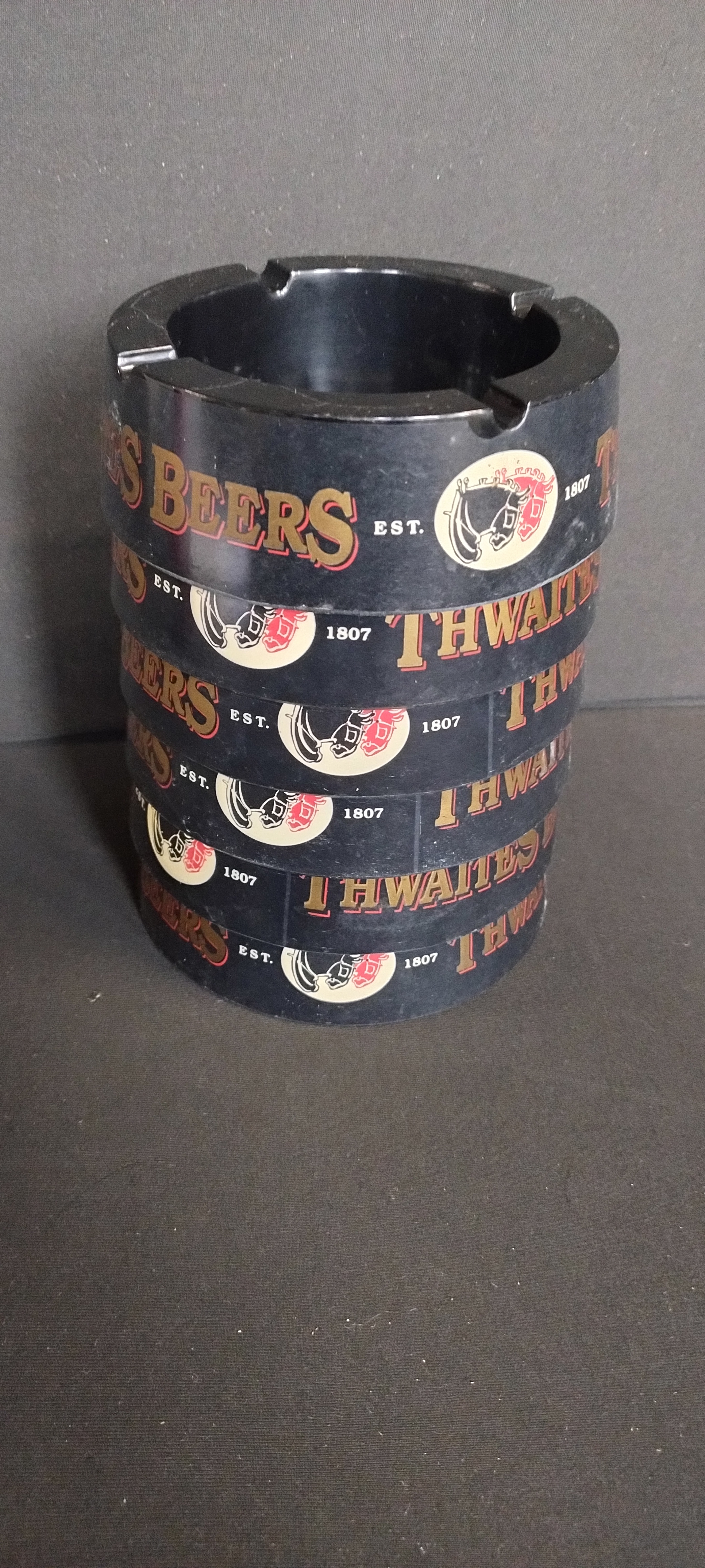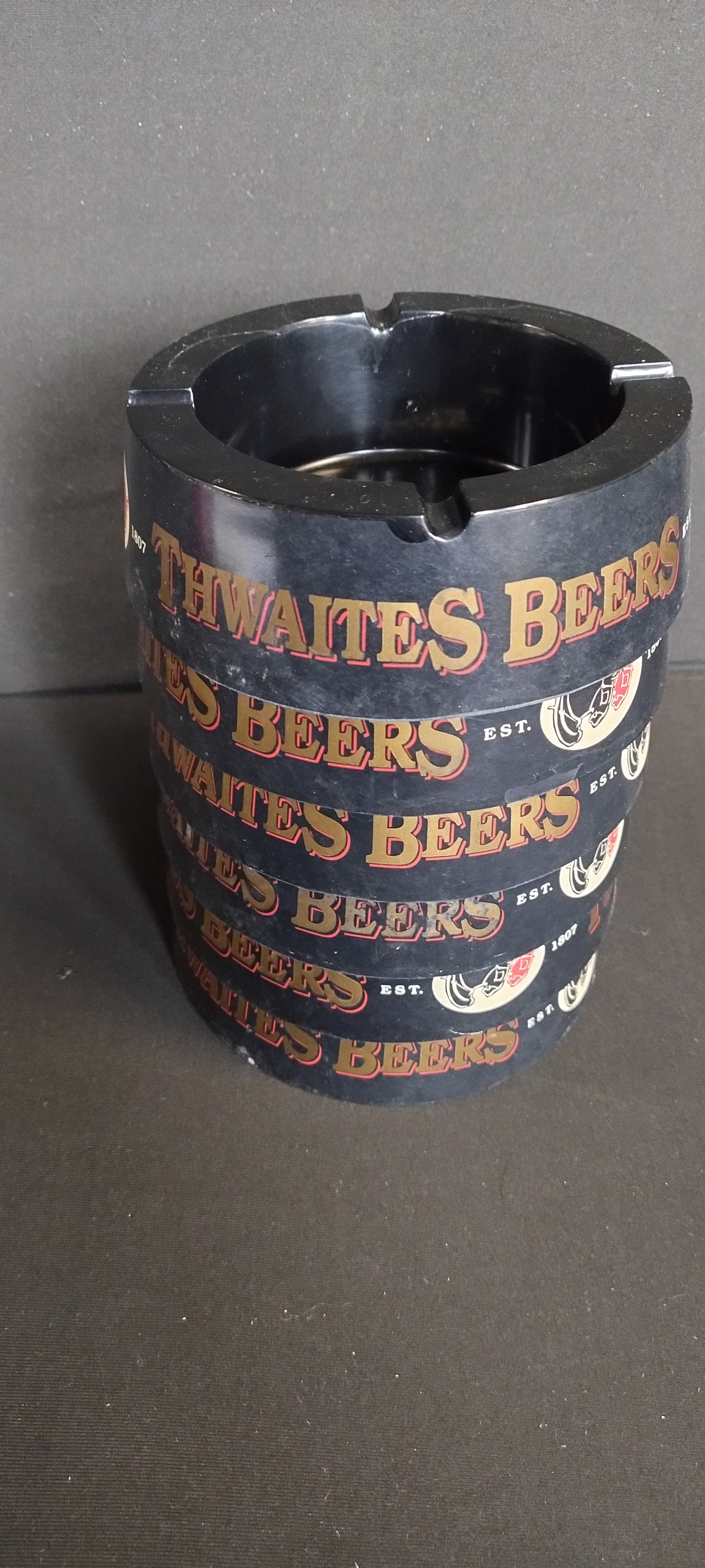 6 x Thwaites small black ashtrays