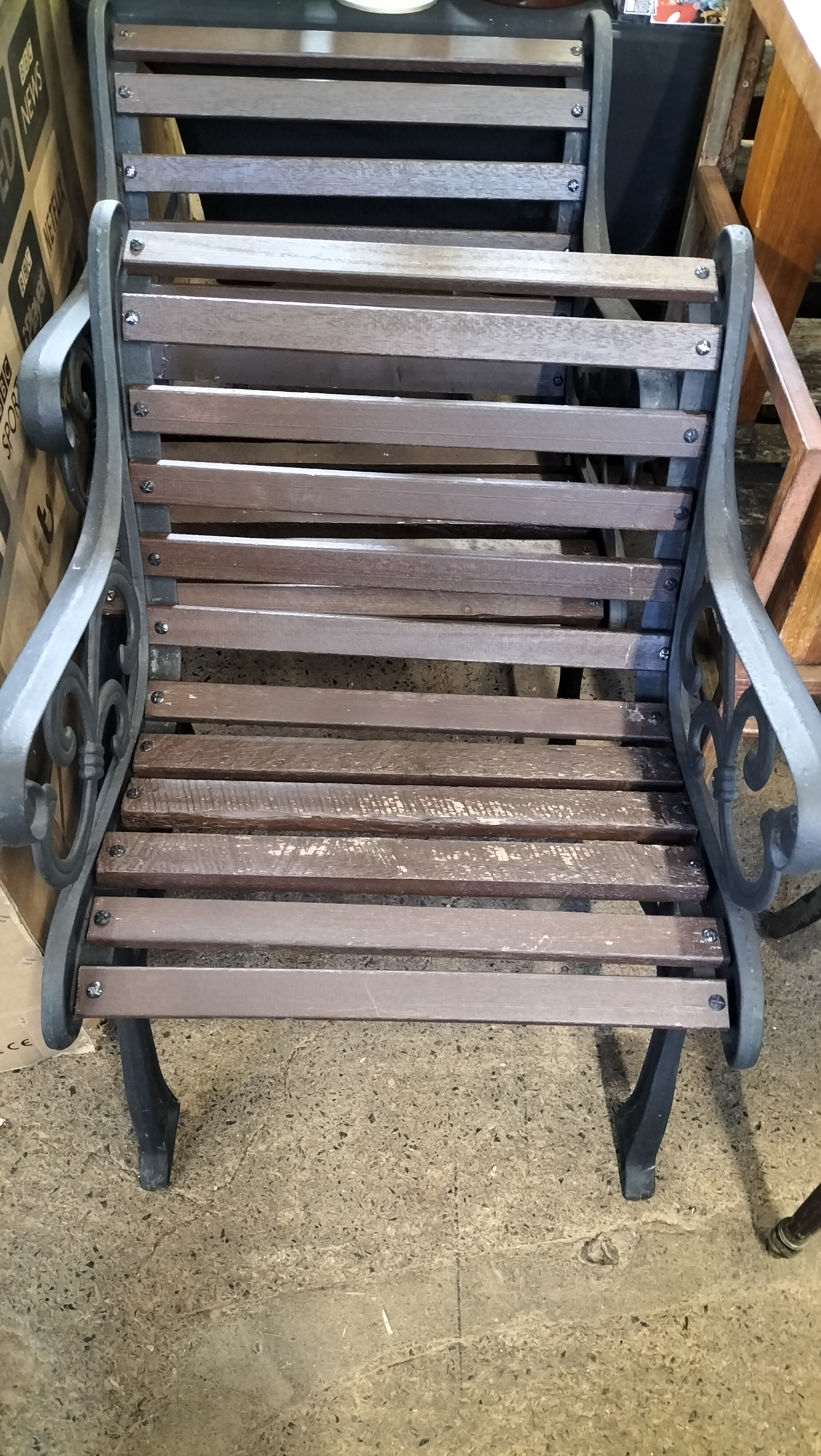Two Metal and Wood Garden Chairs, Measures approx 77 x 64 x 60 cm. COLLECTION ONLY