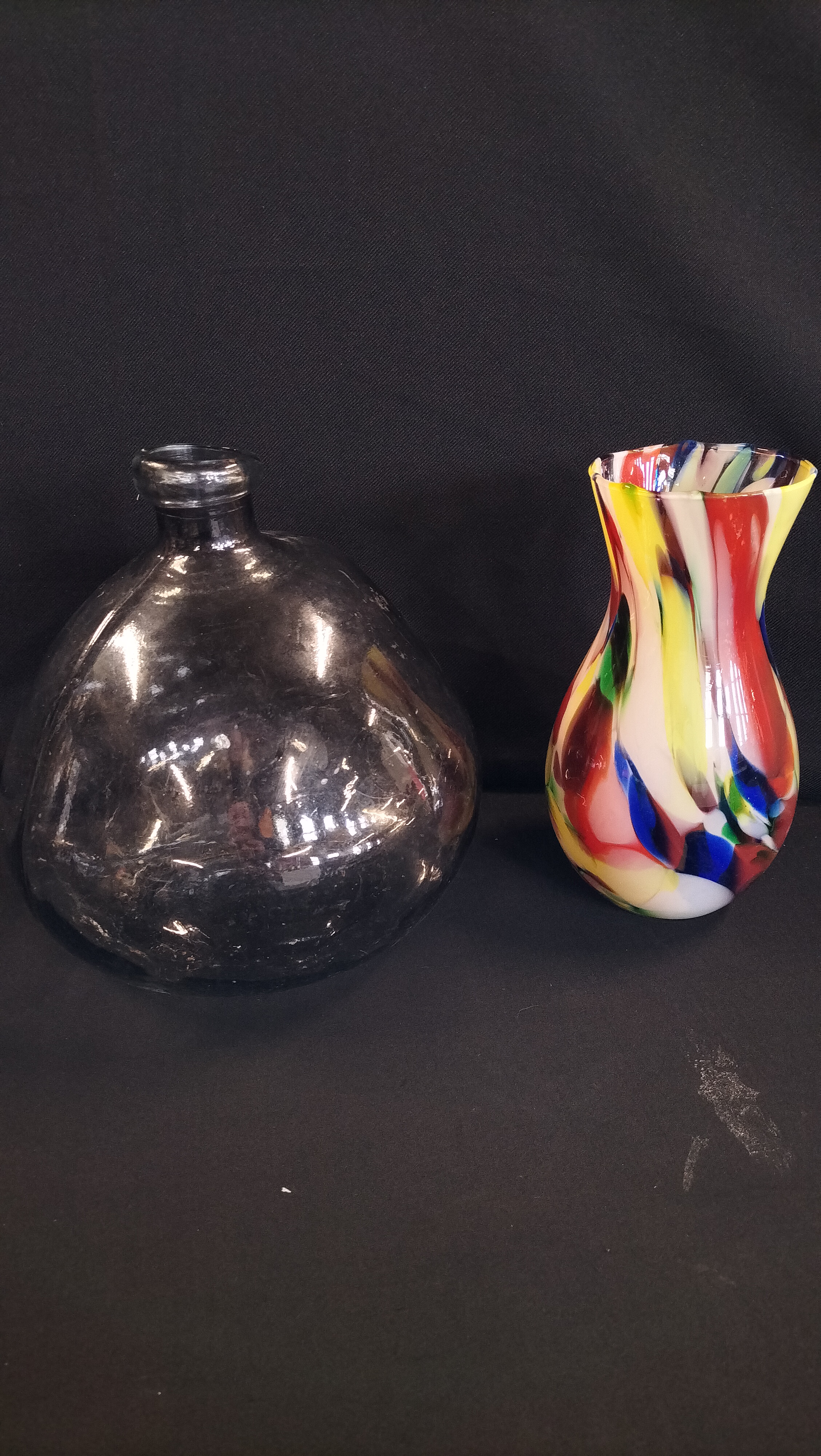 Two Glass Items. A Large Pressed Glass bulb vase and a Studio Glass Multi Coloured Vase