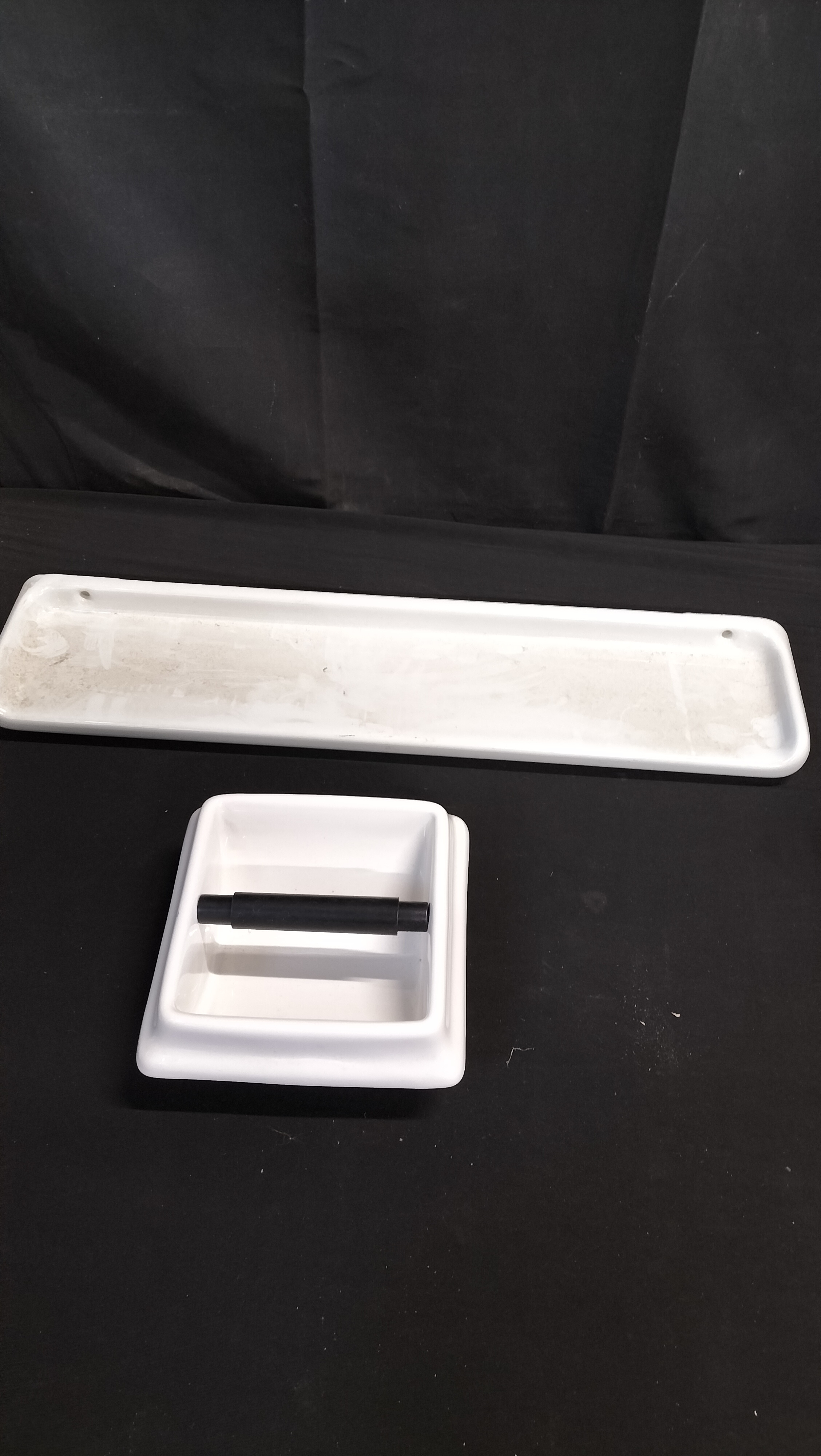 Empress porcelain bathroom wall shelf and a Armitage Shanks toilet roll holder