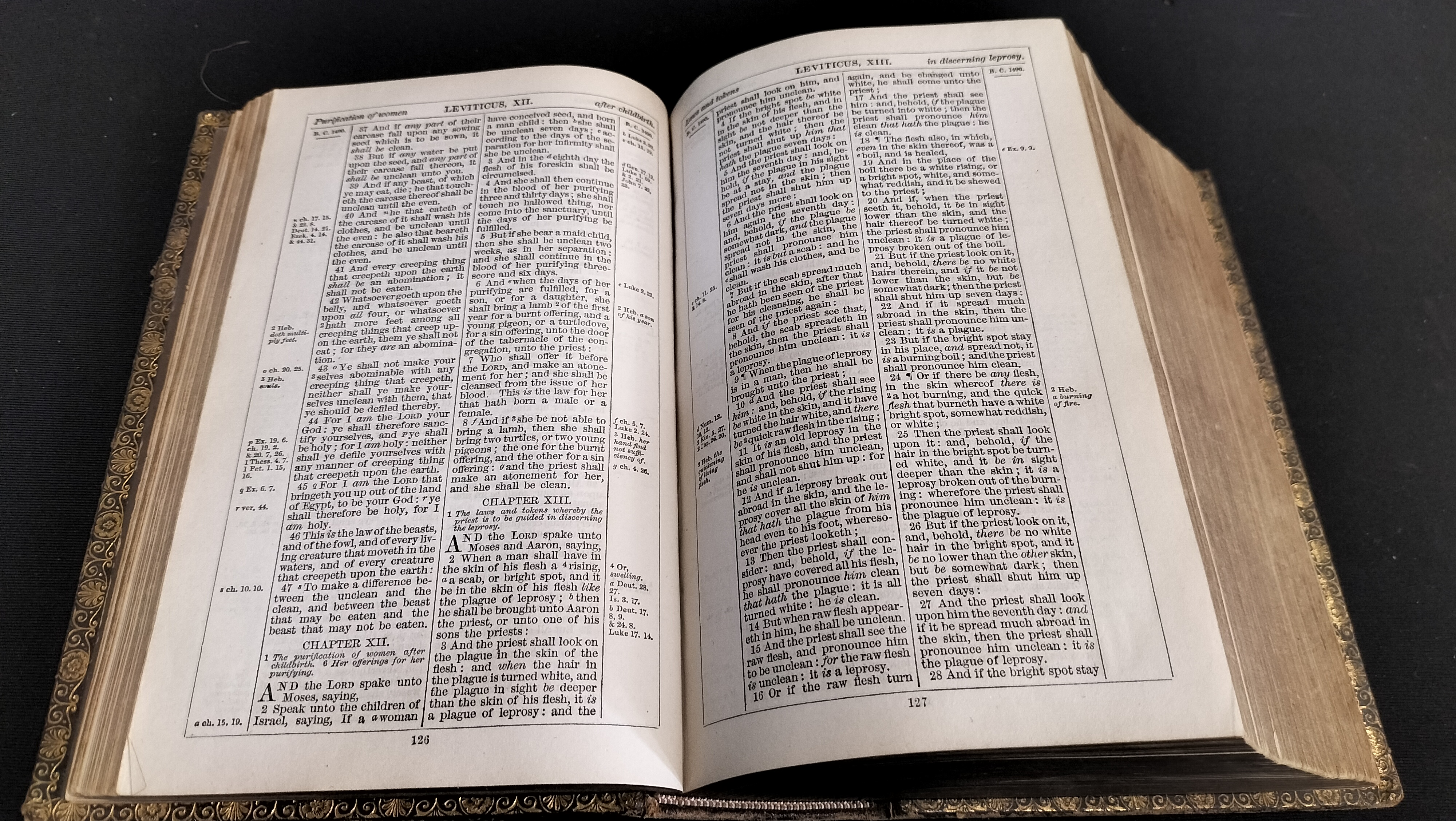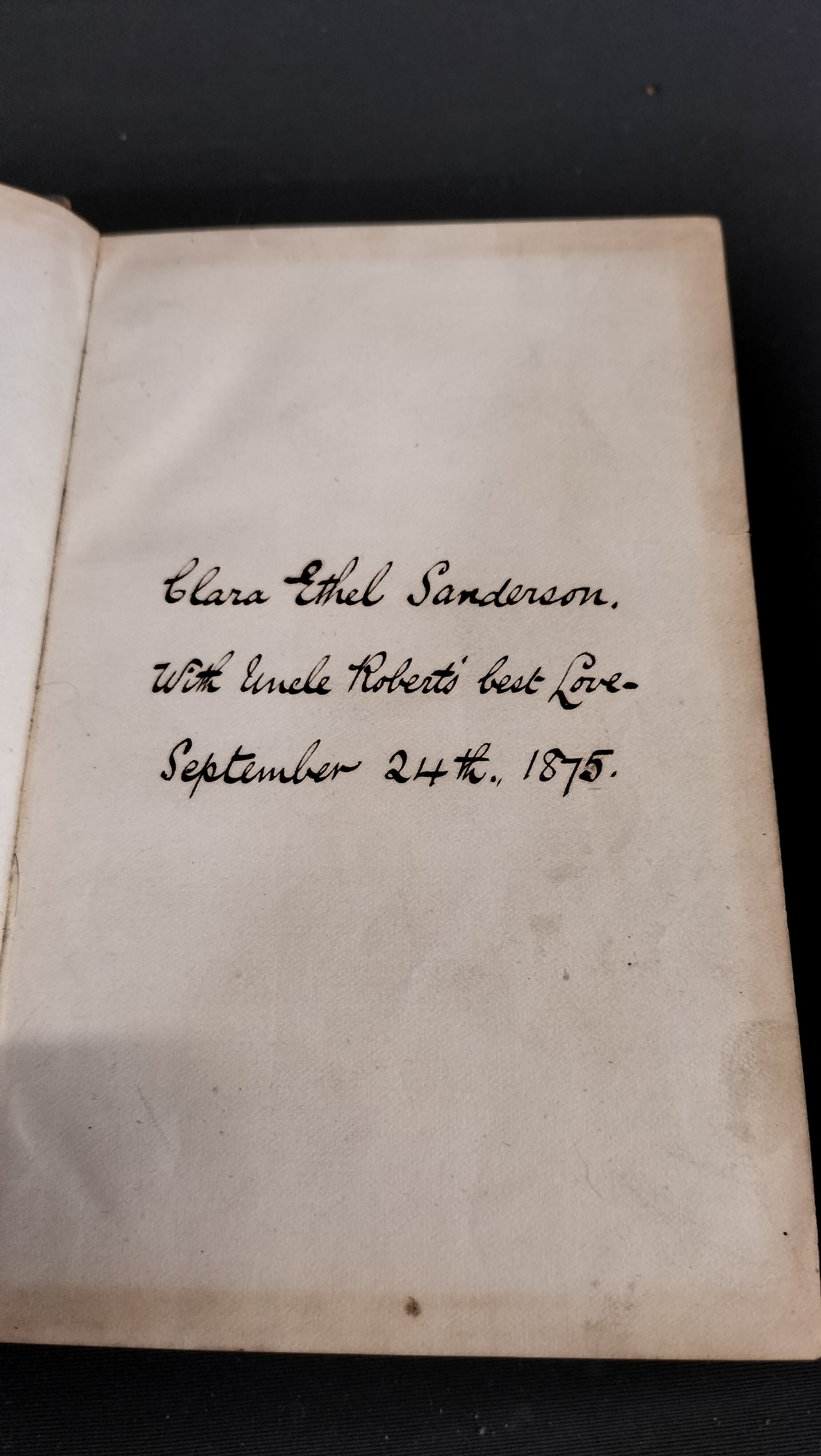 Holy Bible with gold leaf edging on pages.Gifted date of 1875