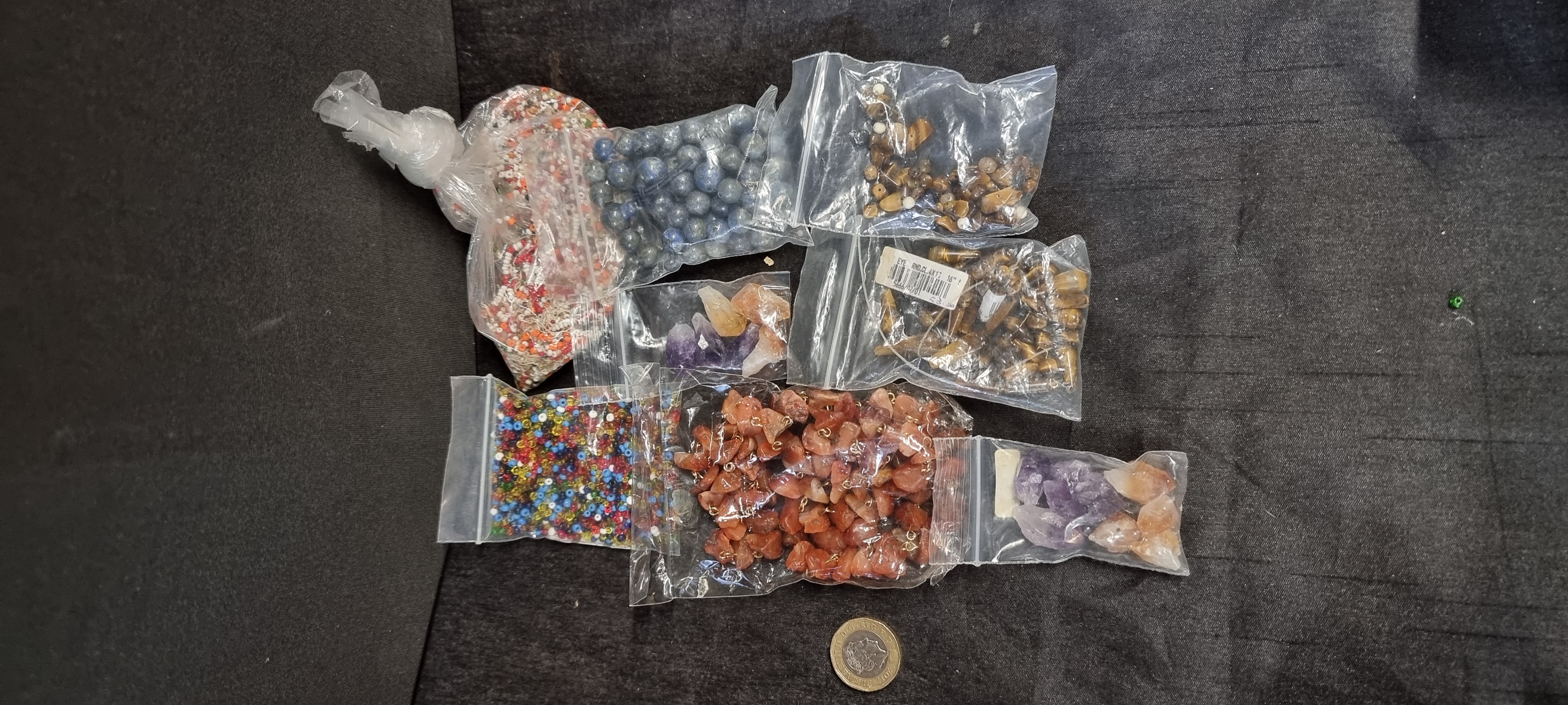 Tigers eye, Amethyst, glass beads, blue agat, red agate