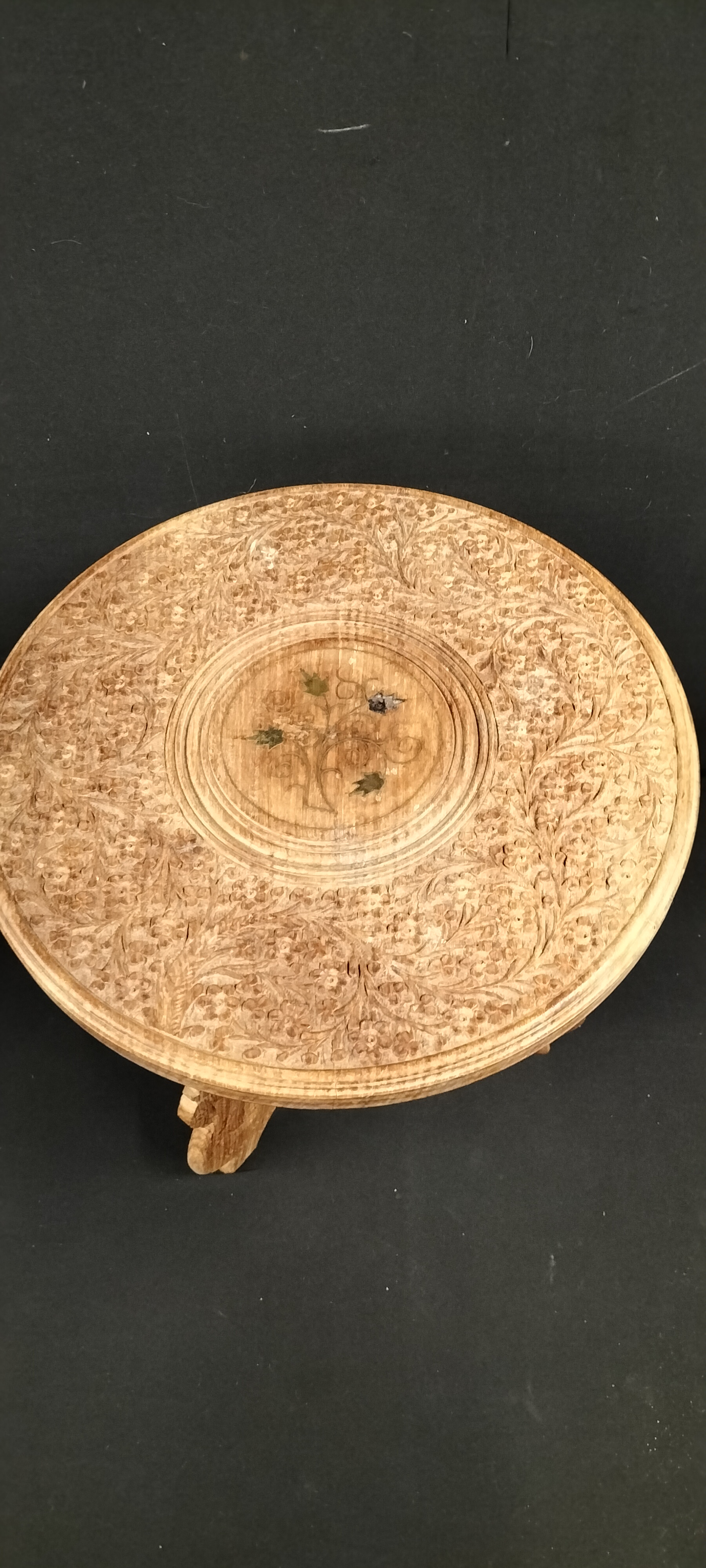 Vintage wooden Hand Carved Side Table/Plant Stand