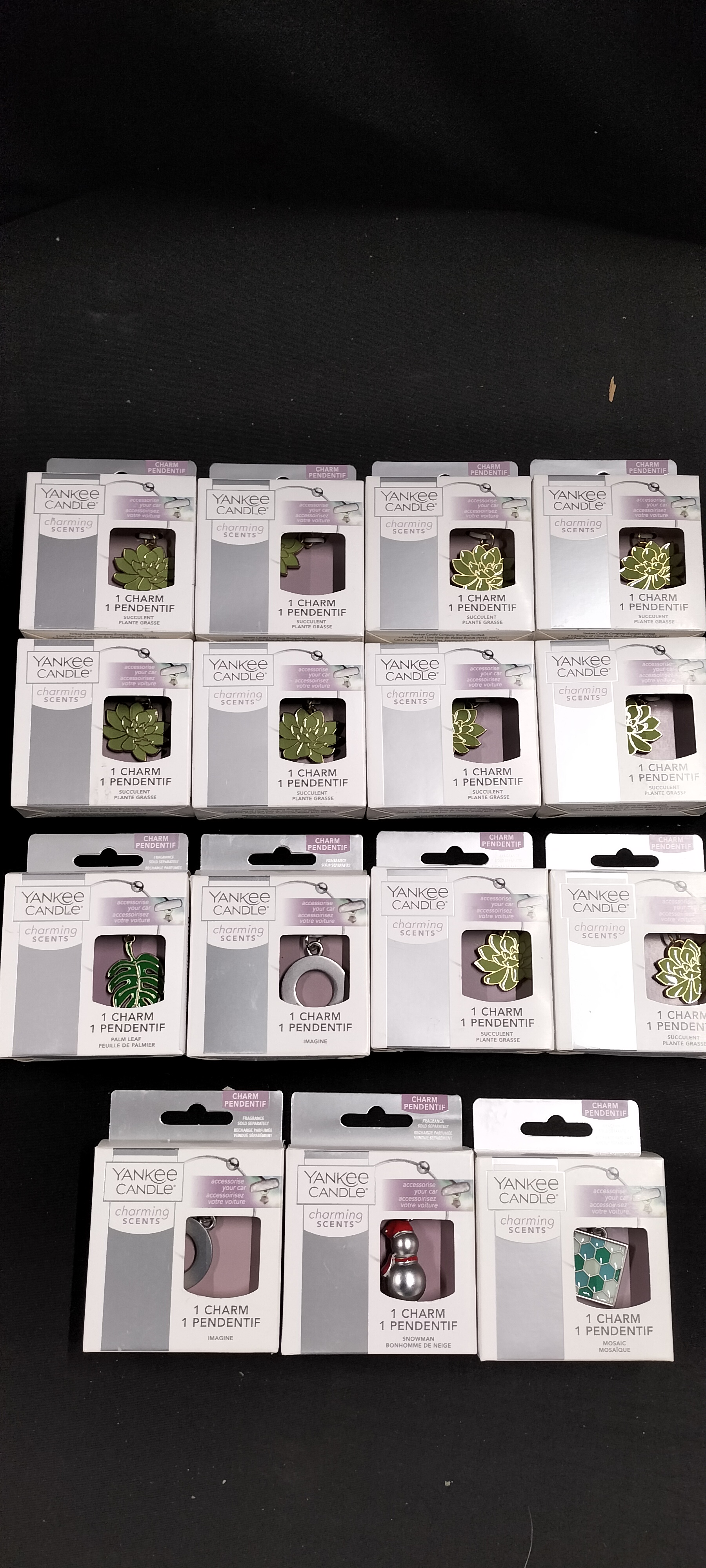 15 Yankee Candle Charming Scents Charms. 10 Succulent Grass, 2 Imagine, 1 Palm Leaf, 1 Mosaic and 1 Snowman