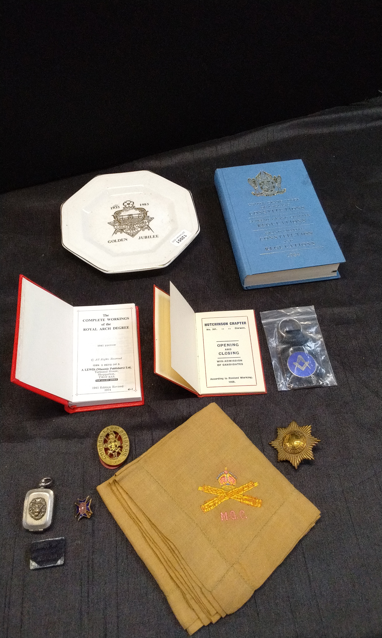 Small Golden Jubilee Plate, Mc. Dowell Blackburn Personal Ink Stamp Encased in a White Metal Case Adorned with a Lions Head. and Other Items