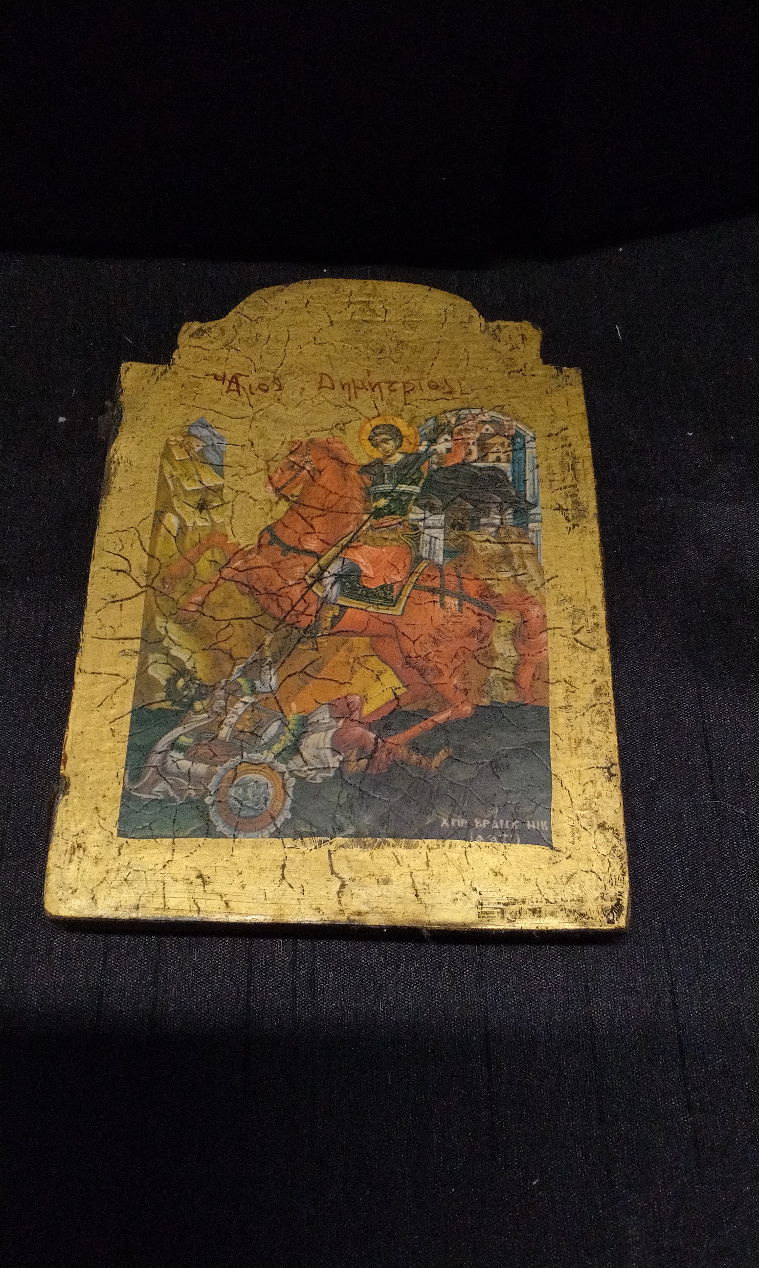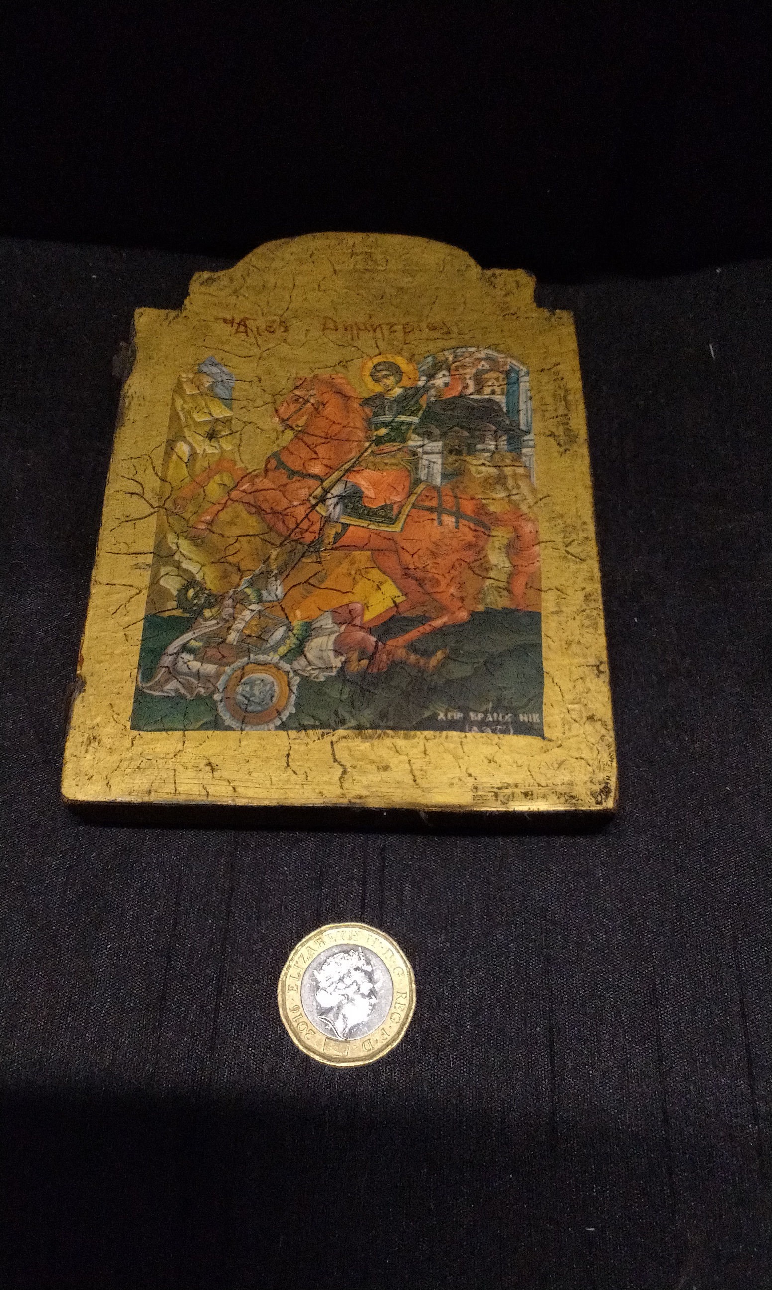 Saint Icon Agios Dimitrios. Measures Approx 14x10cm
