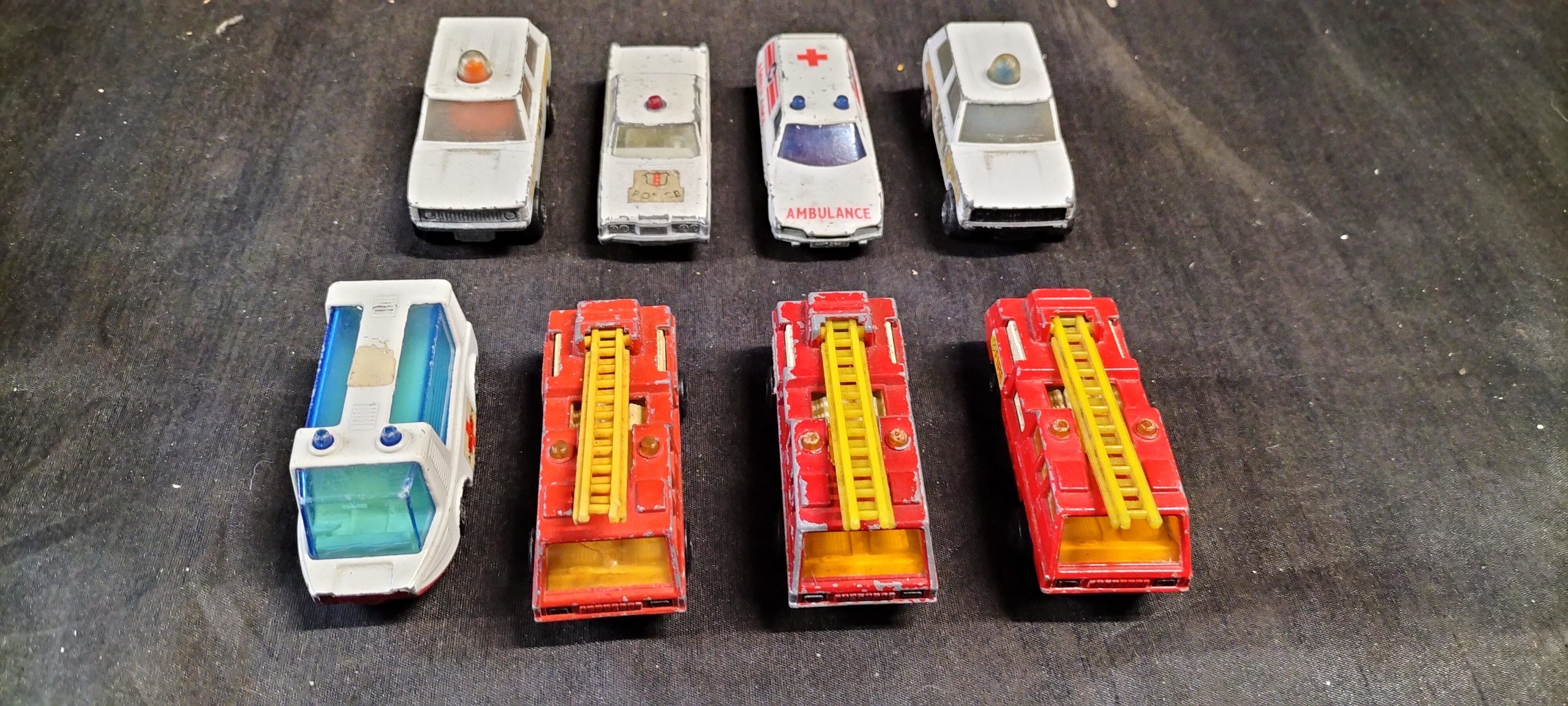 A Collection of Emergency Services Themed Playworn Die-cast Vehicles, Mostly Matchbox