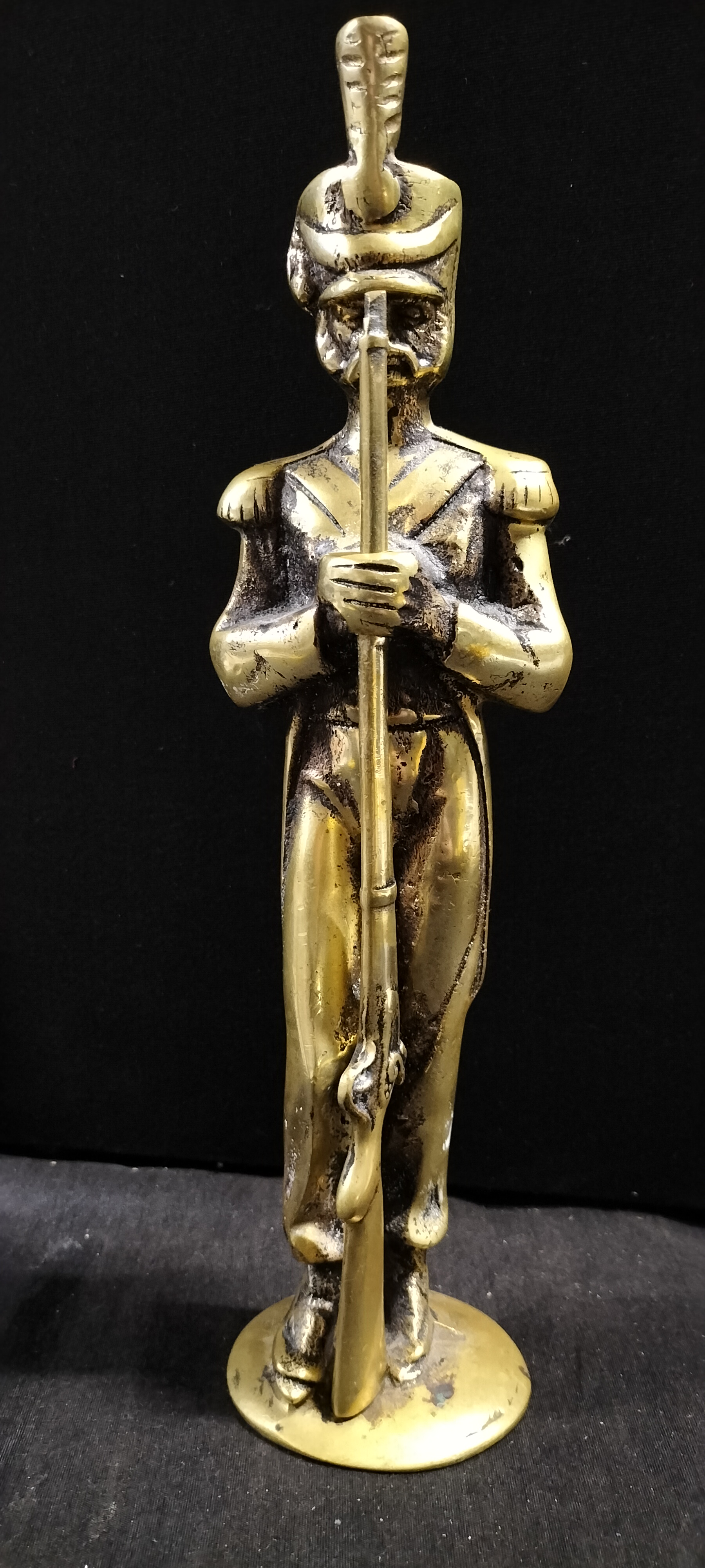 A Vintage Solid Brass Figurine of a Napoleonic French Soldier, Approx 29cm Tall