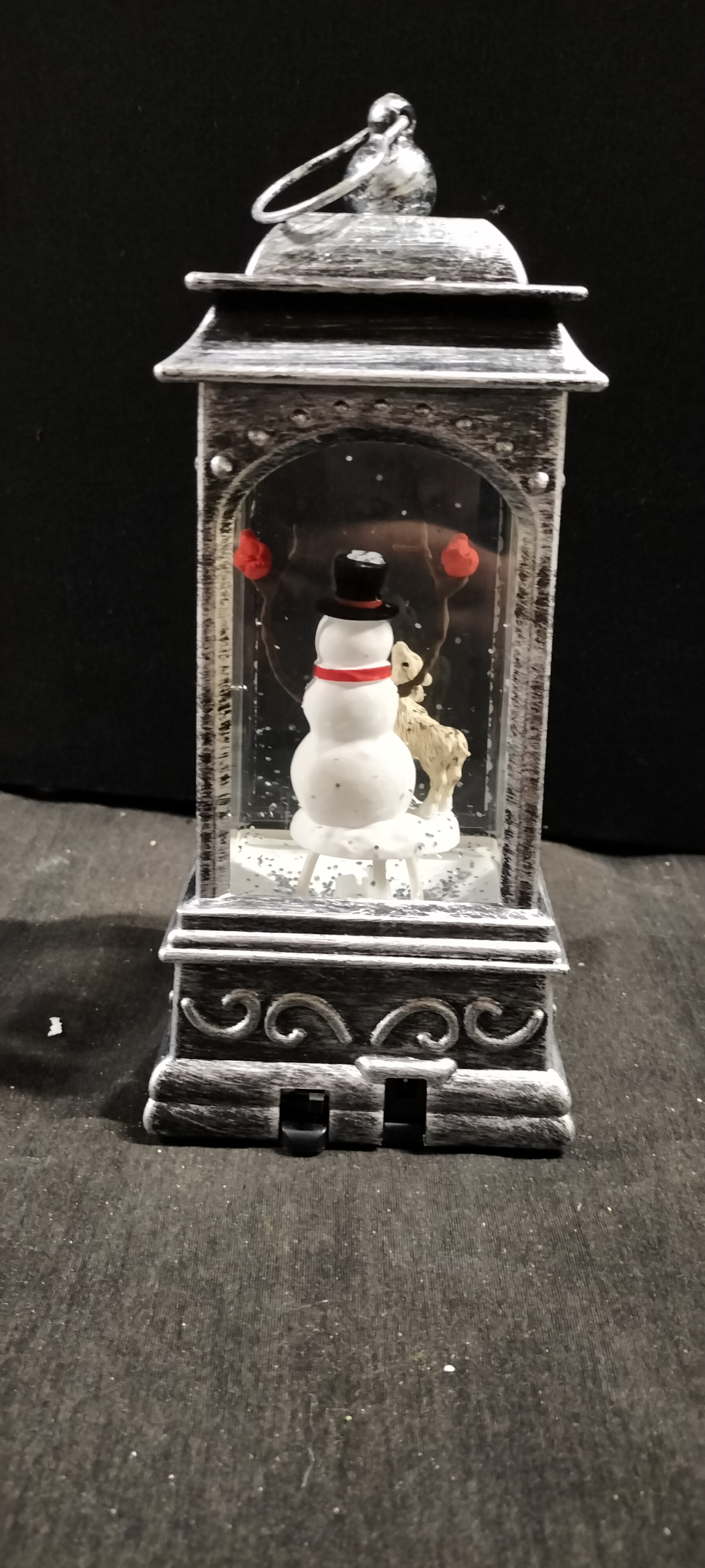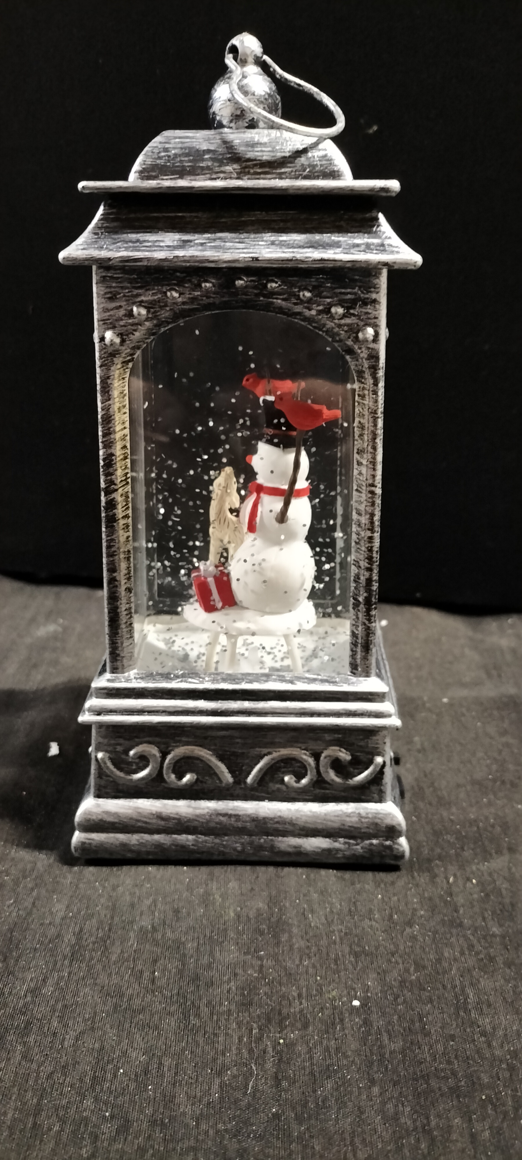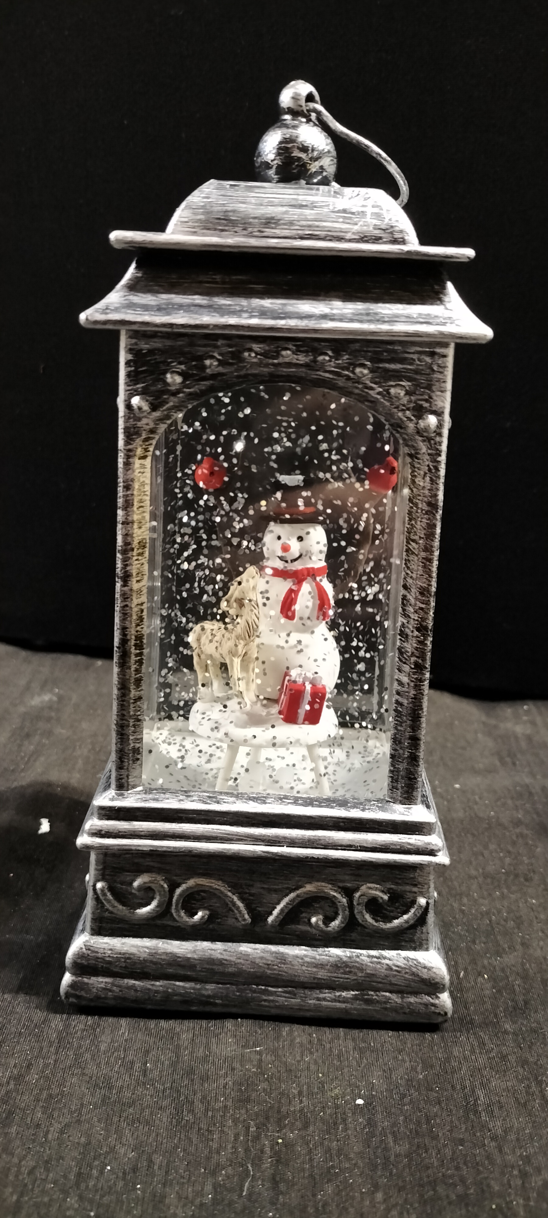 A Premier Glitter Spinner with White LEDs, A Beautiful LED Lantern with Snowman Scene . Tested for Power