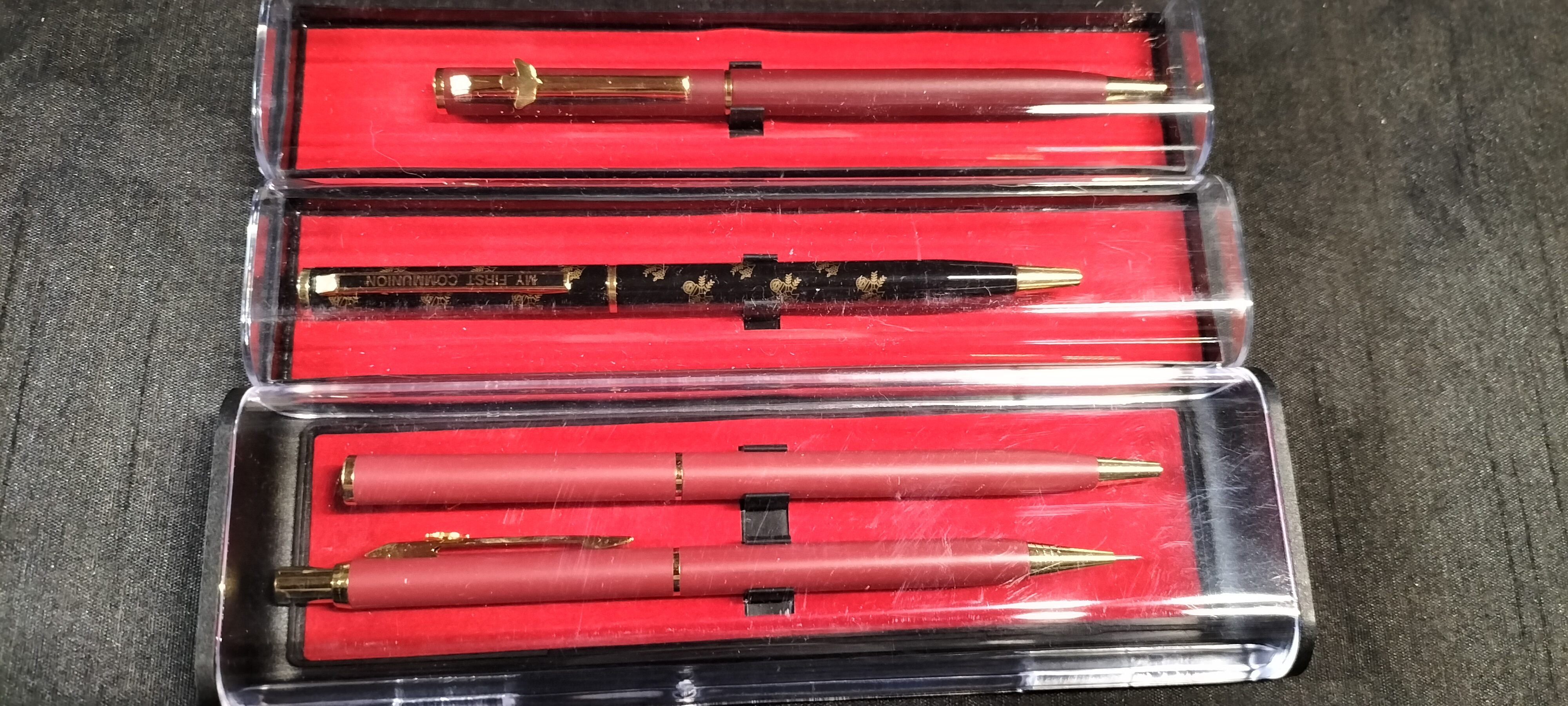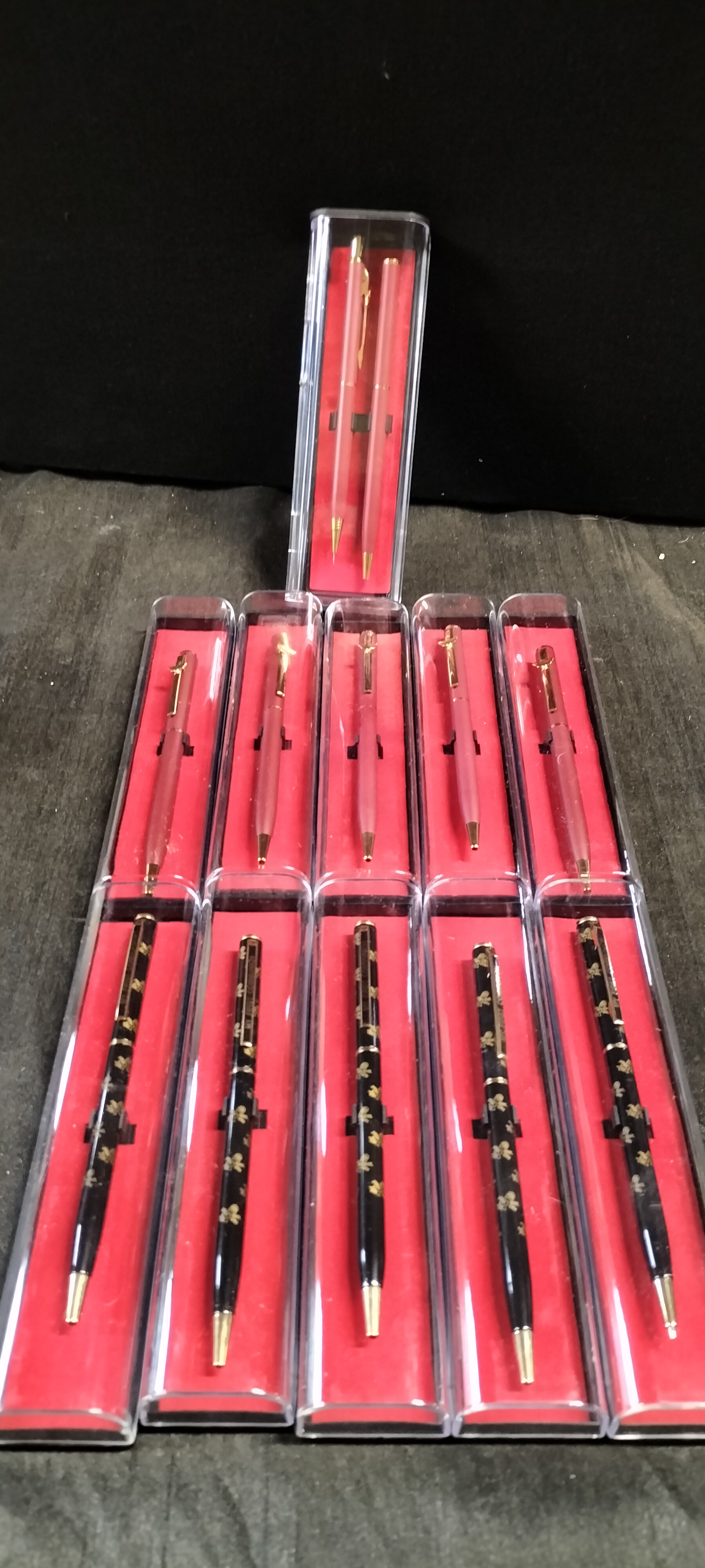 Ten Ballpoint Pens in Presentation Cases and a Pen & Pencil set in a Presentation Case.