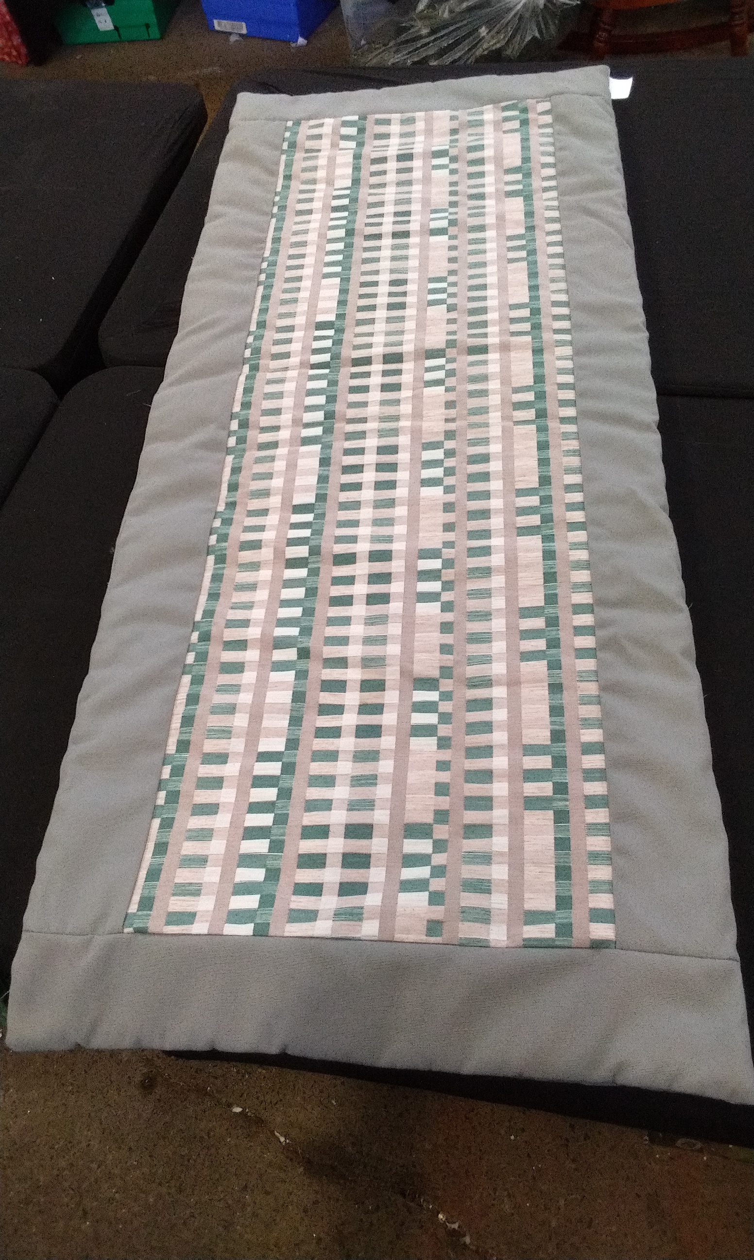 Brand New Rectangular Textile Bed Runner with Plaid Pattern and Grey Border. Measures Approx L147 x W58cm