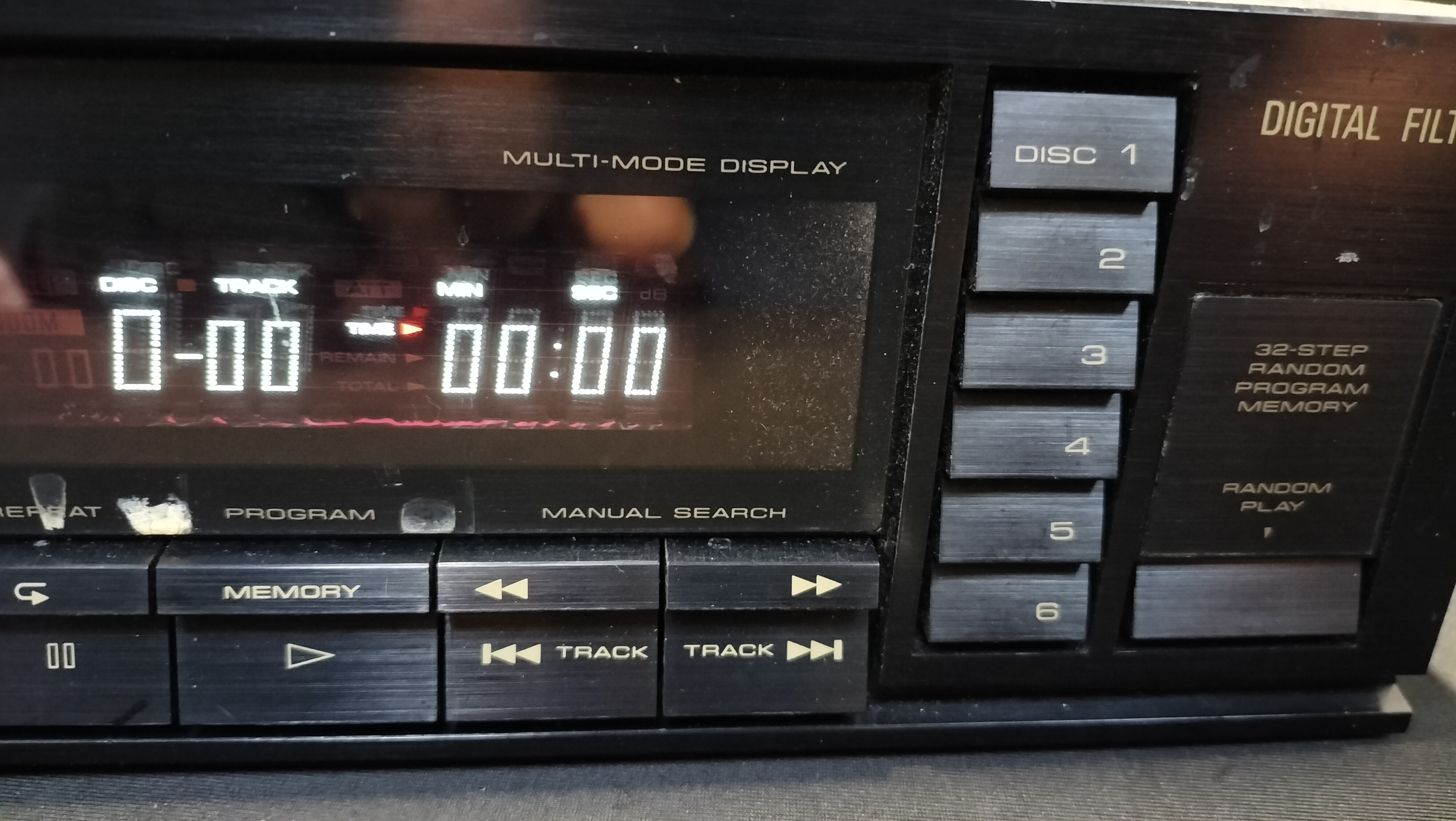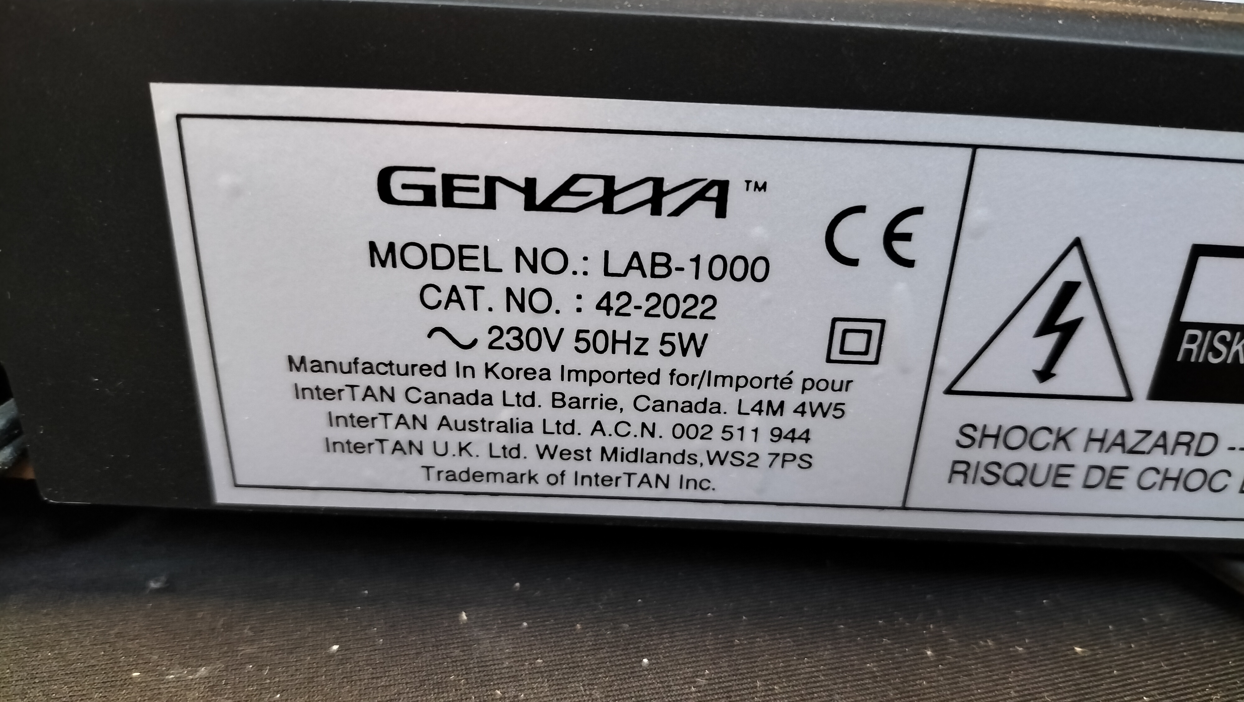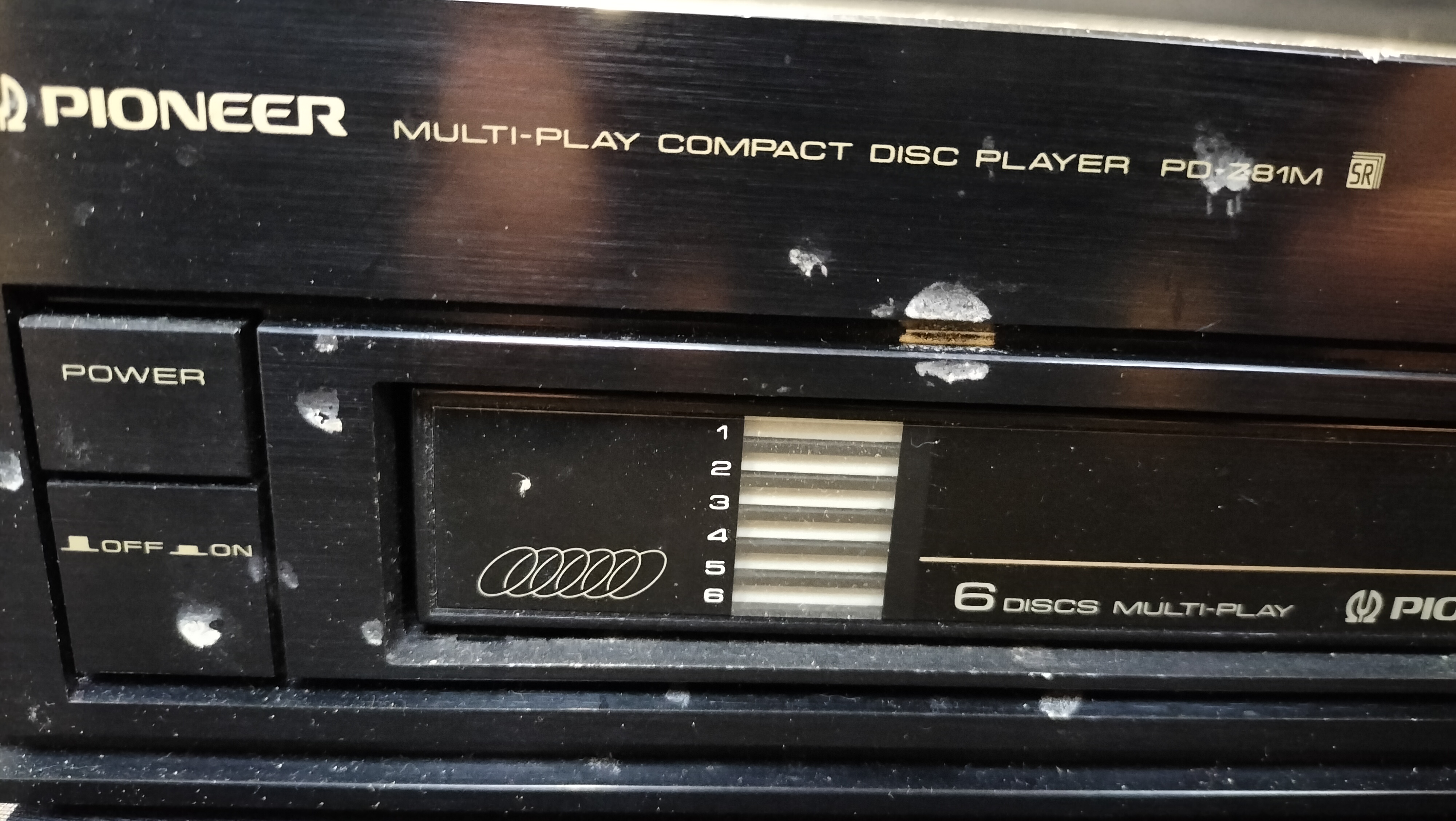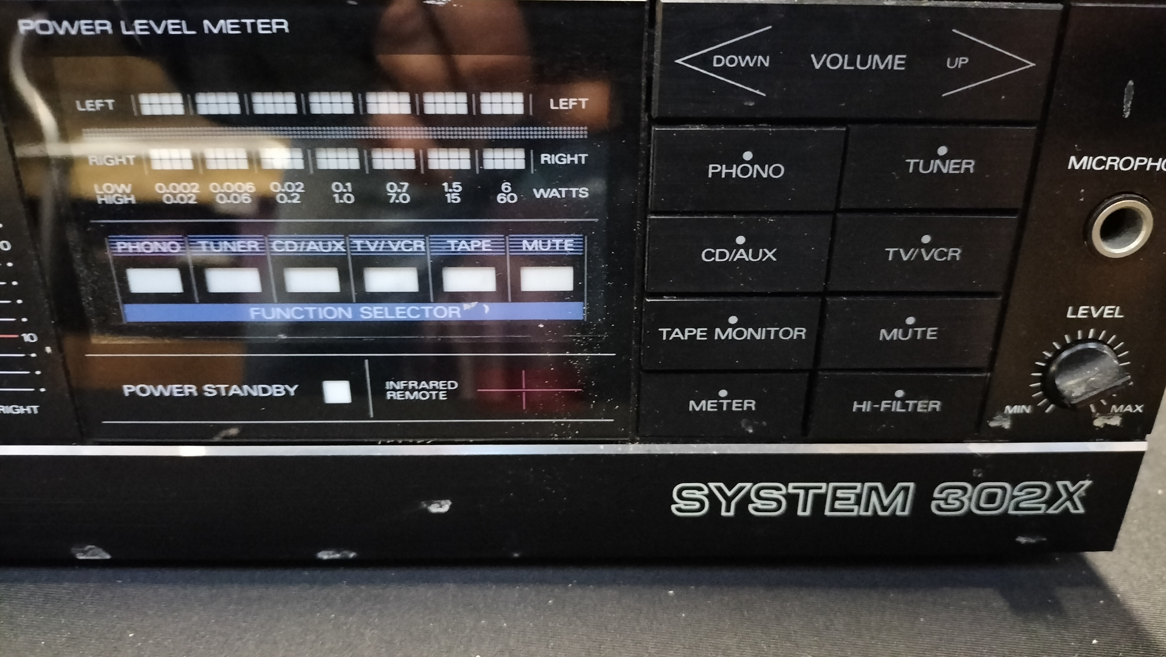 A trio of black stereo components comprising a Genexxa LAB-1000 turntable, a Memorex SA-302X amplifier with remote and manual, and a Pioneer PD-Z81M multi-play CD player with manual and magazine.