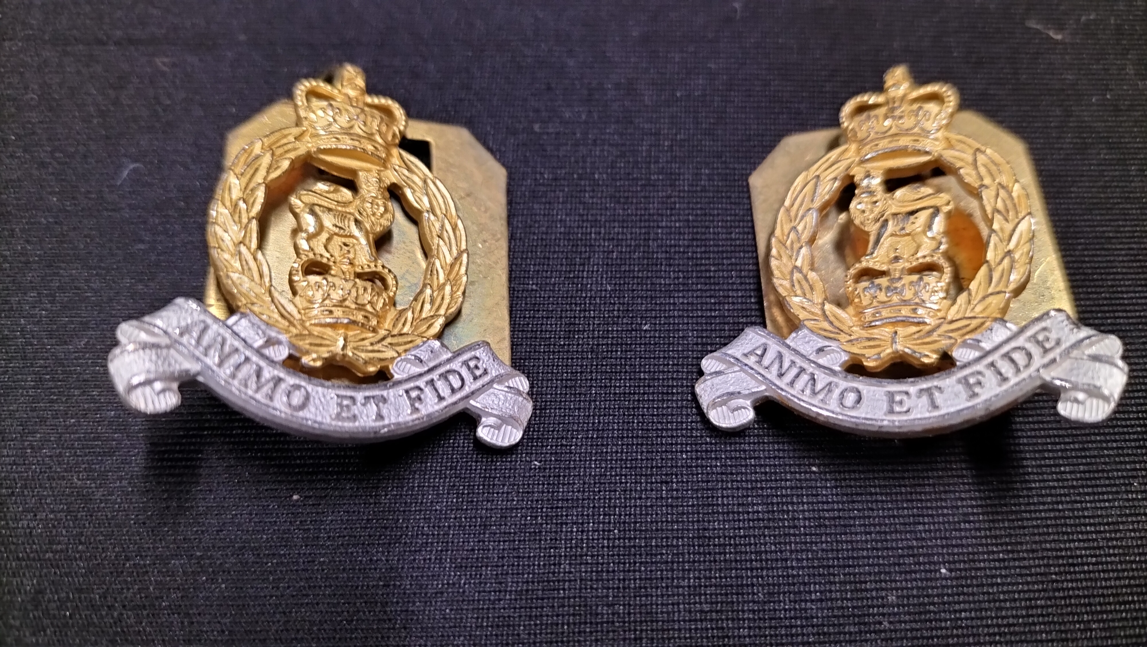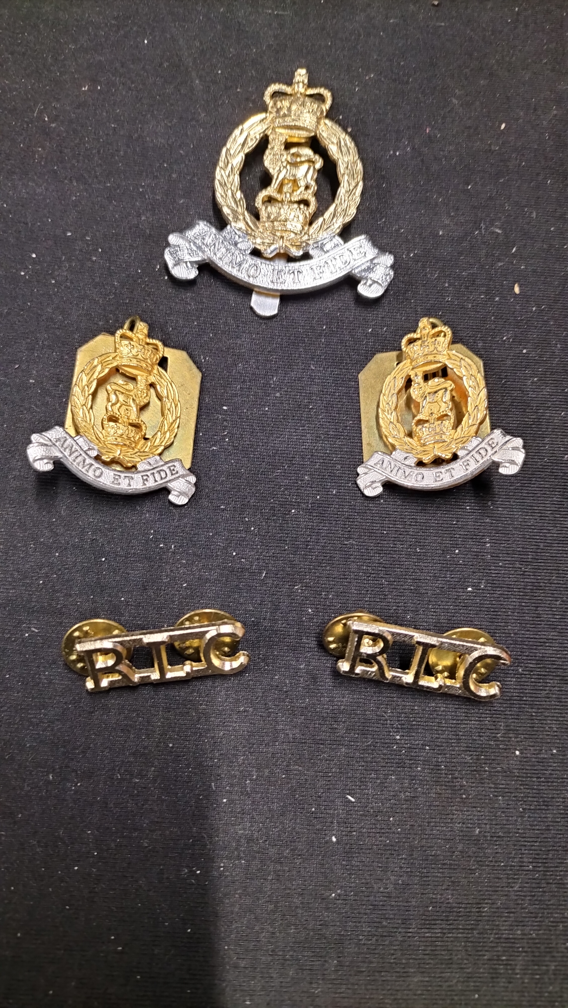 1 x Adjutant General Corp. cap Badge, A Pair of Adjutant General Corp Collar Dogs and A Pair of R.L.C. Shoulder Titles.