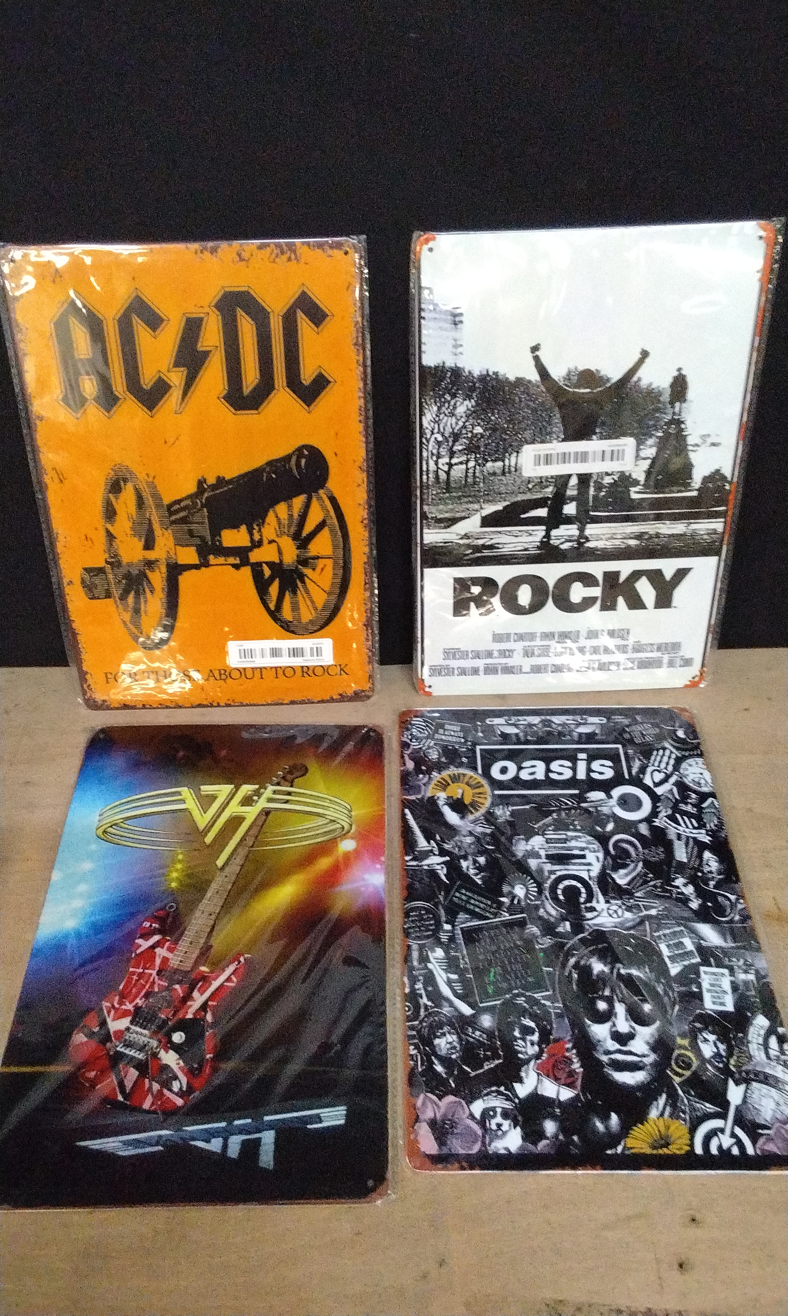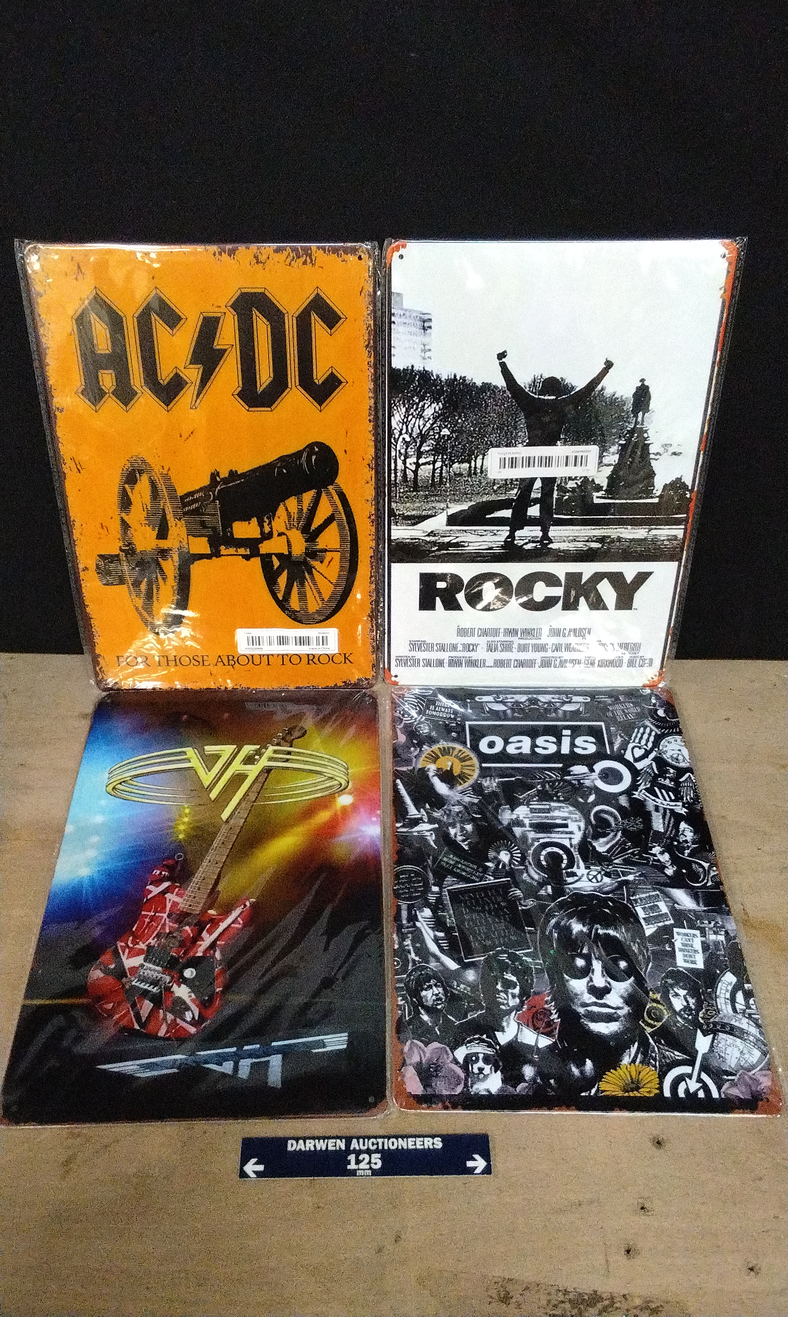 4x Reproduction Wall Signs. Rocky, AC/DC, Van Halen, and Oasis