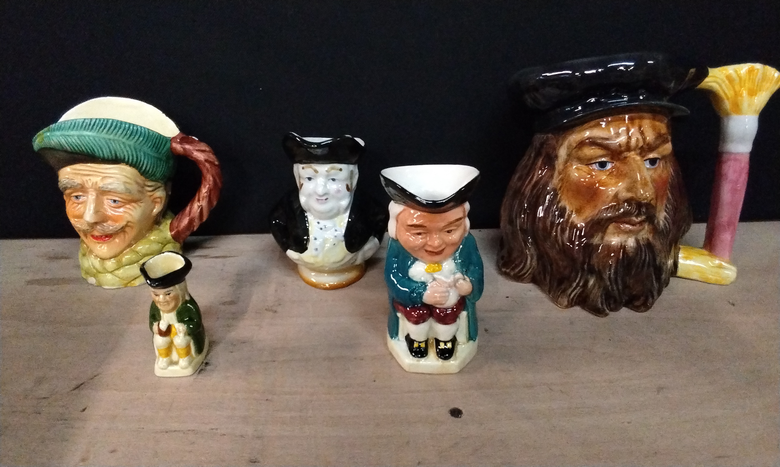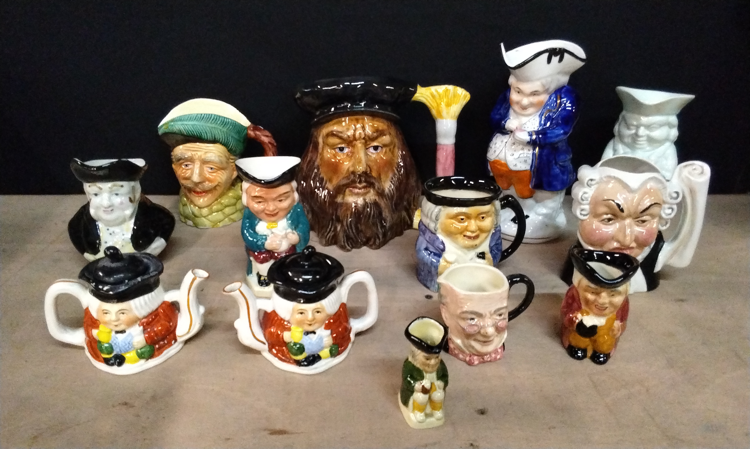 Collection of 13 Various Character Jugs and 2 x 2 face Miniature Teapots, Including Burlington Ware, Artone, Shorter, Sandland, Tony Wood.