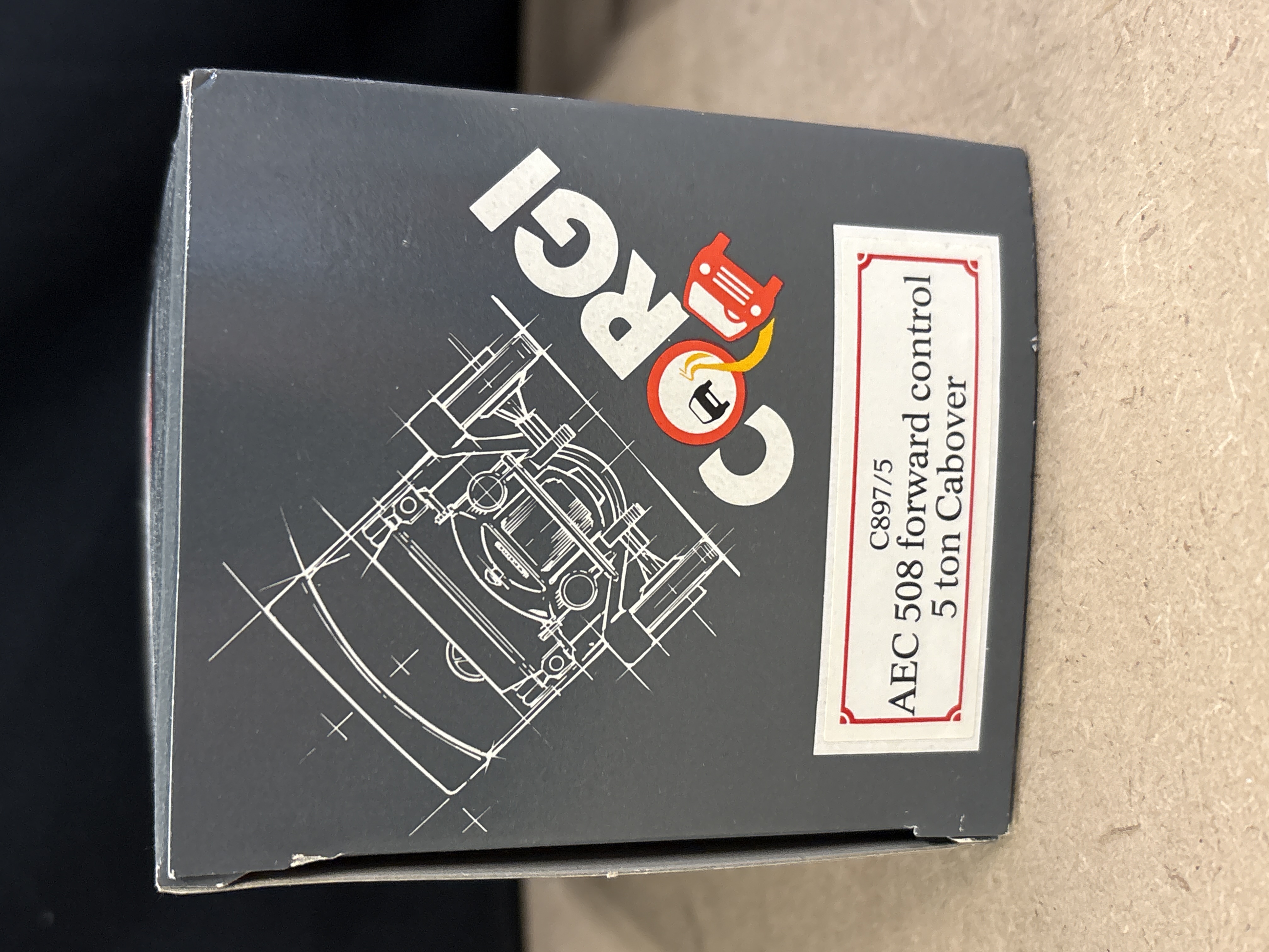 Produced by Corgi as part of the Corgi Classics series, this is a 1:43 scale model of an AEC 508 Forward Control 5 Ton Cabover truck (Product Code C897/5). The model is constructed from metal and features the vintage commercial livery for Radiolux Amplion, including the slogans “The World’s Standard Wireless Loud Speaker” and “for Better Radio Reproduction”. The colour scheme consists of a navy blue cab and lower chassis with a contrasting light blue upper cargo section and black fenders. The cab doors are marked with the number 18. This single item is presented in its original grey window box with the characteristic yellow internal display insert.