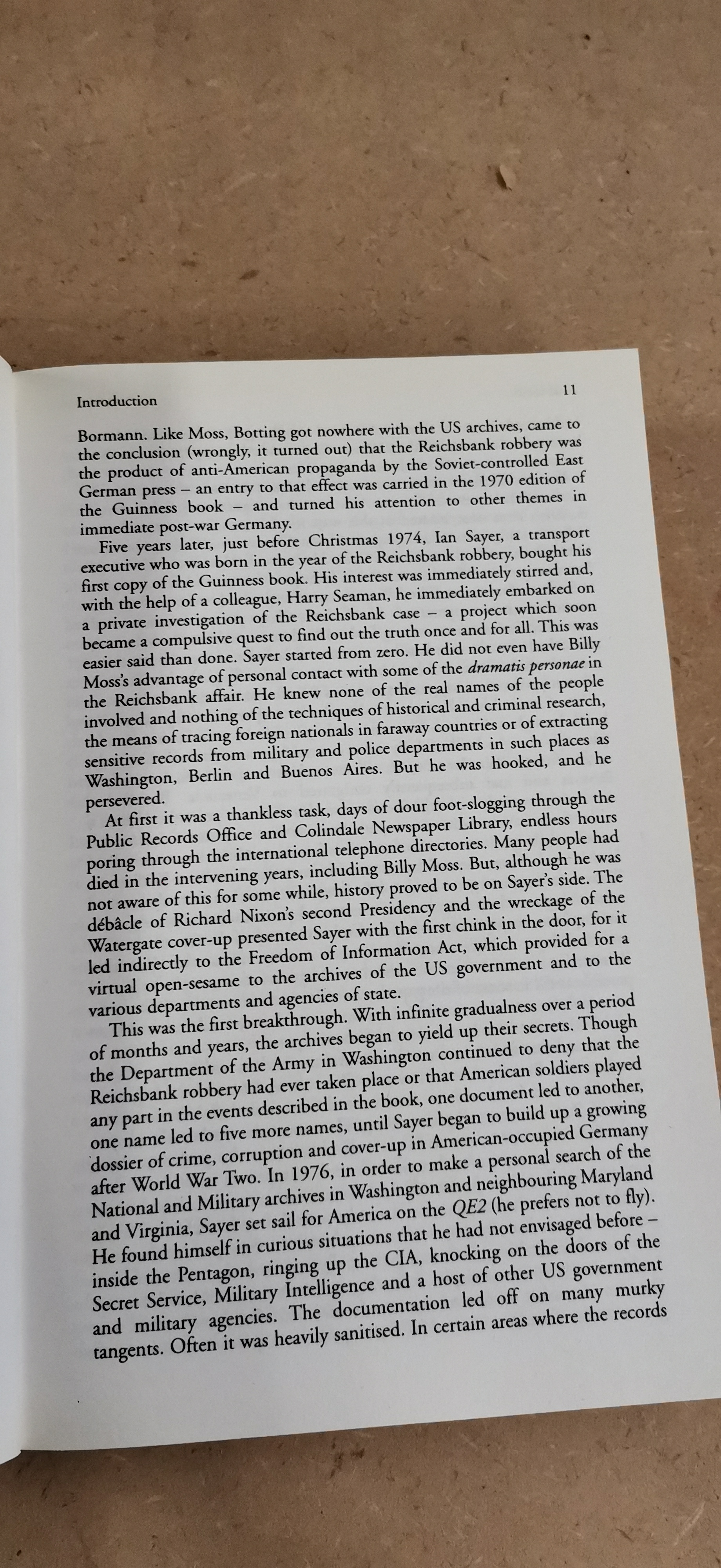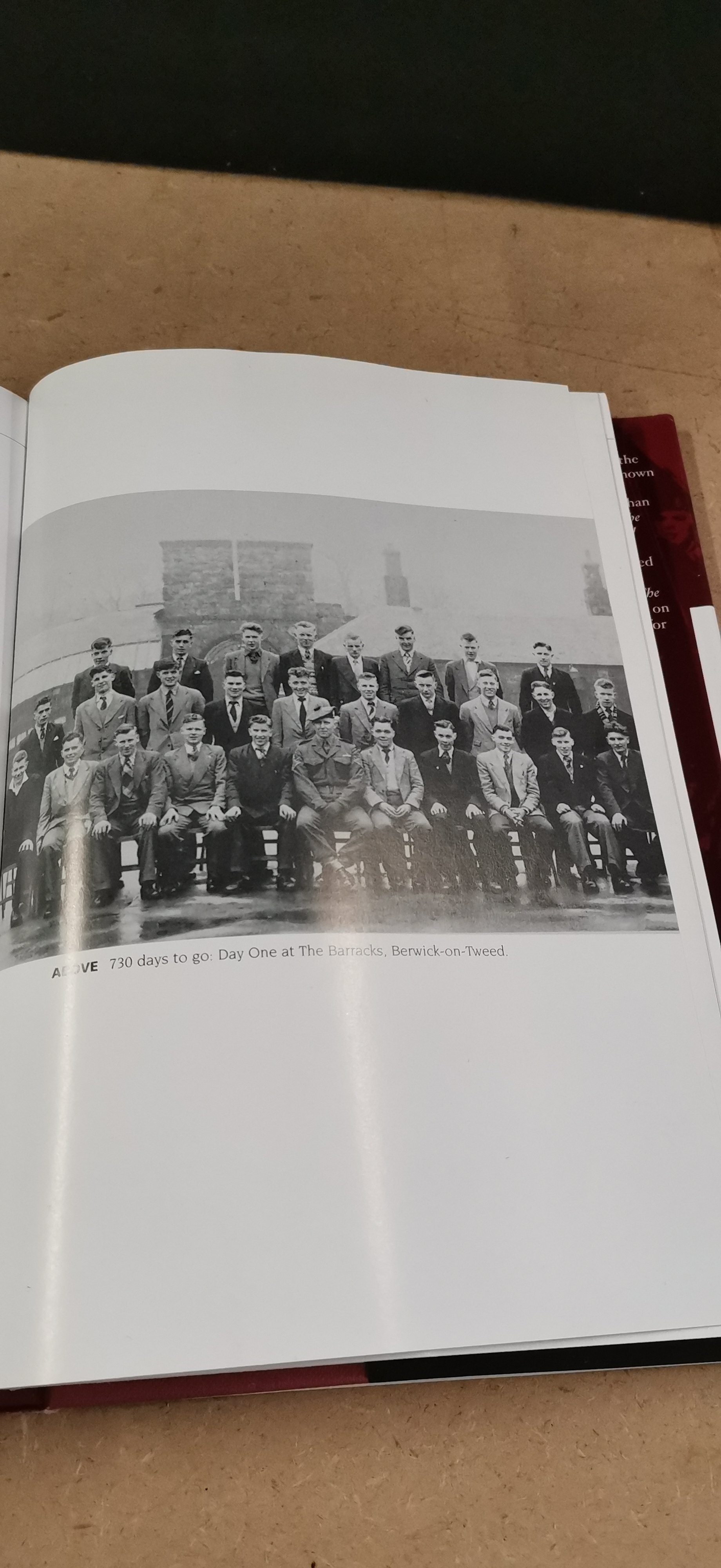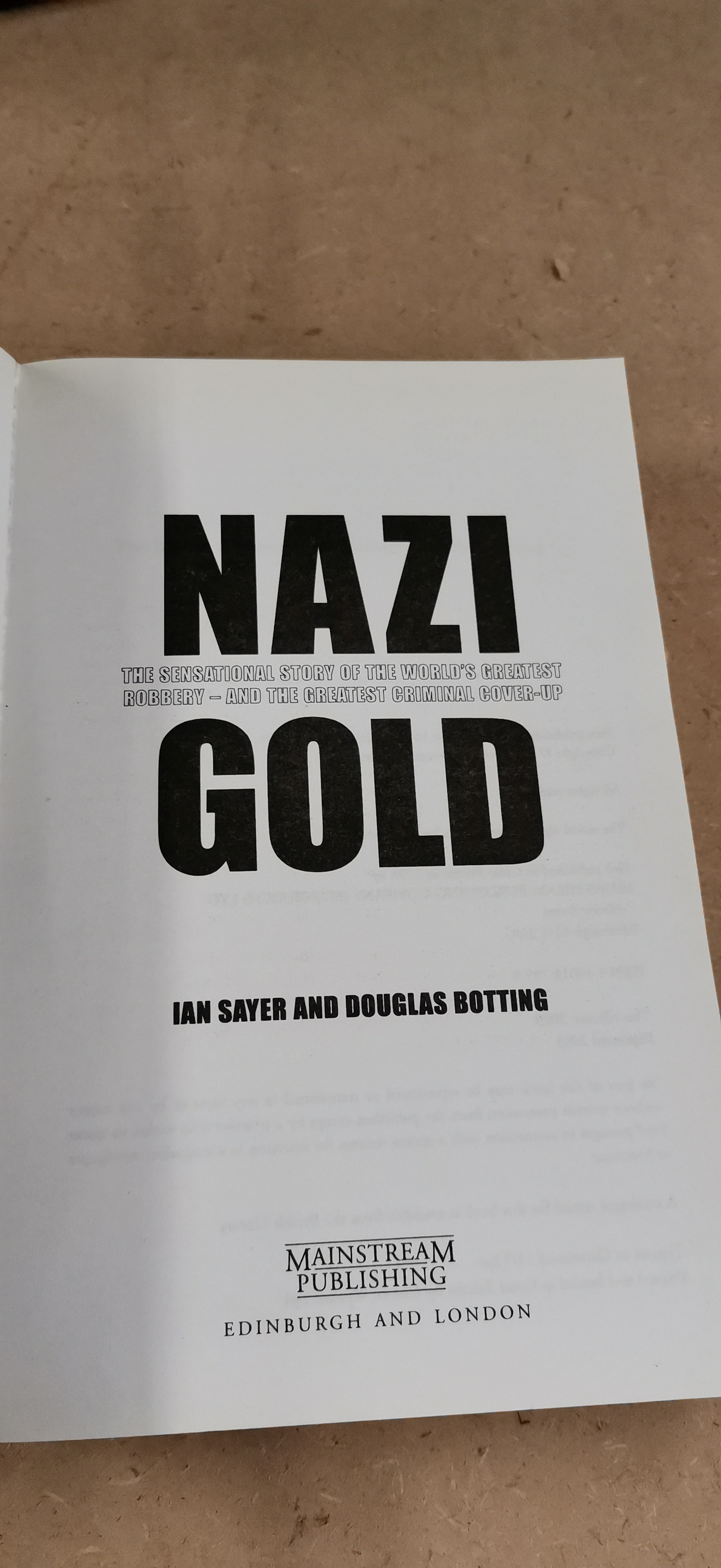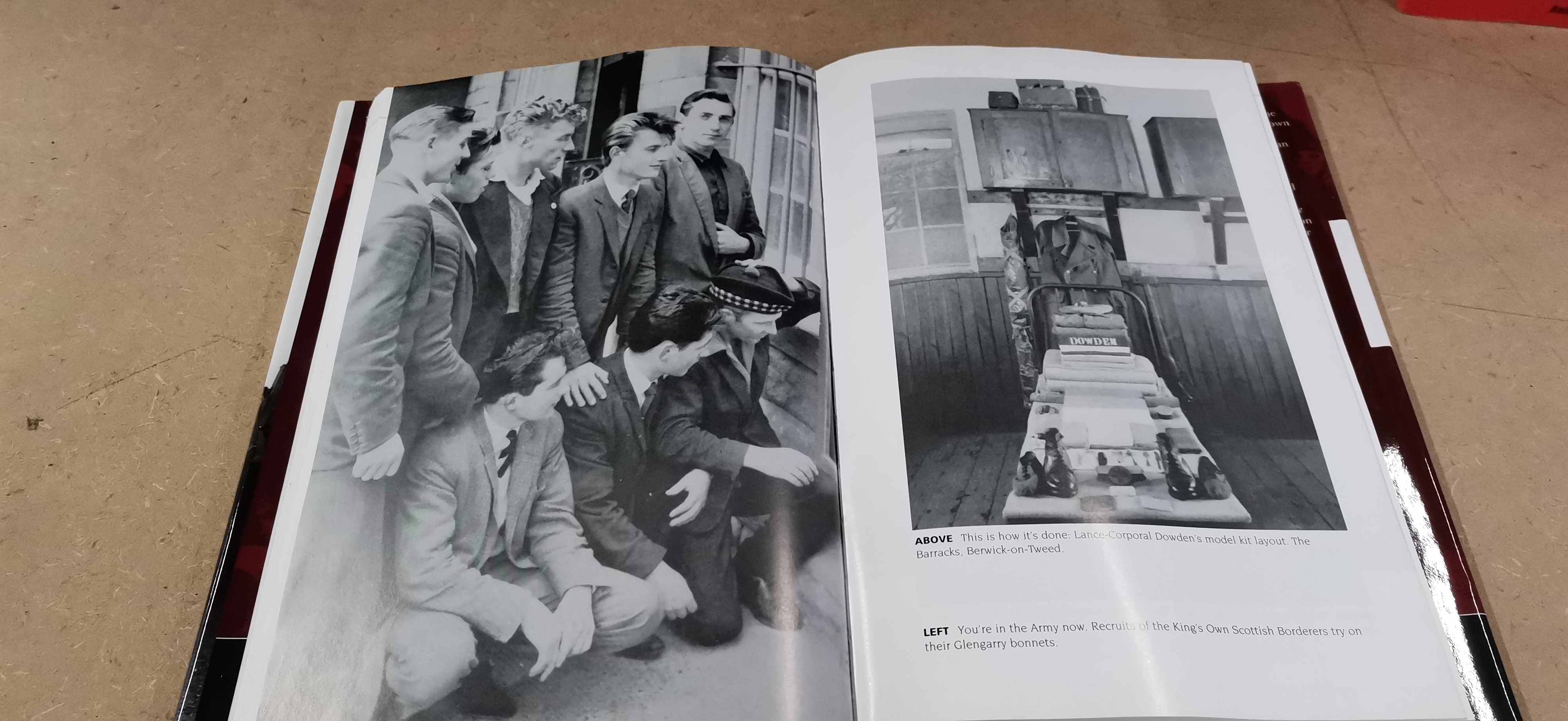 A collection of books presented in primary colours of red and white including National Service: The Best Years of Their Lives by Trevor Royle with a foreword by John Peel and Nazi Gold by Ian Sayer and Douglas Botting.
