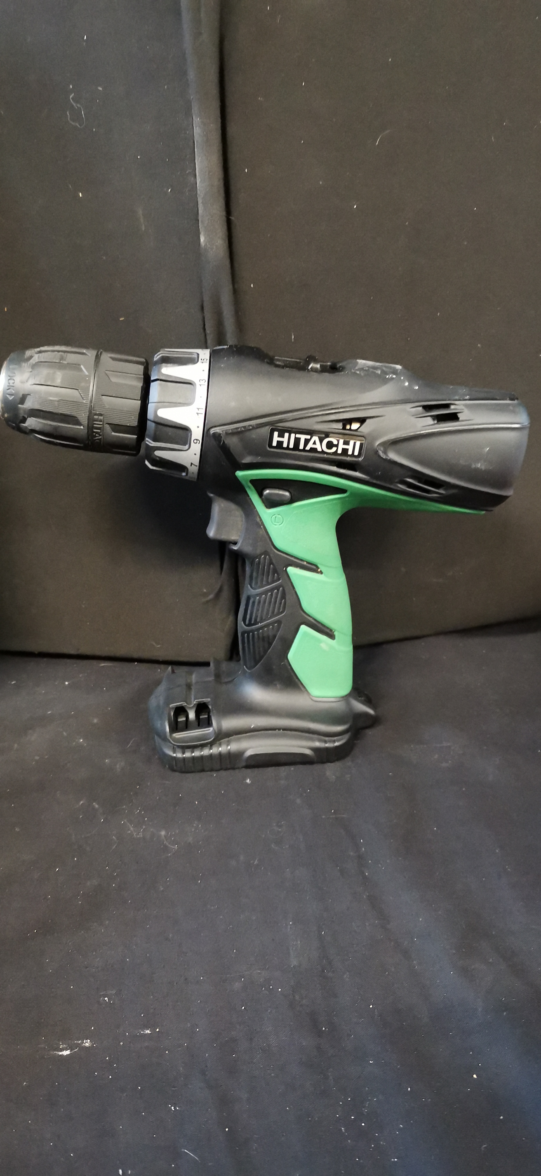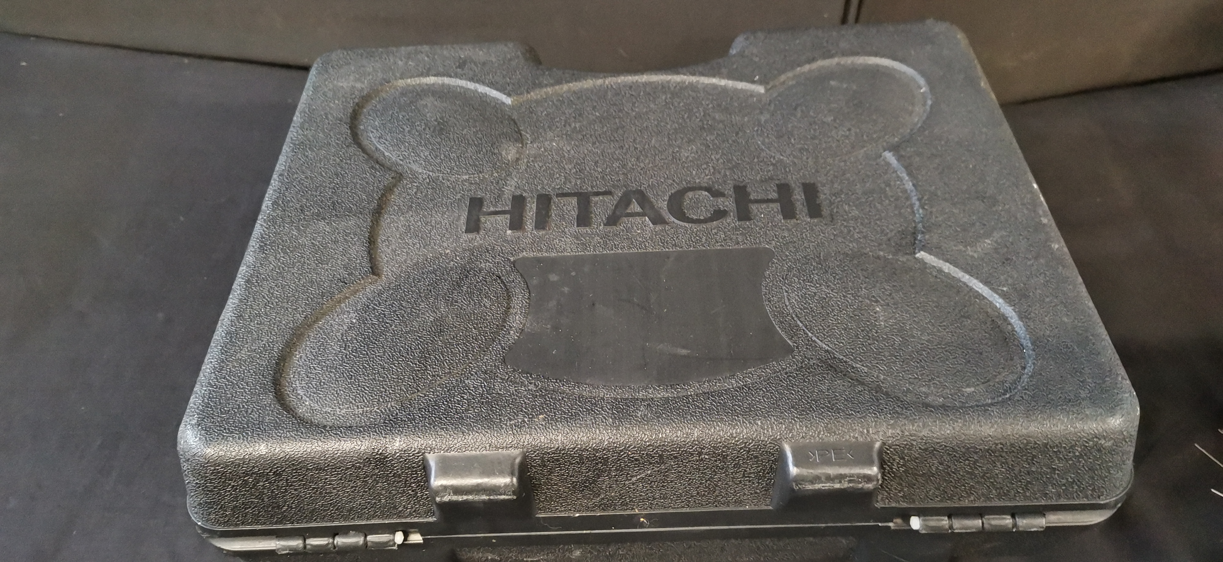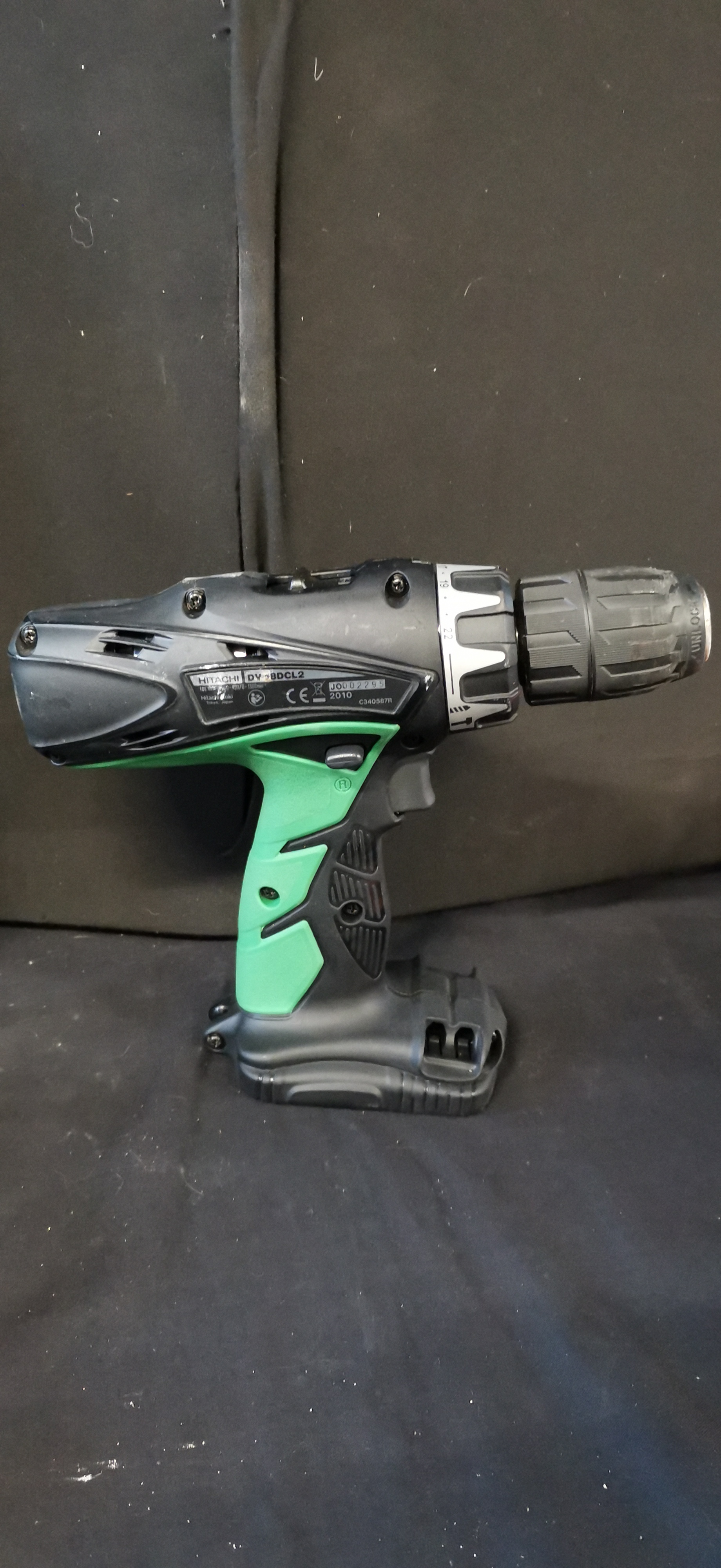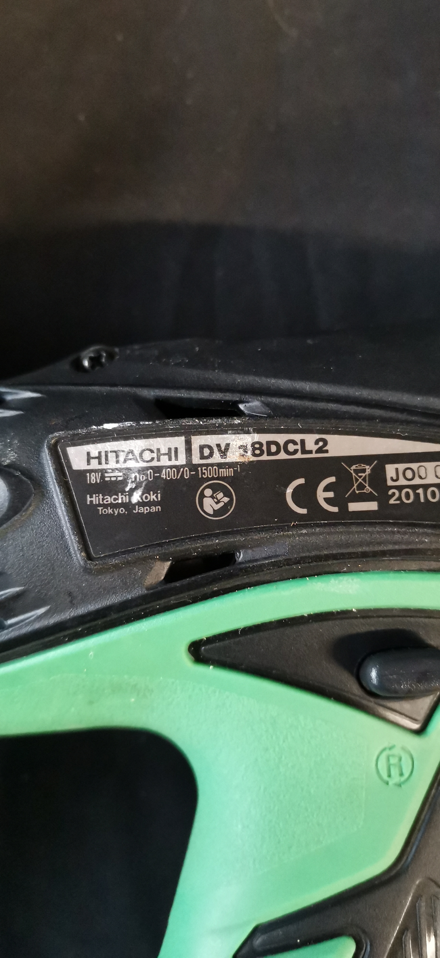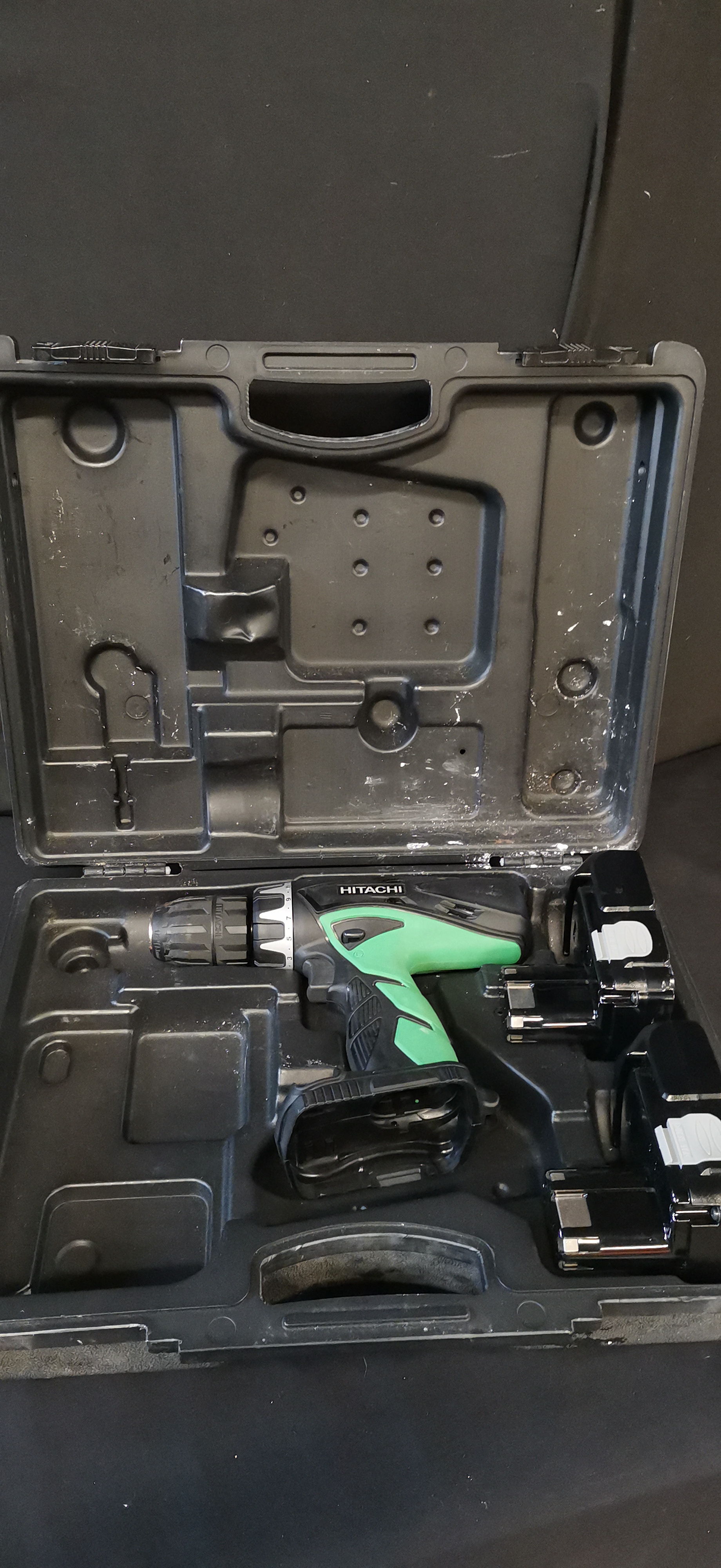 A Hitachi cordless drill model DV18DCL2 in green and black, accompanied by multiple BCL1815 18V 1.5Ah Li-ion batteries and a black hard carrying case.