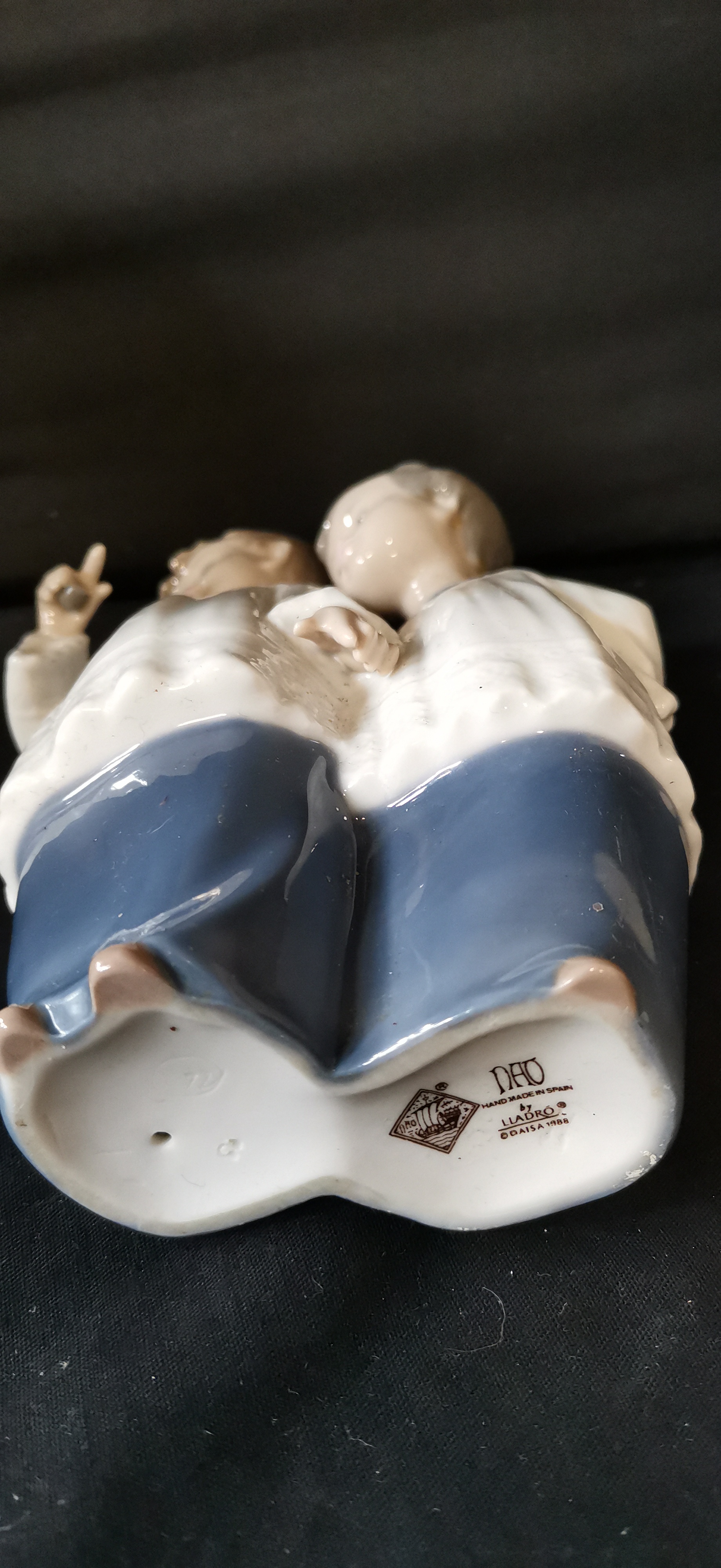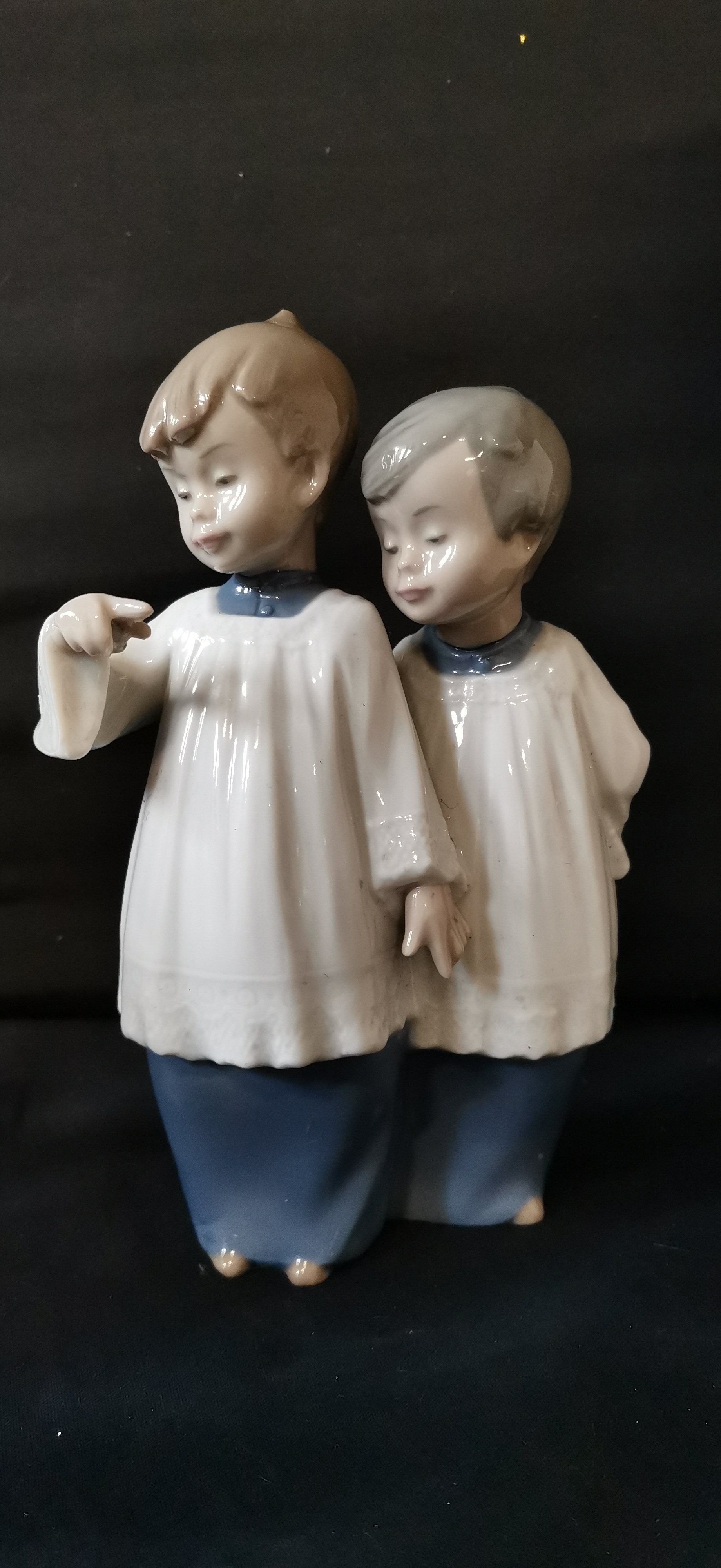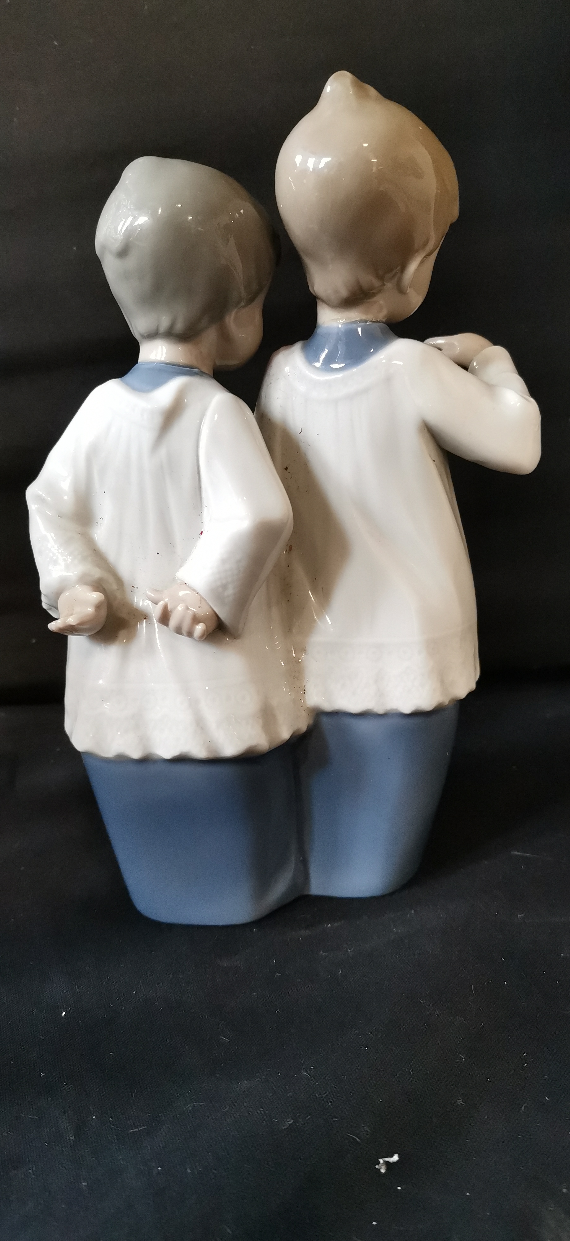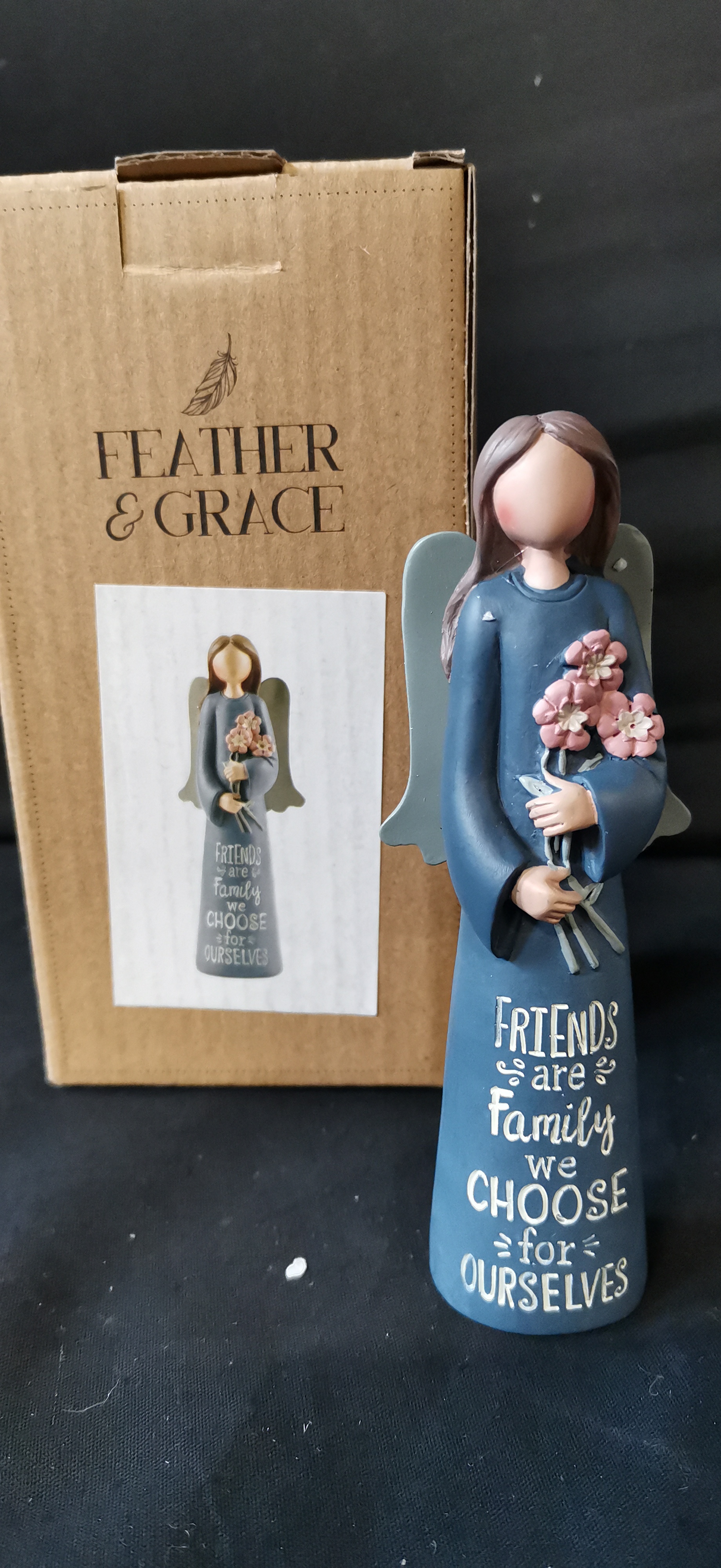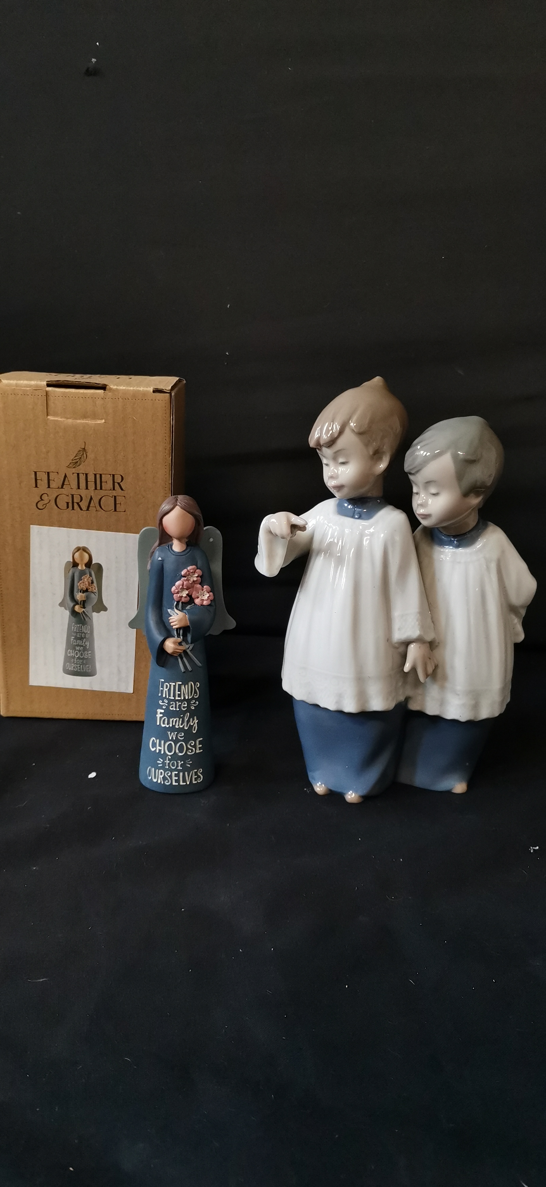A NAO by Lladro porcelain figurine of two children and a Feather & Grace angel figurine with original box.