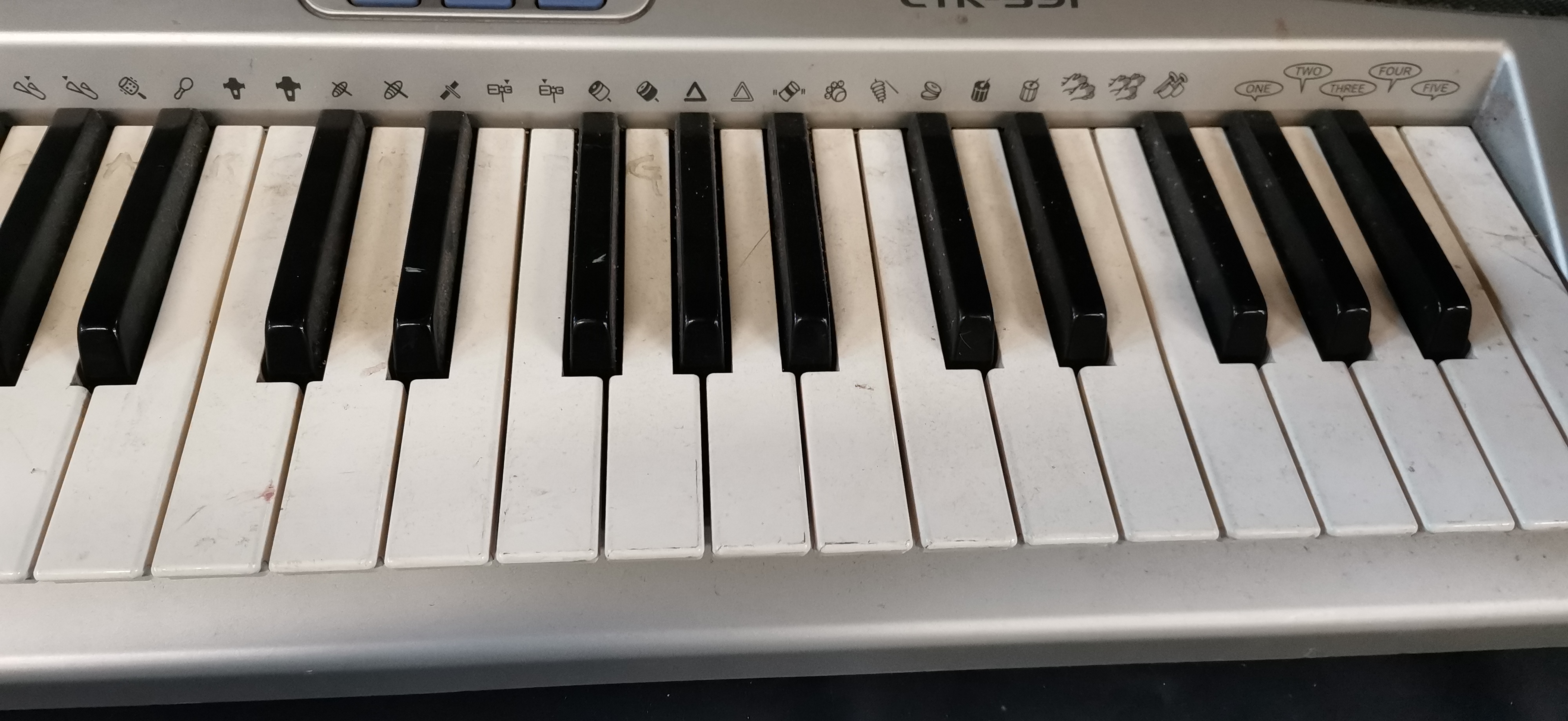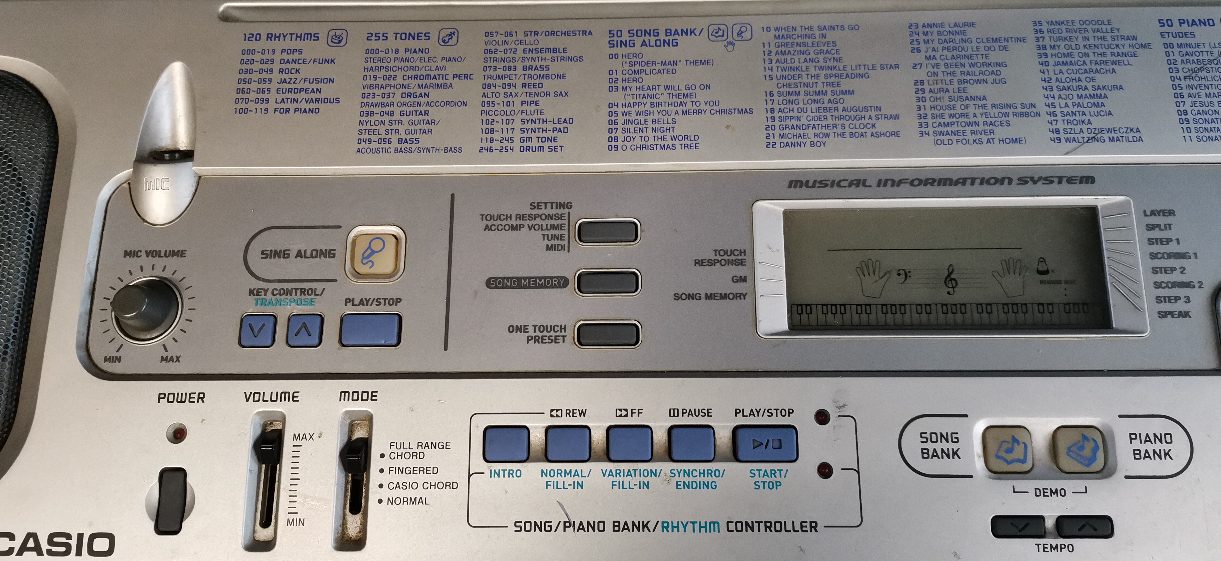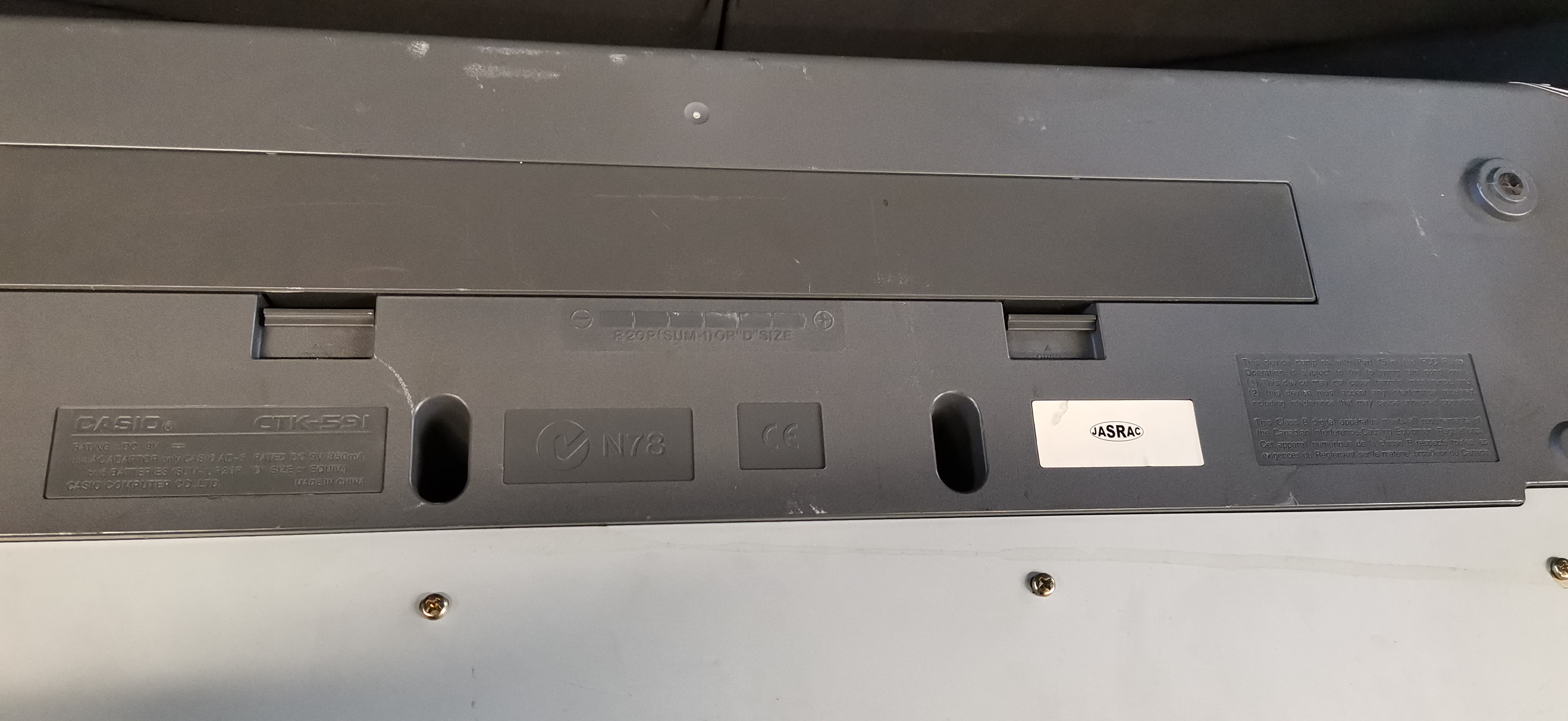 A silver Casio CTK-591 electronic keyboard featuring a musical information system display, touch response keys, and an advanced 3-step lesson system.