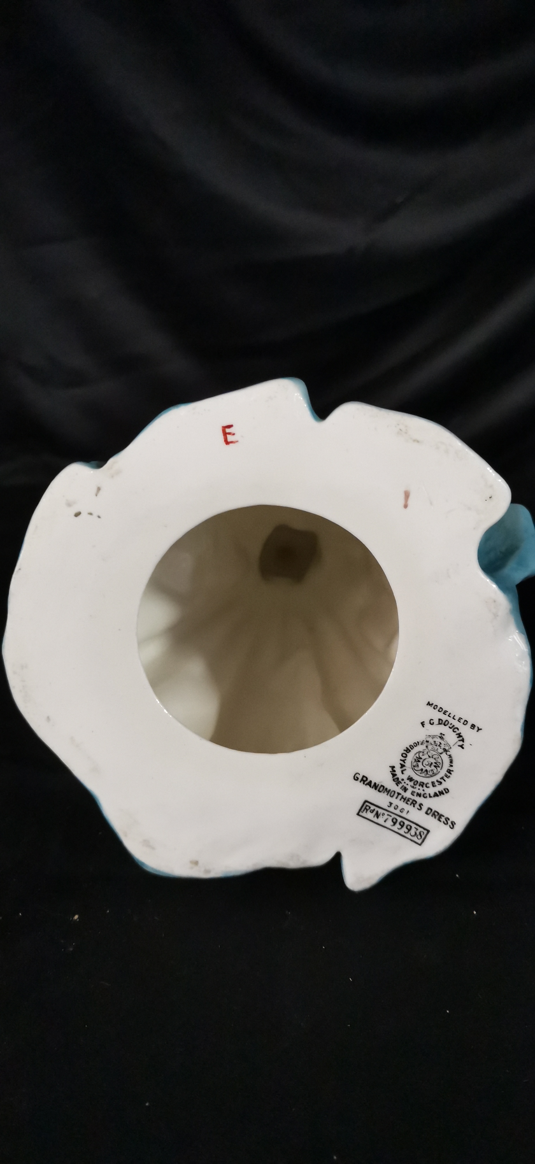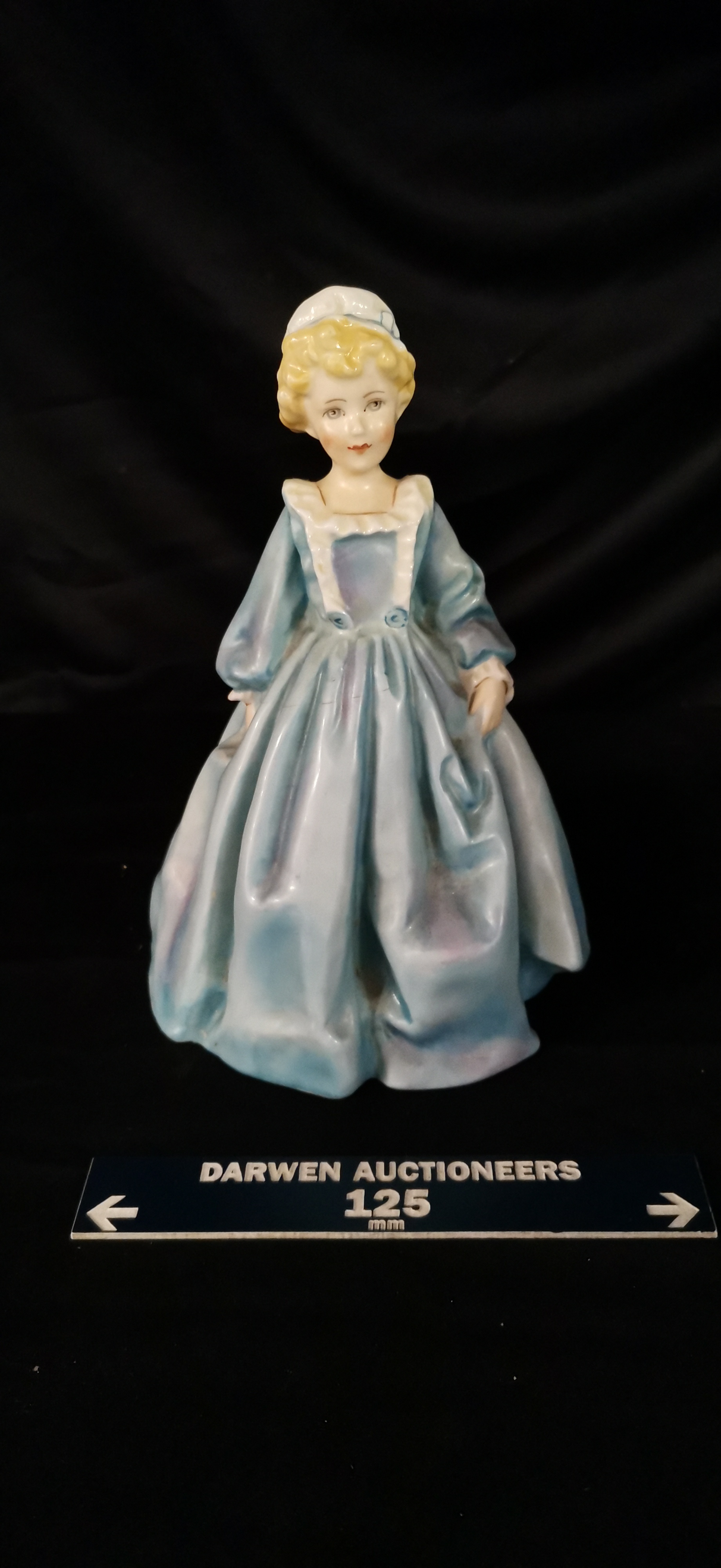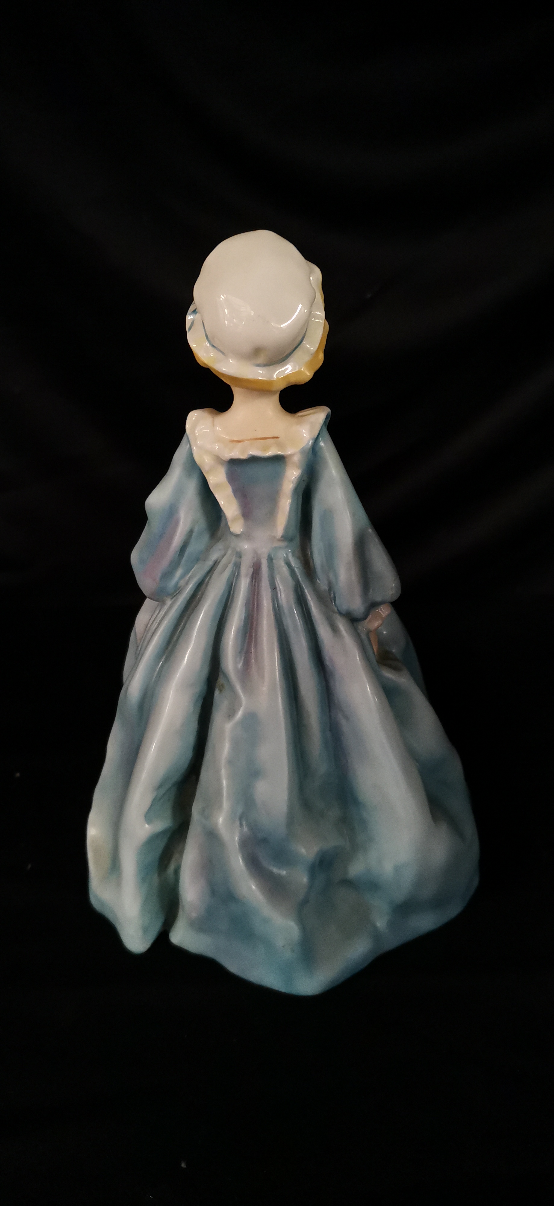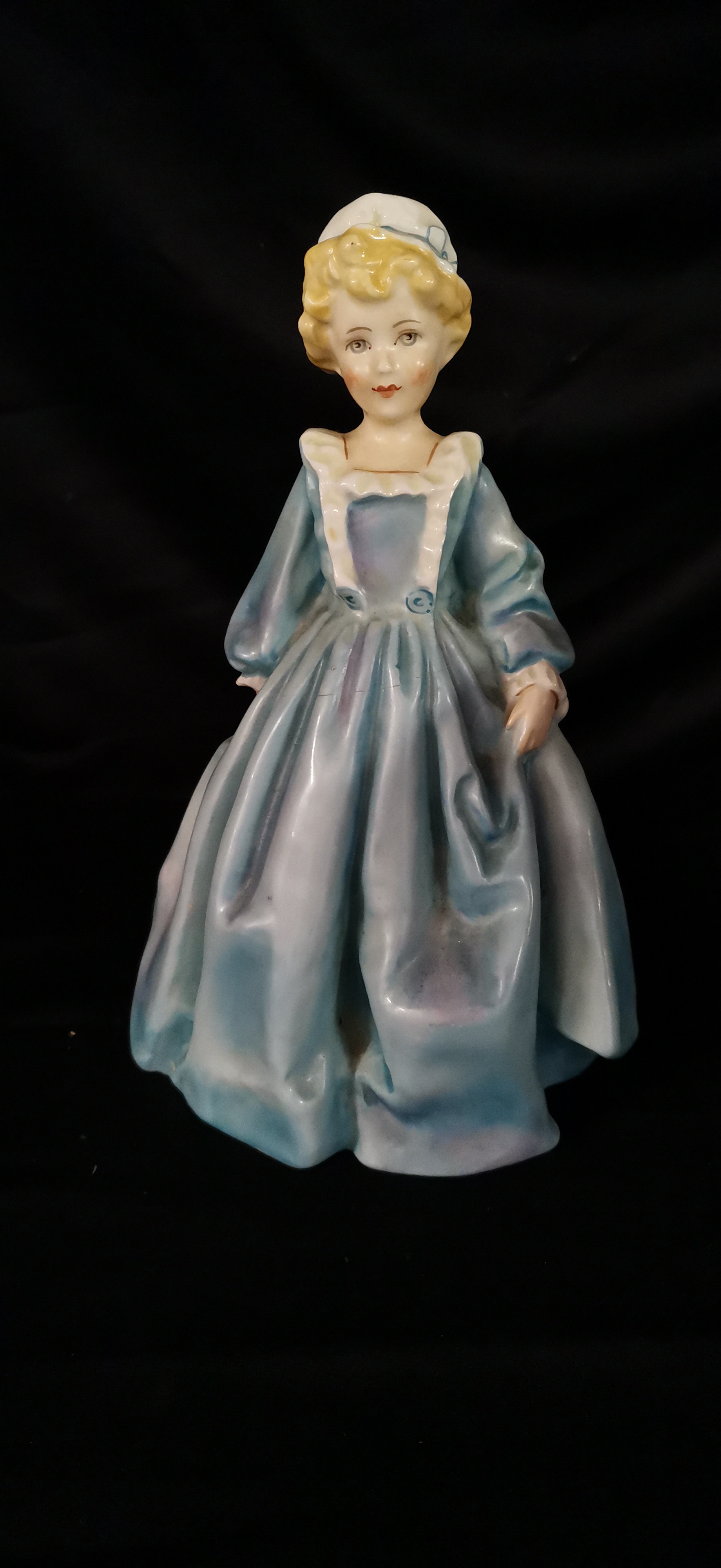 A Royal Worcester porcelain figurine titled Grandmothers Dress depicting a young girl in a light blue and lilac dress, modelled by F.G. Doughty and marked with model number 3081.