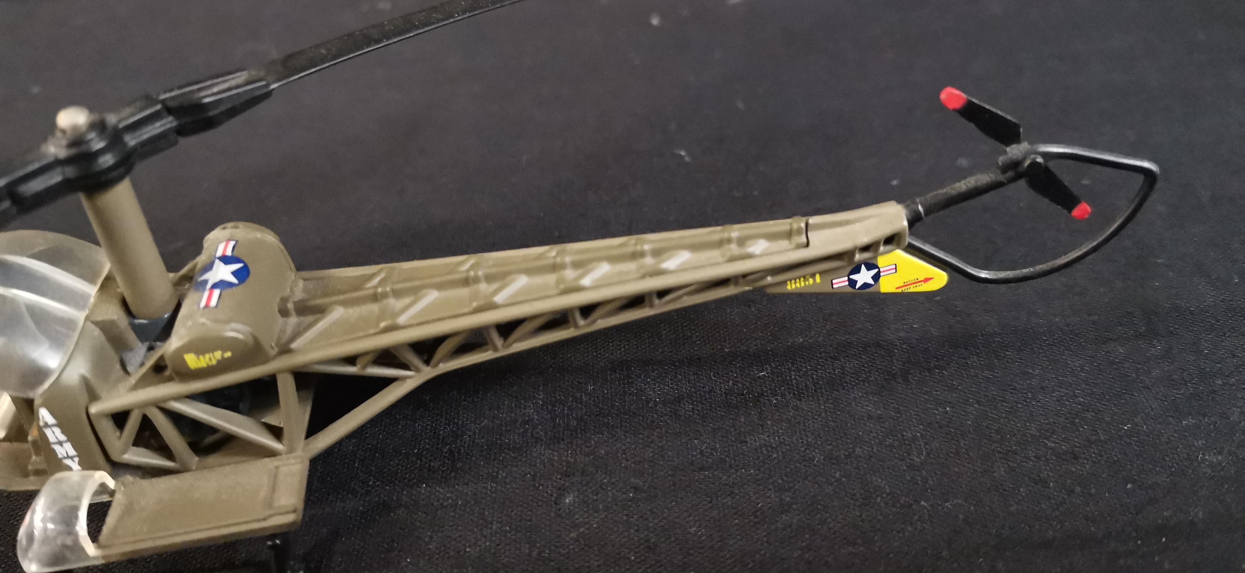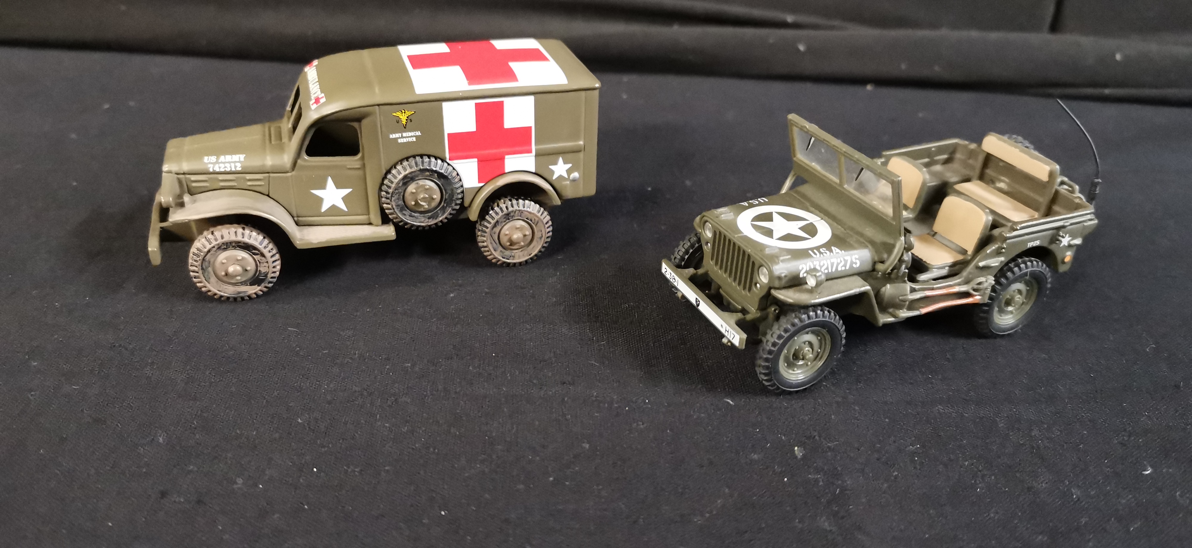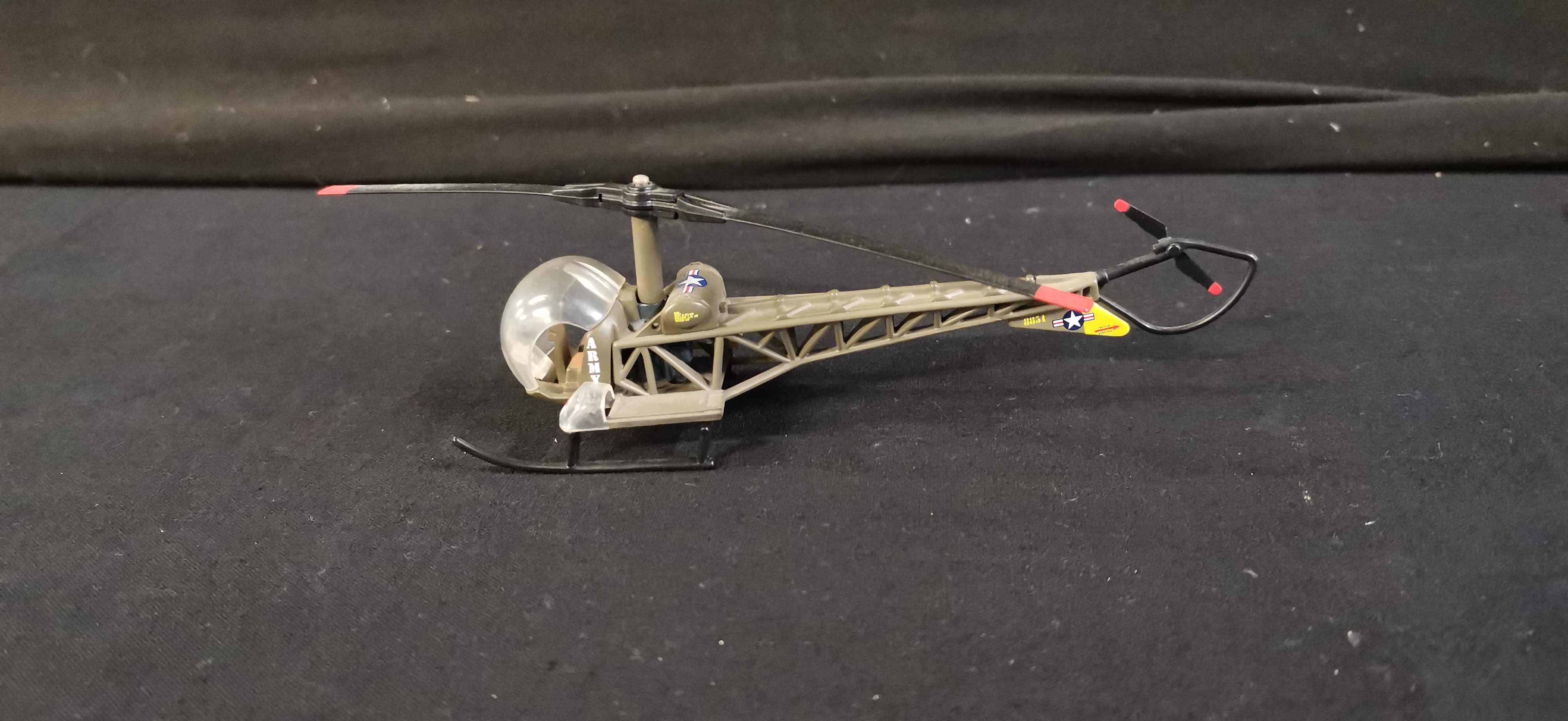 A Collection of Olive Drab Military Model Vehicles and Helicopter