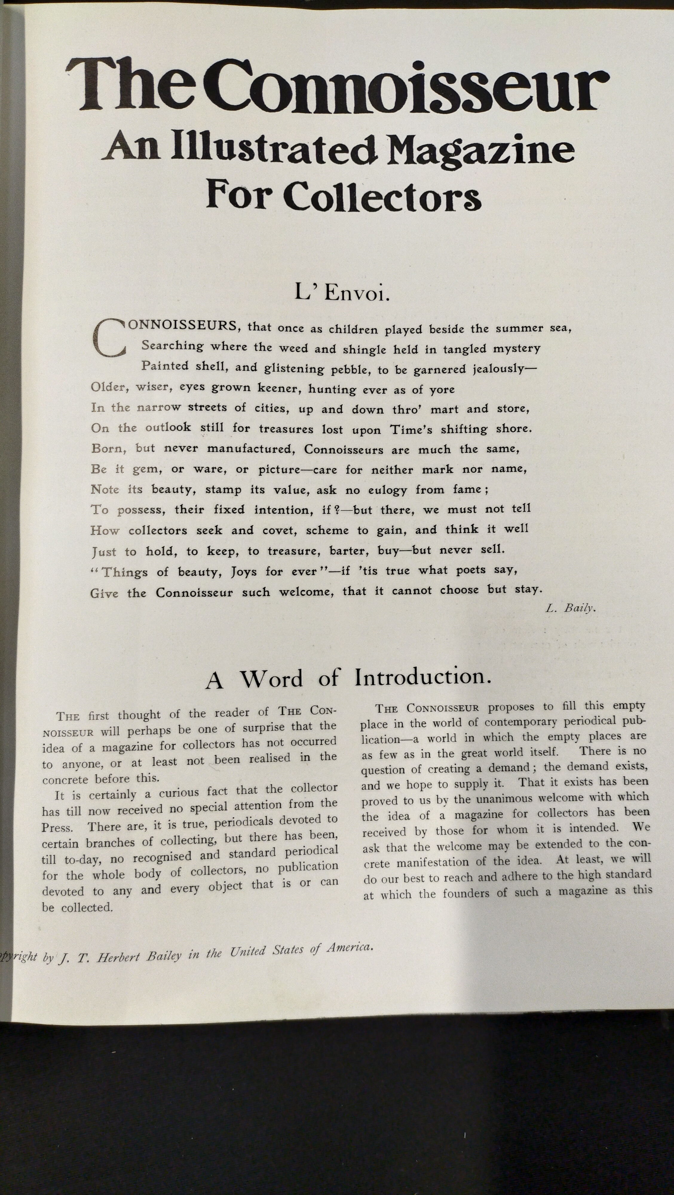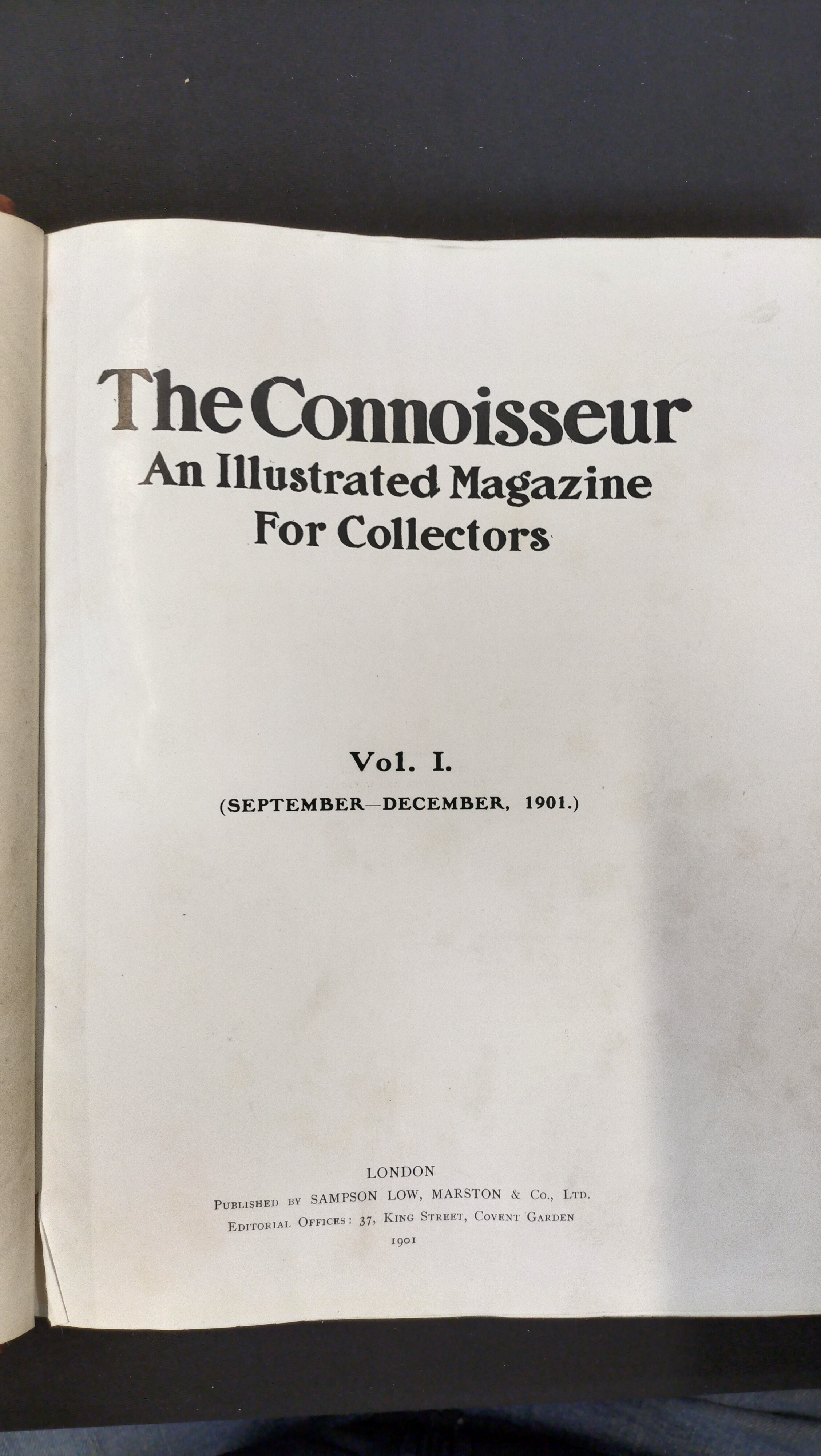 A brown leather-bound volume of The Connoisseur magazine containing issues from September to December 1901 published by Sampson Low Marston and Co.