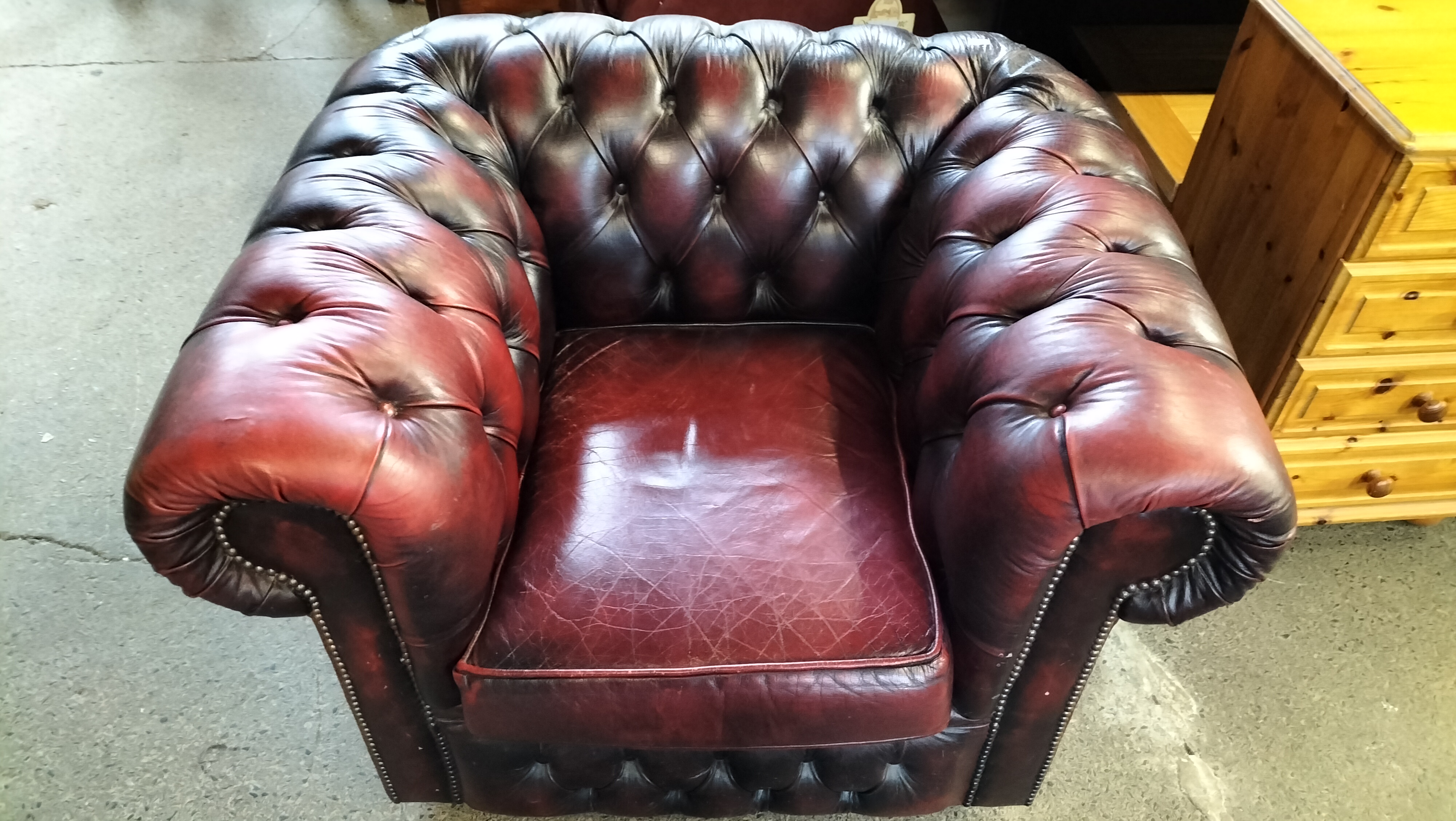 A Burgundy Leather Chesterfield Club Armchair