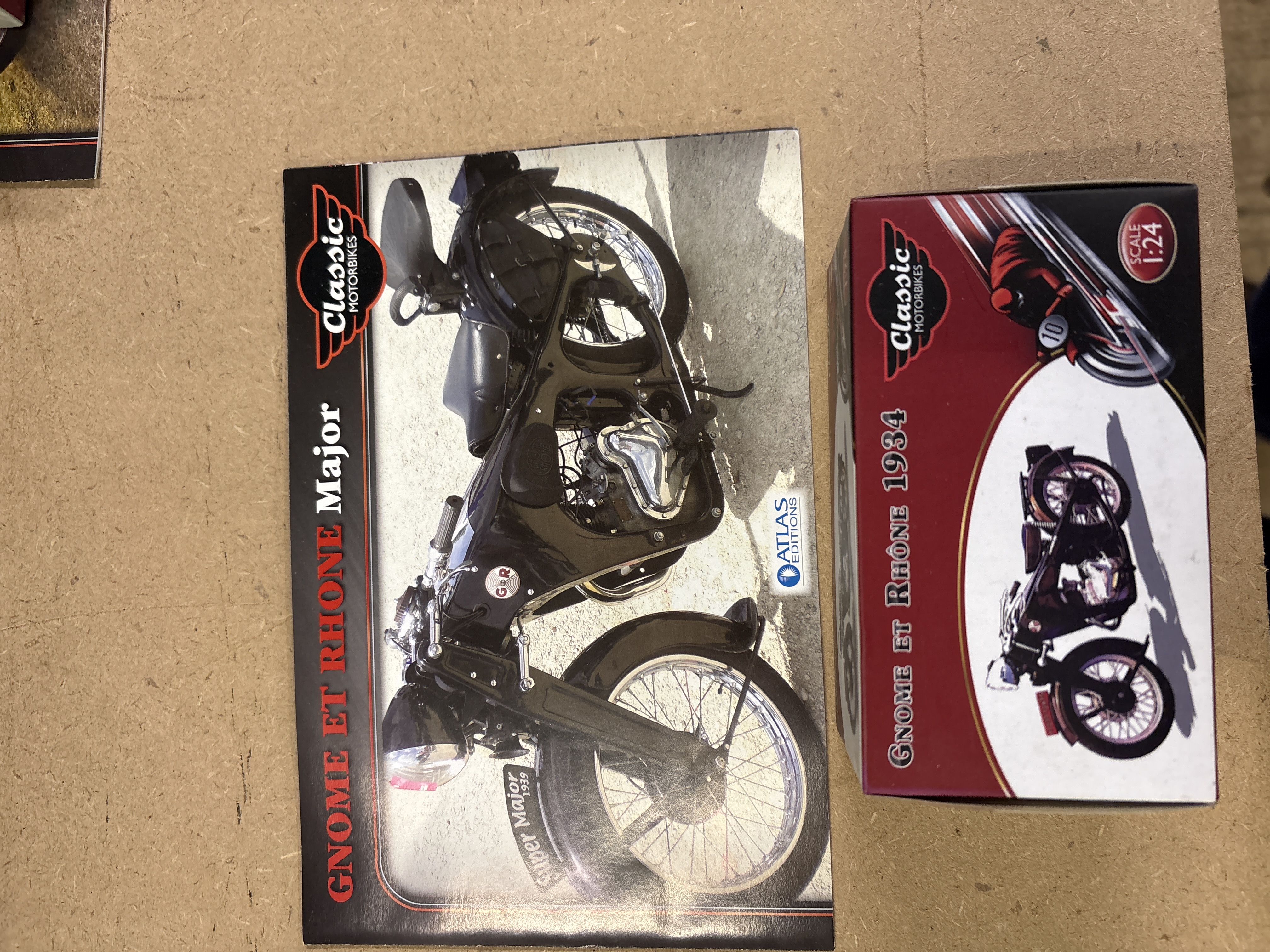 This is a 1:24 scale die-cast metal model of a 1934 Gnome et Rhône Major, produced by Atlas Editions as part of their Classic Motorbikes series. VIN: Not applicable (collectible model). Engine size: 350cc (represented). Mileage: Not applicable. There are no modifications; the item is in its original factory specification. The lot includes the original colour-coordinated manufacturer’s box and an informative collector’s brochure featuring technical specifications and history of the Gnome et Rhône Major.