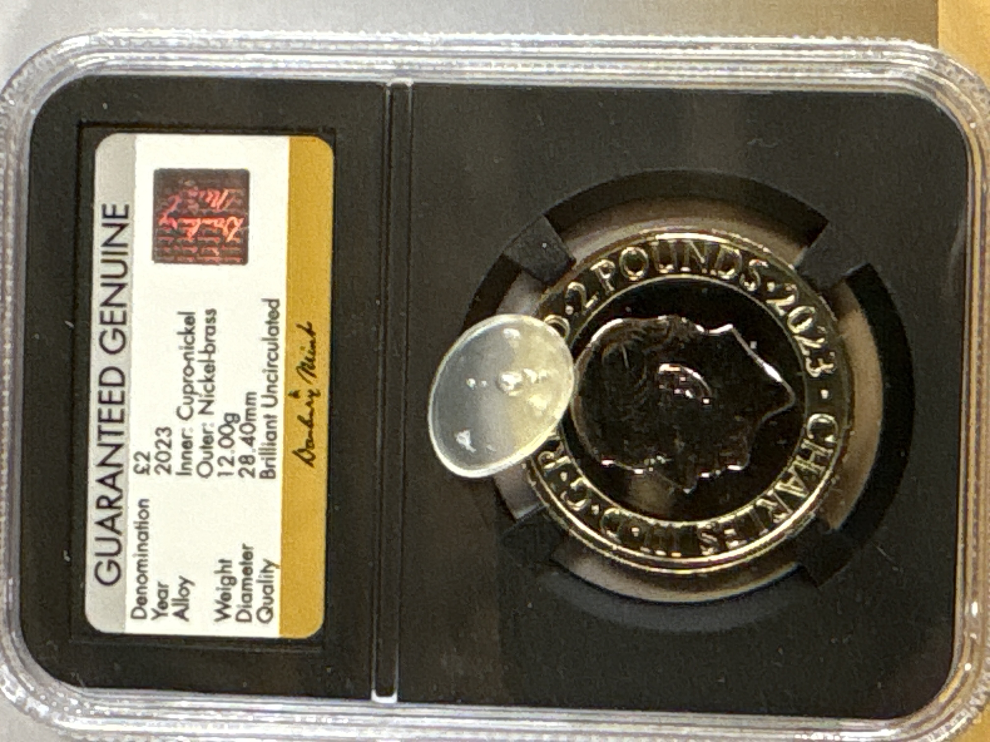 Metal: Cupro-nickel inner disc and nickel-brass outer ring