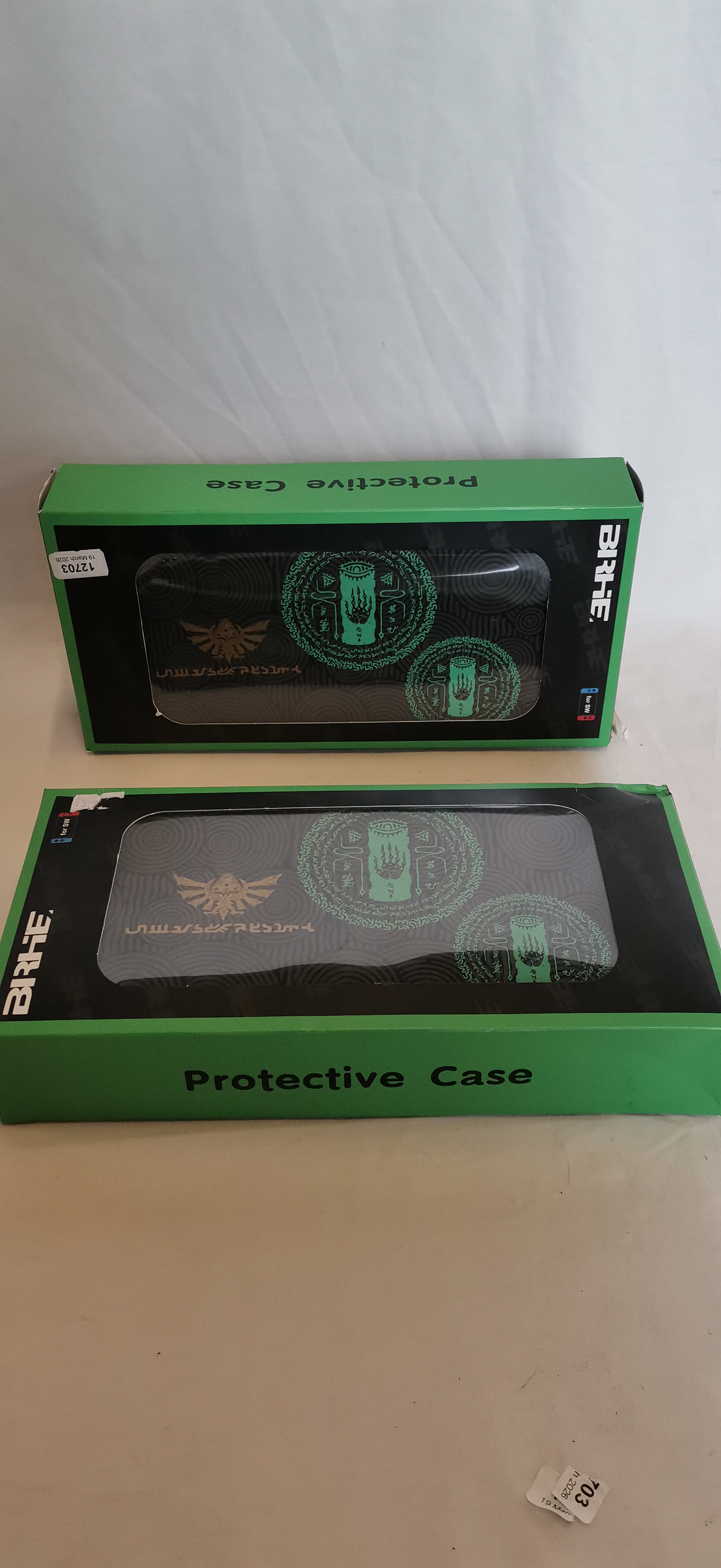 The items are in new-in-box condition. The retail packaging displays minor signs of shelf wear, including light creasing to the corners and a small tear to the lid of one box. The cases themselves appear unused and are protected within the original boxes.