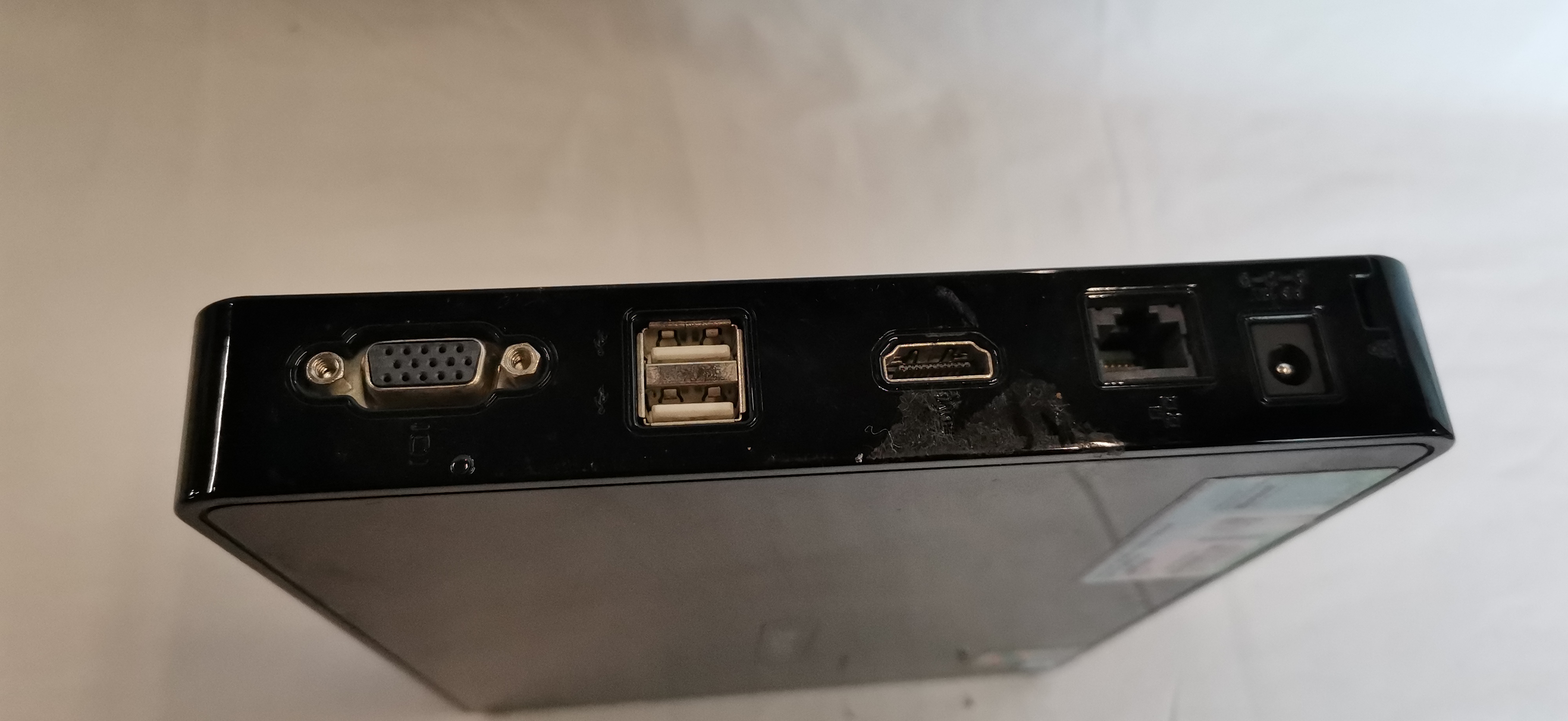 A Linx mini personal computer, model A78JW, and a Linx WK001 wireless keyboard. The mini PC is powered by an Intel Atom processor and features a Microsoft Windows XP Home Edition Certificate of Authenticity sticker with a visible product key. The front of the device is equipped with an SD/MMC/MS card reader, two USB ports, and headphone and microphone jacks. The rear interface includes a VGA port, two USB ports, an HDMI port, an Ethernet RJ45 port, and a DC power input. The serial number for the PC is H3012100100834. The accompanying Linx WK001 keyboard is a 2.4G RF wireless model featuring an integrated touchpad, dedicated media keys, and a brushed metal faceplate. The keyboard serial number is 100121S… (partially obscured). This lot does not include a power adapter, VGA/HDMI cables, or the USB wireless dongle required for the keyboard. The data wiping status is unknown as the units are untested.