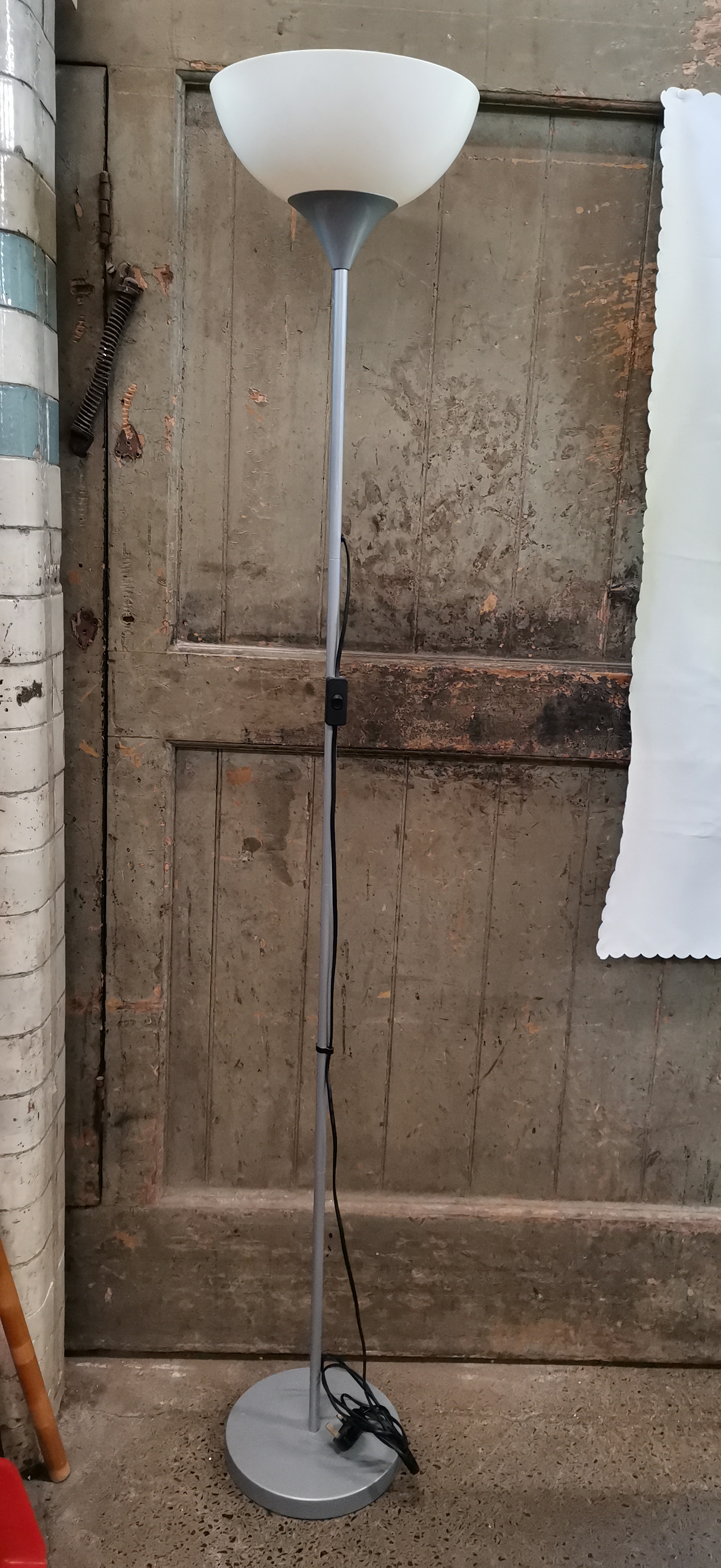 A contemporary silver-toned metal uplighter floor lamp. COLLECTION ONLY