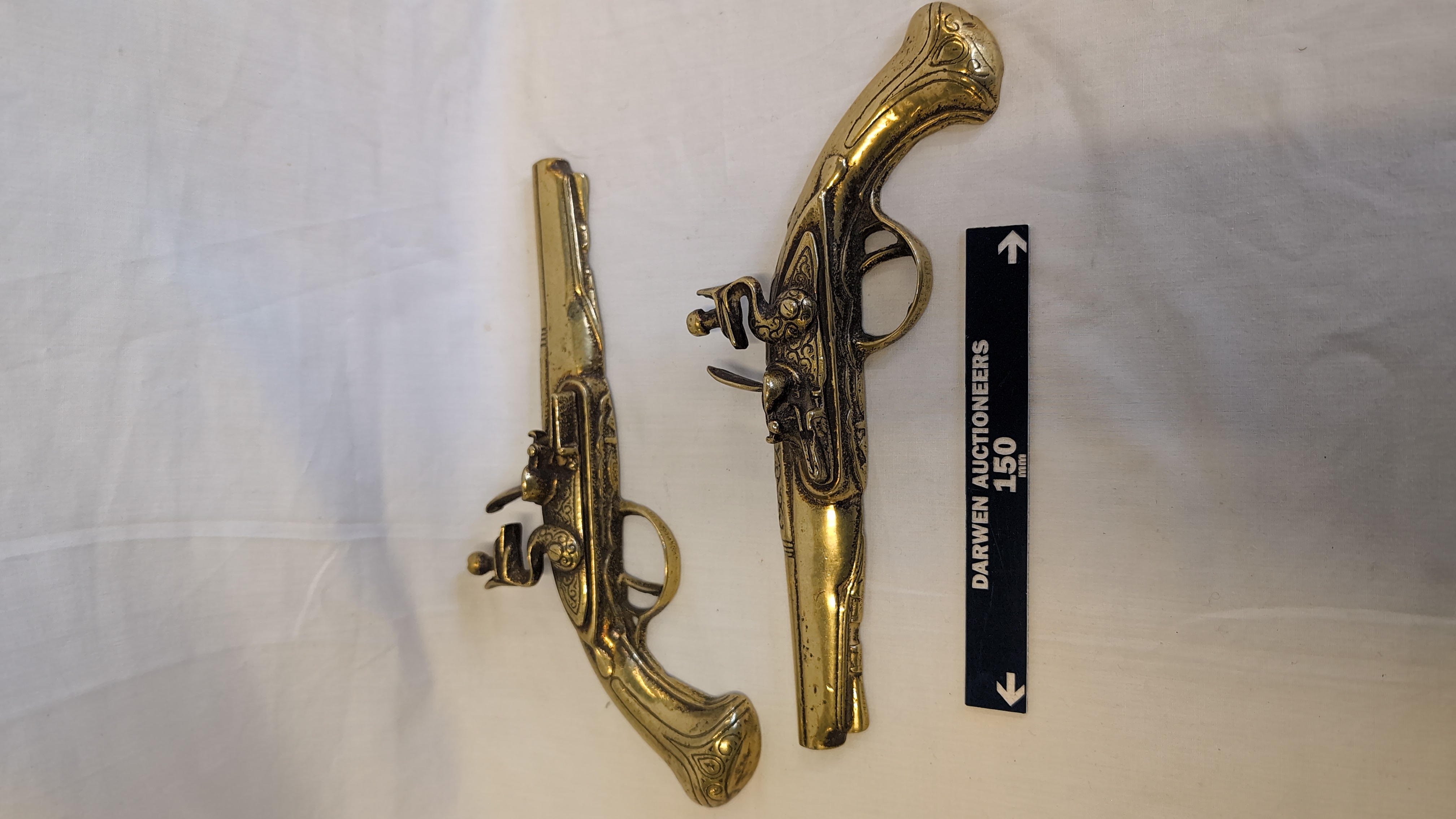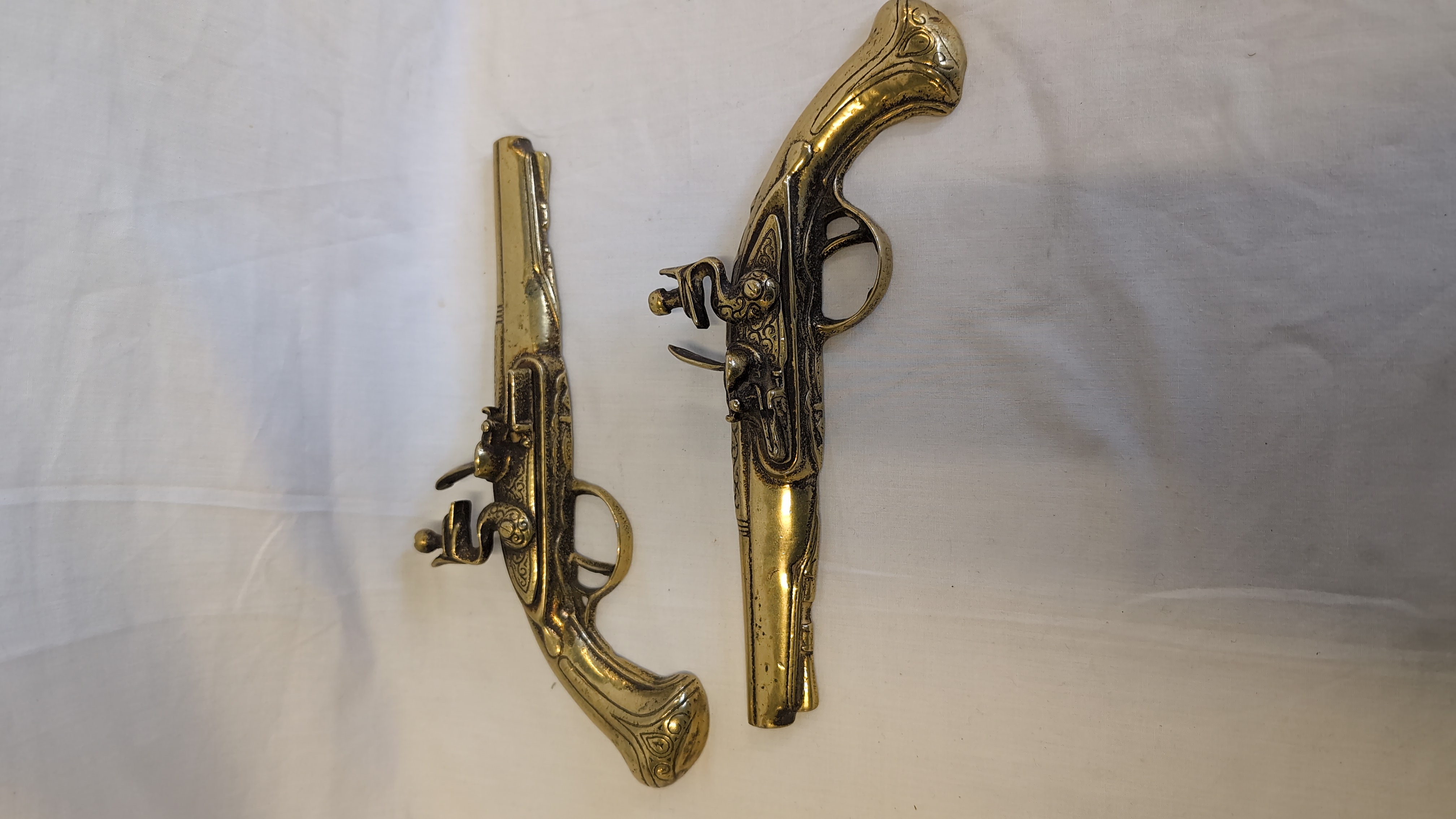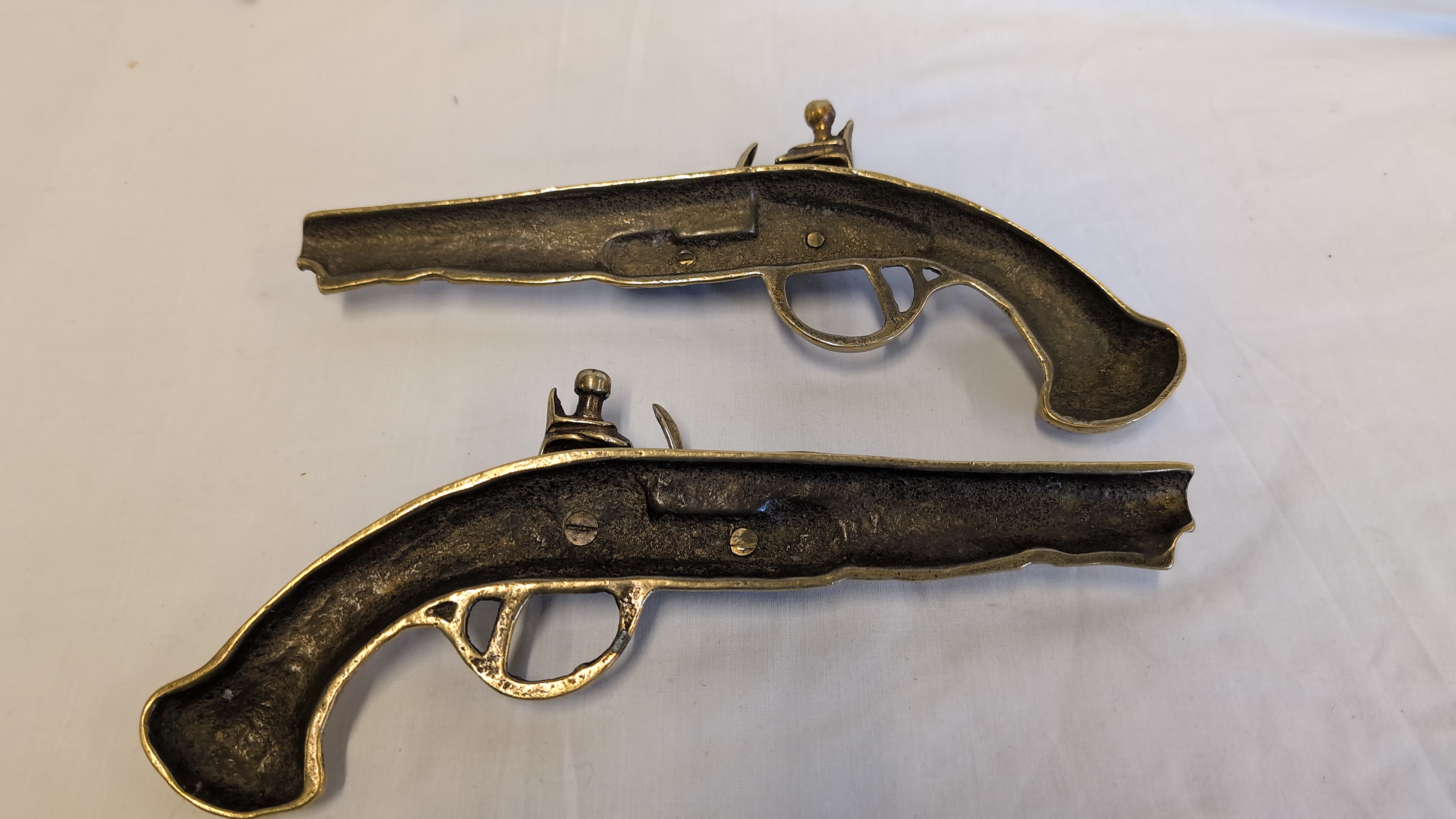 A Pair of Peerage Cast Brass Flintlock Pistol Wall Plaques